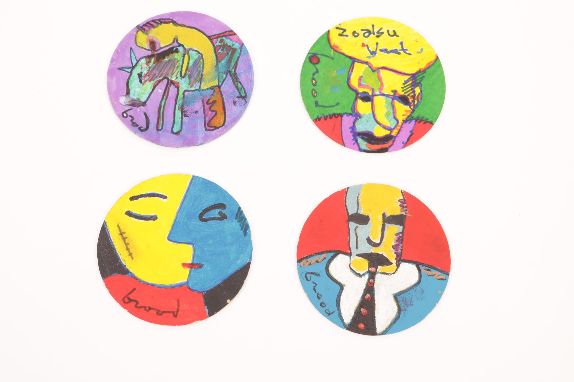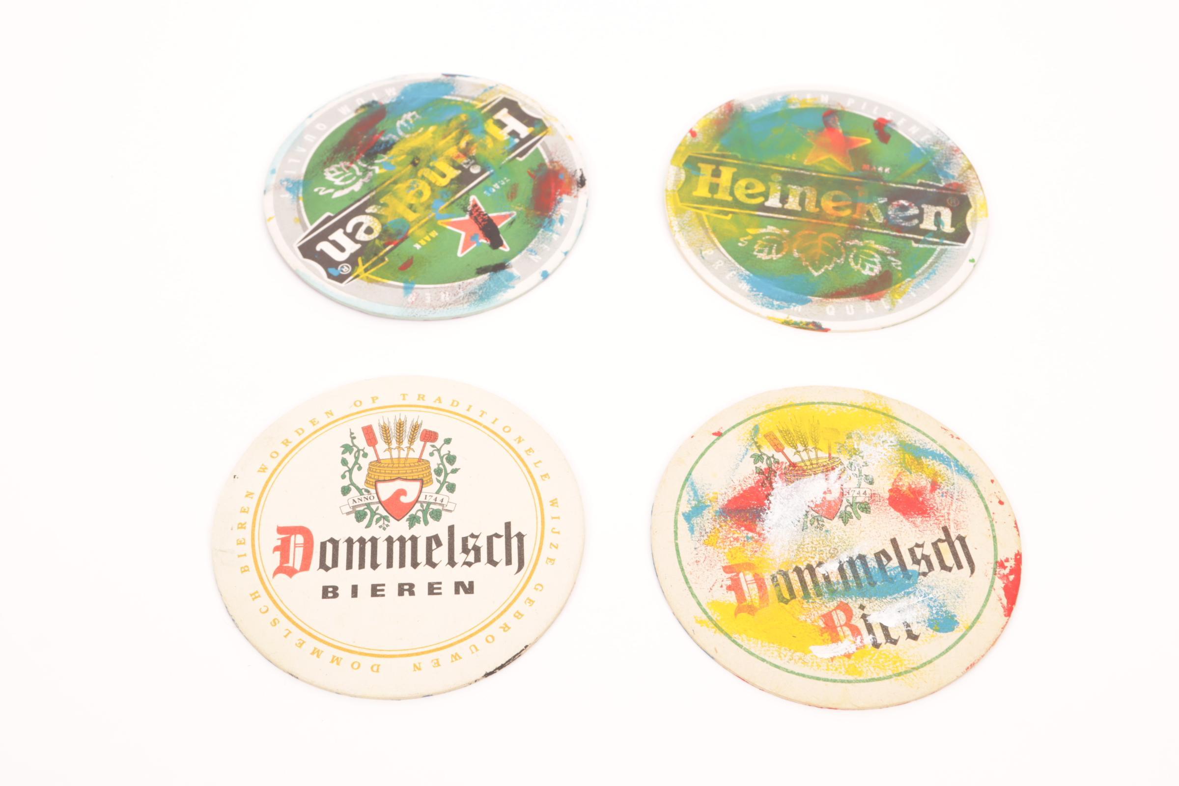 Herman Brood (1945-2001), vier met de hand gekleurde bierviltjes