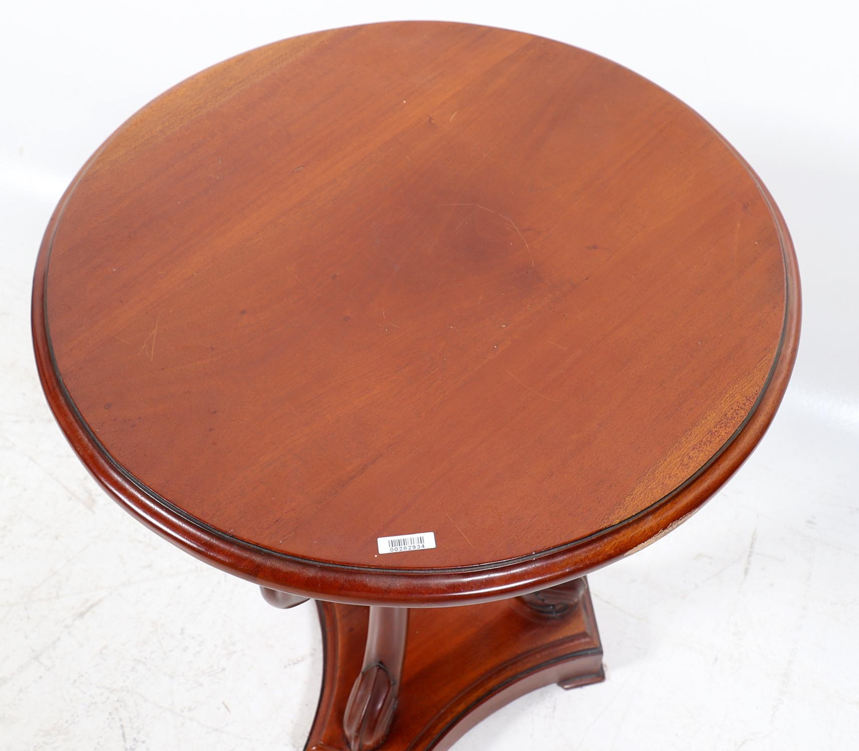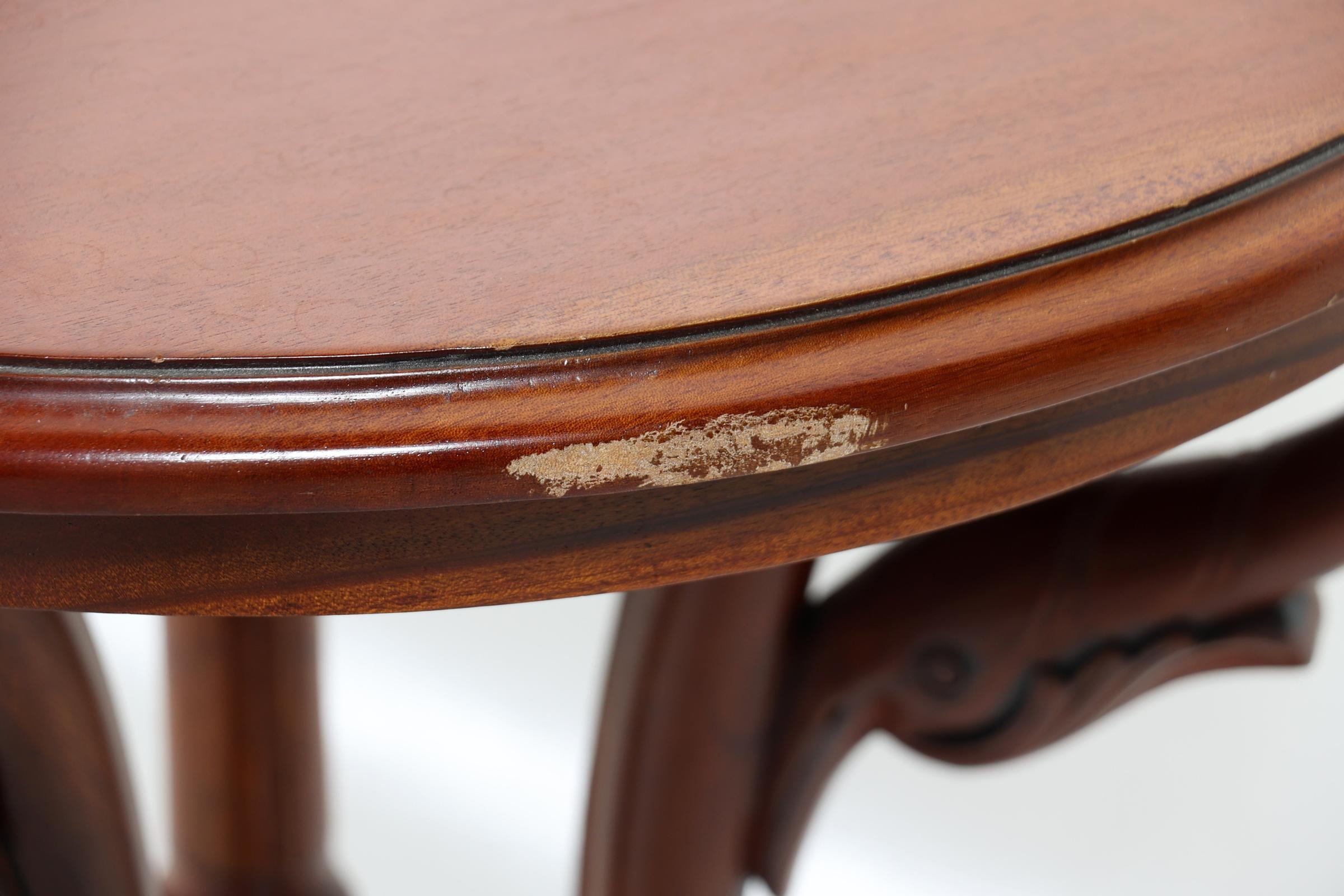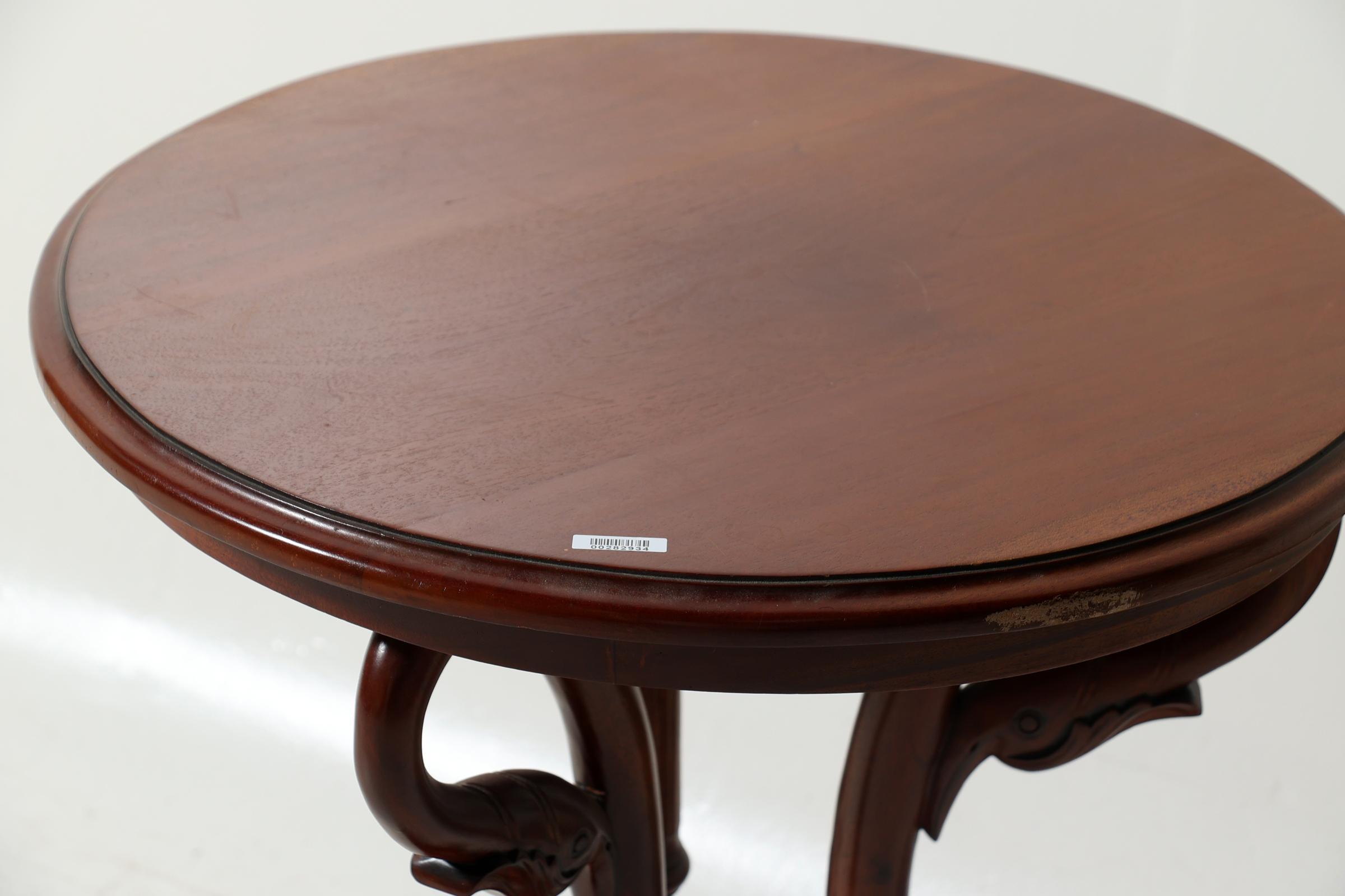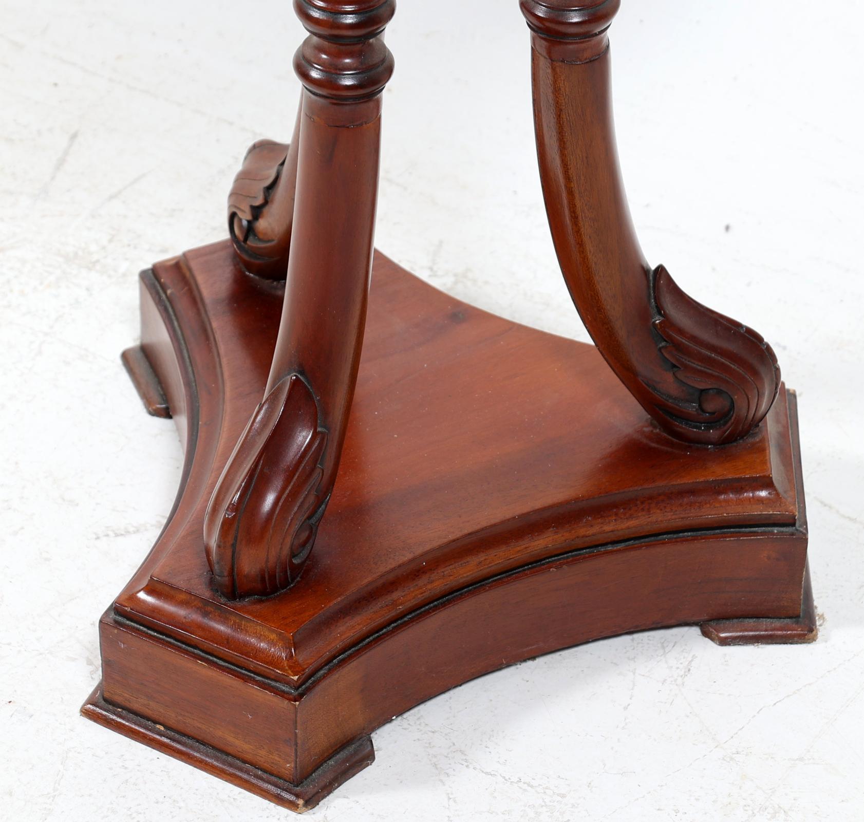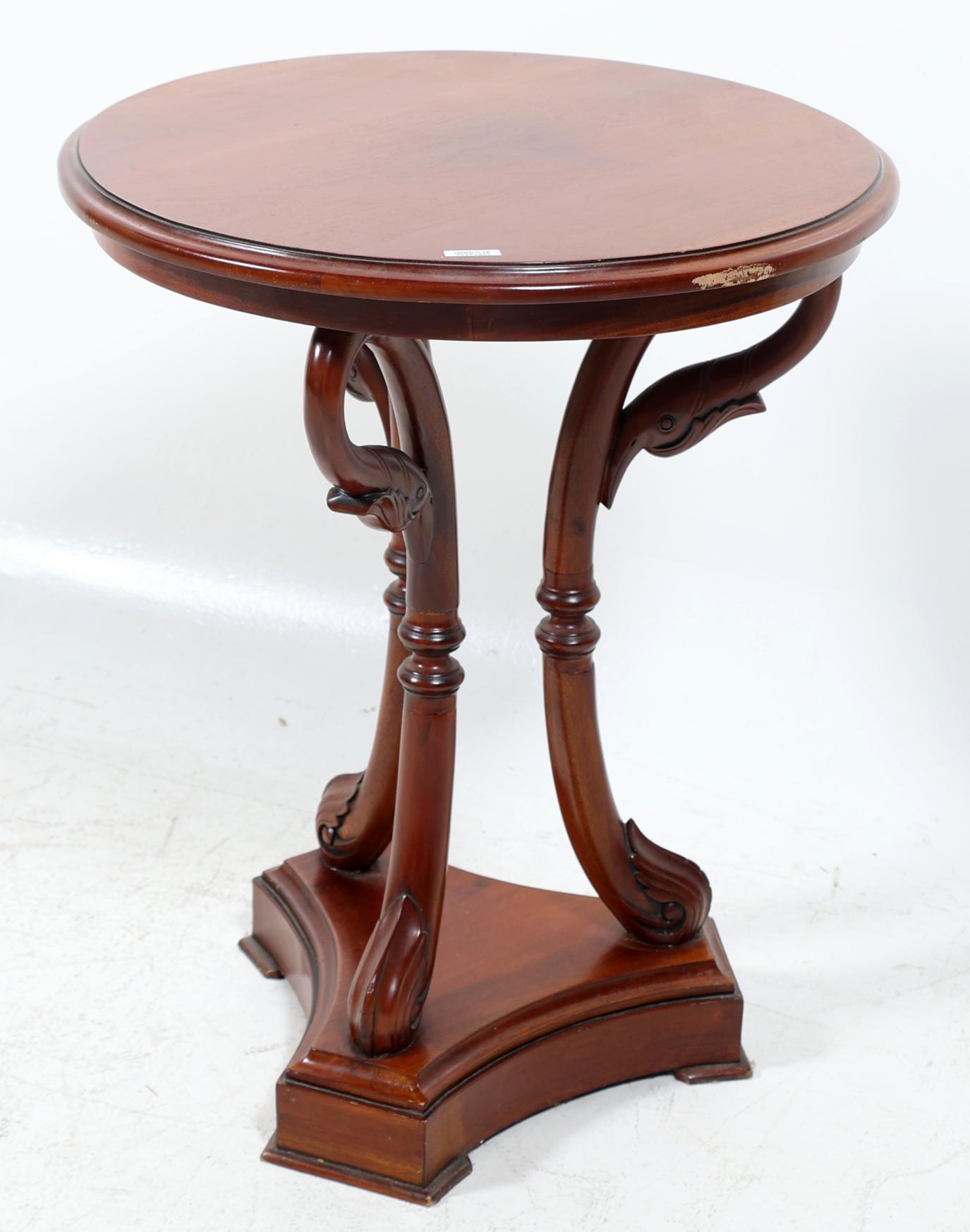 Notenhouten bijzettafel met poten i.v.v. Zwanen, h.69 x diam.55 cm.