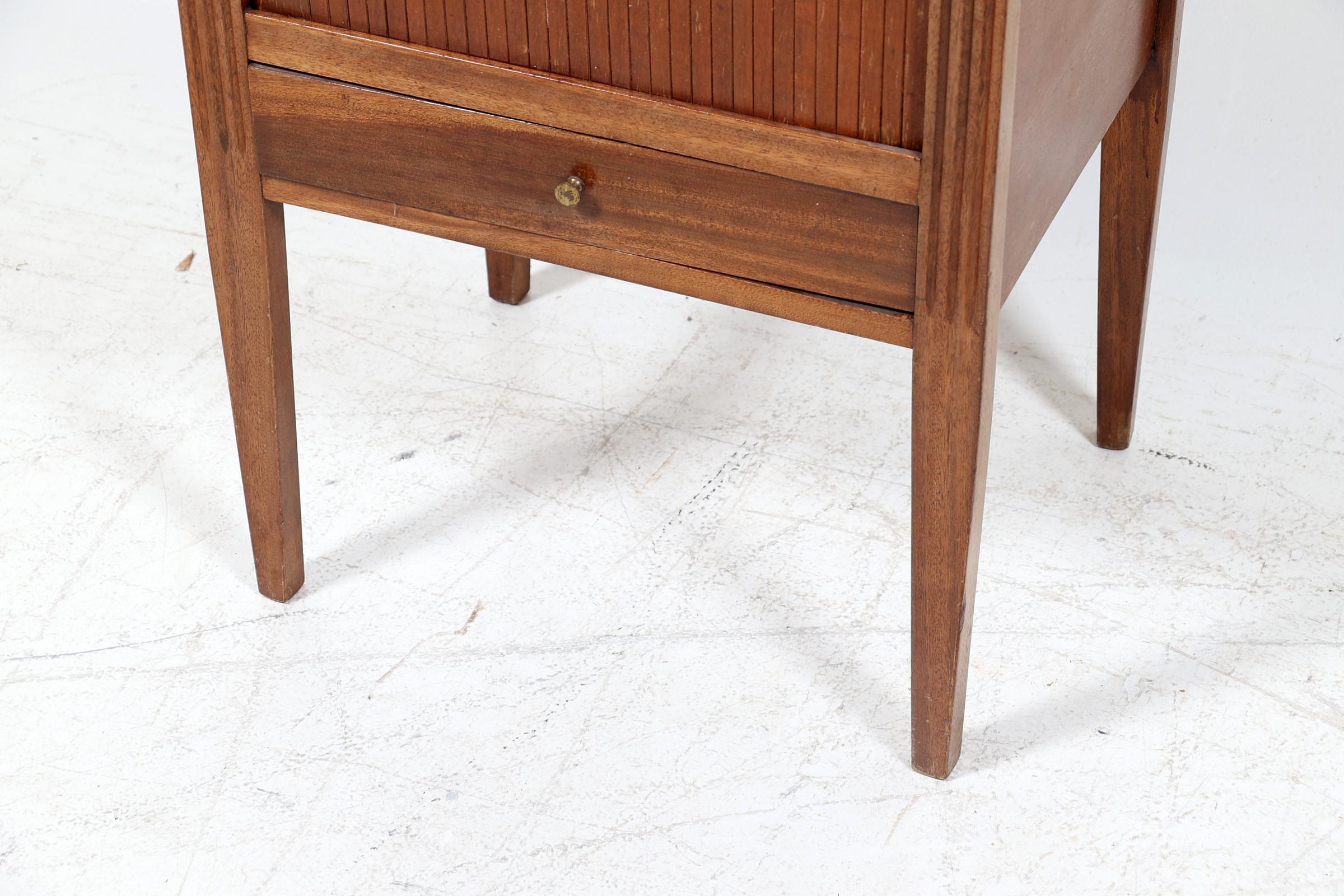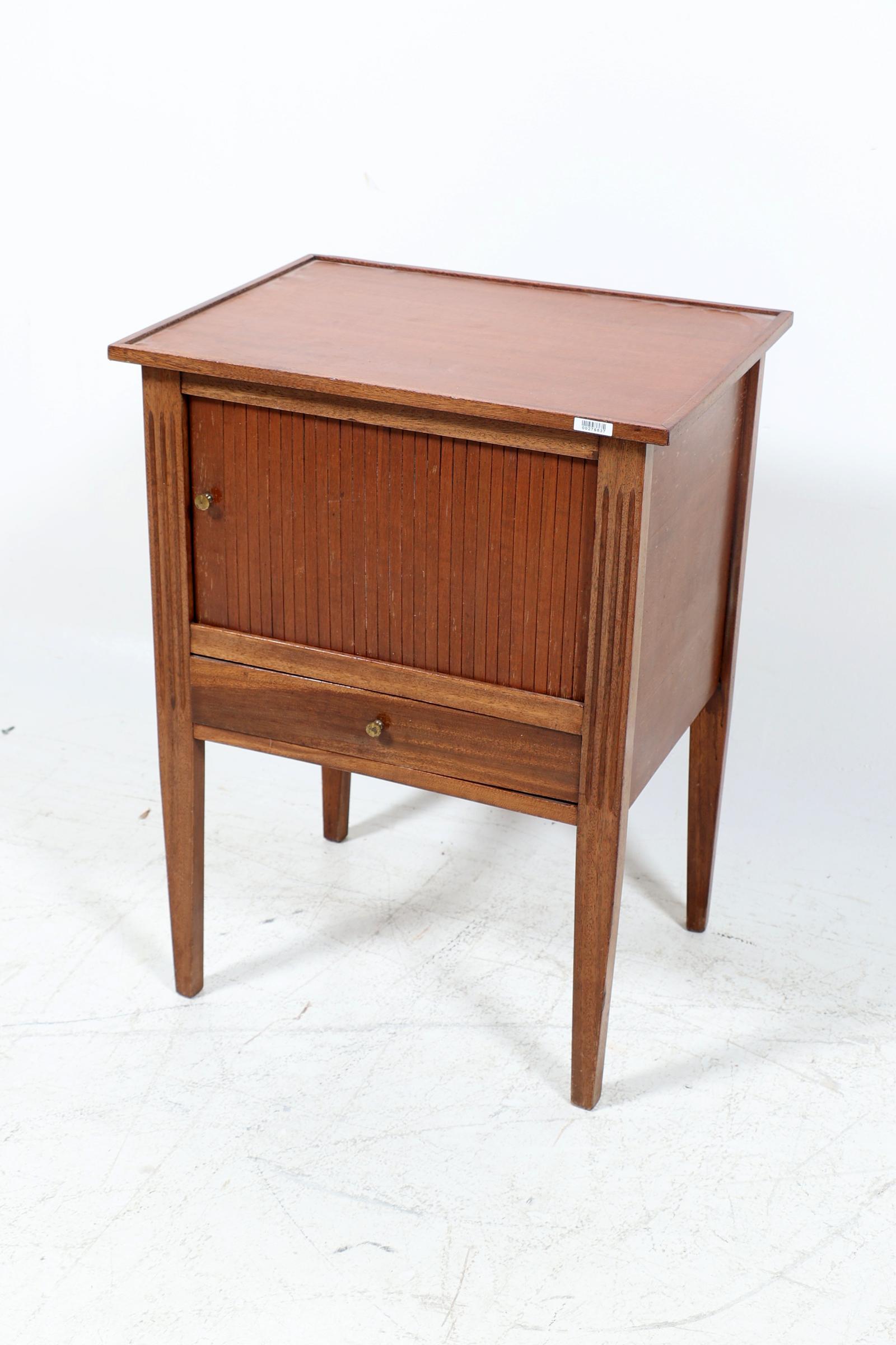 Mahoniehouten pottenkastje met jaloeziedeur, h.68 x b.51 x d.40 cm.