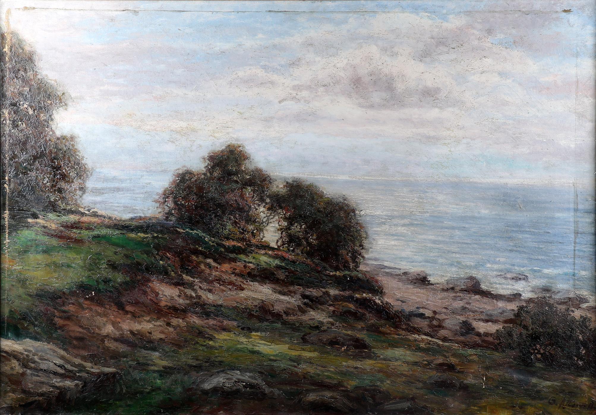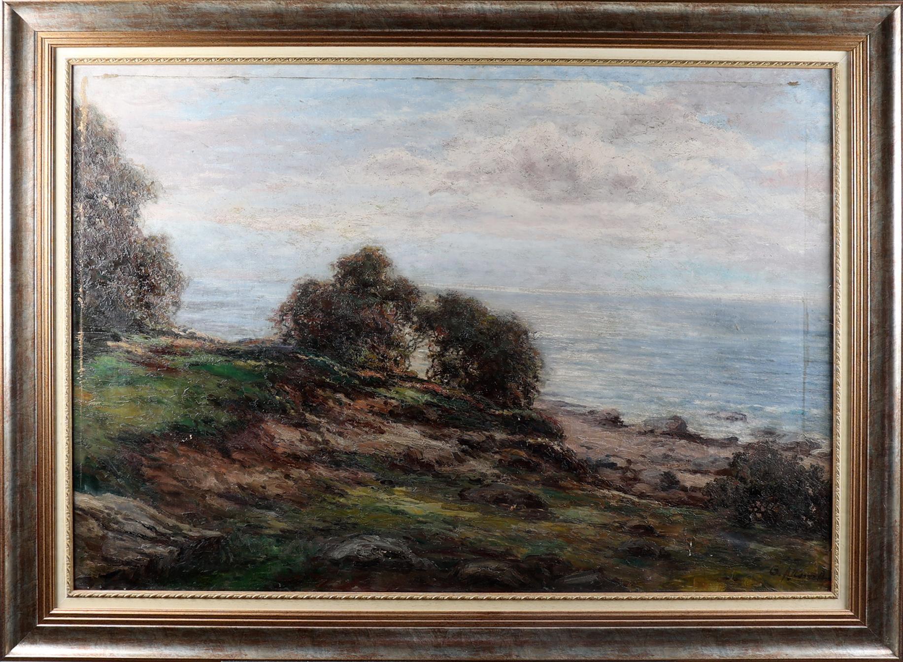 Ond. gesigneerd, Landschap langs de kust, olieverf op doek, 72 x 102 cm. (matige staat)