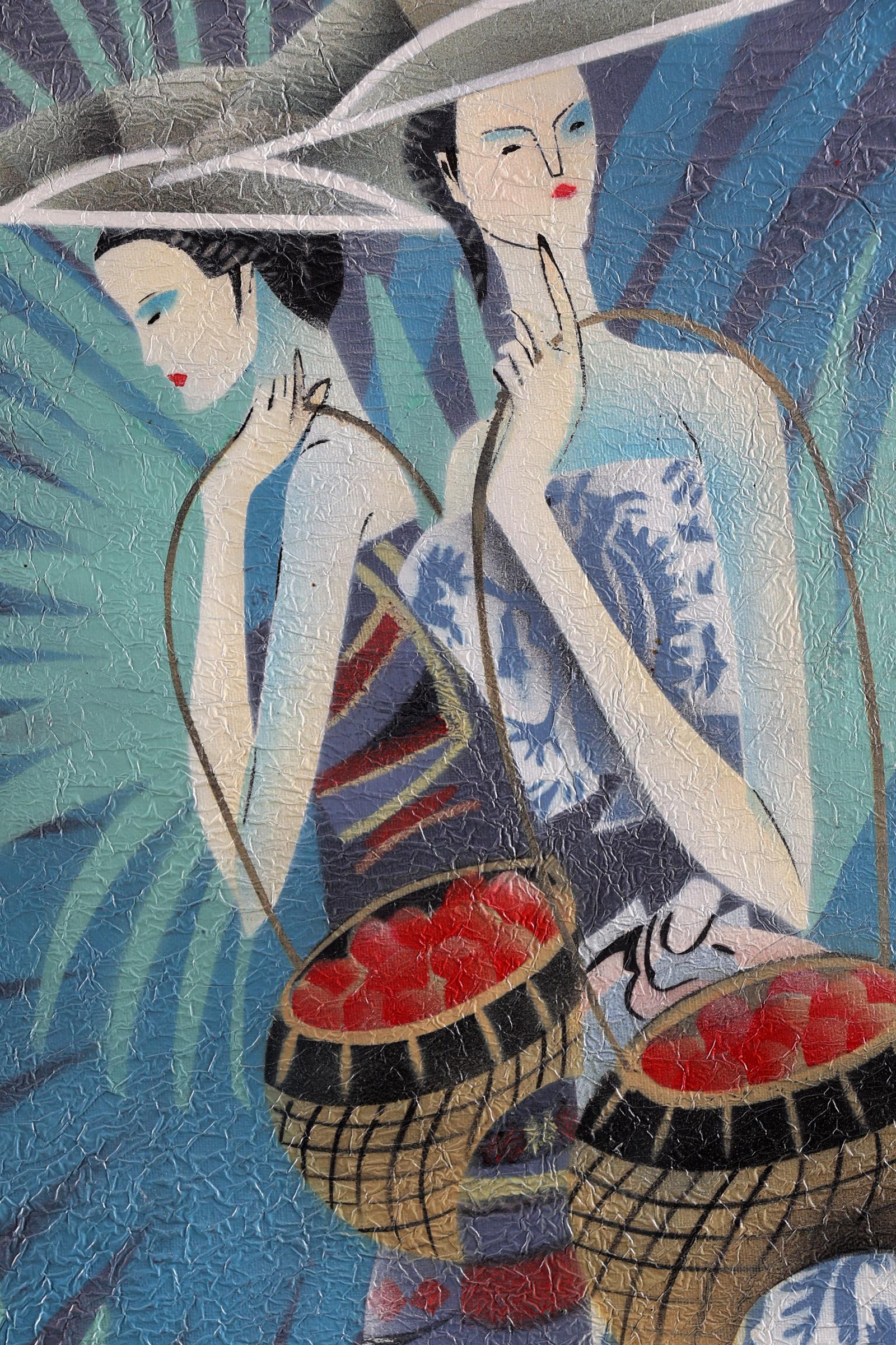Onb. meester, Twee Oosterse dames, olieverf op doek, 50 x 60 cm.