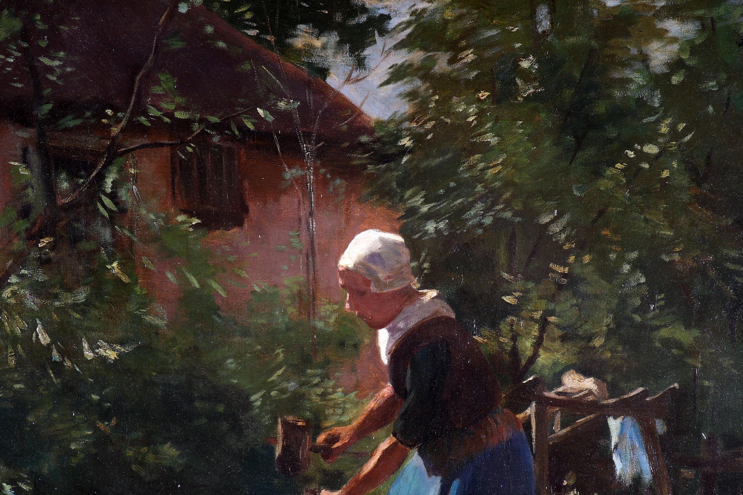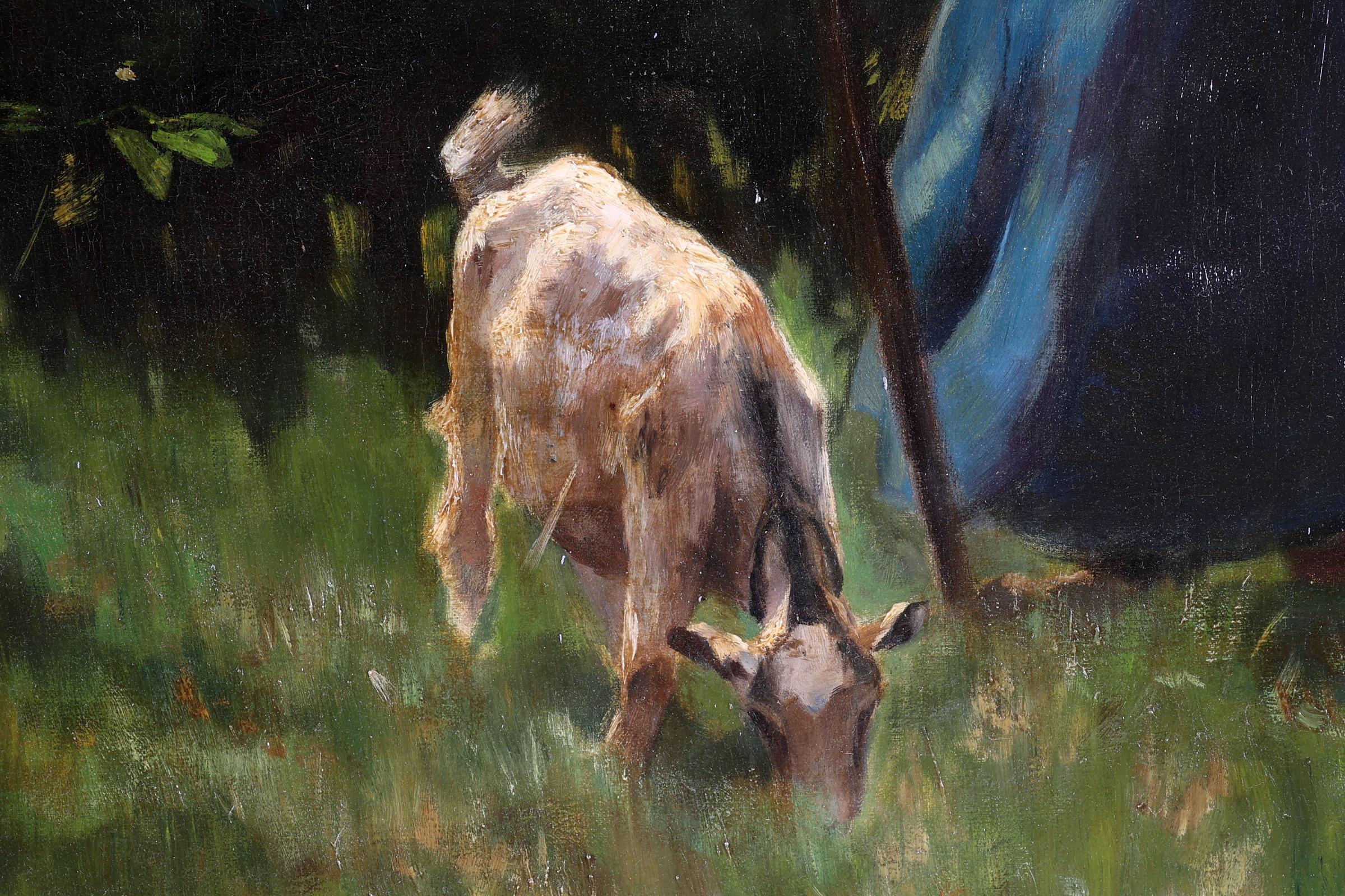 Willy Martens (1856-1927), Boerin met geit in landschap, olieverf op doek, 74 x 53 cm.