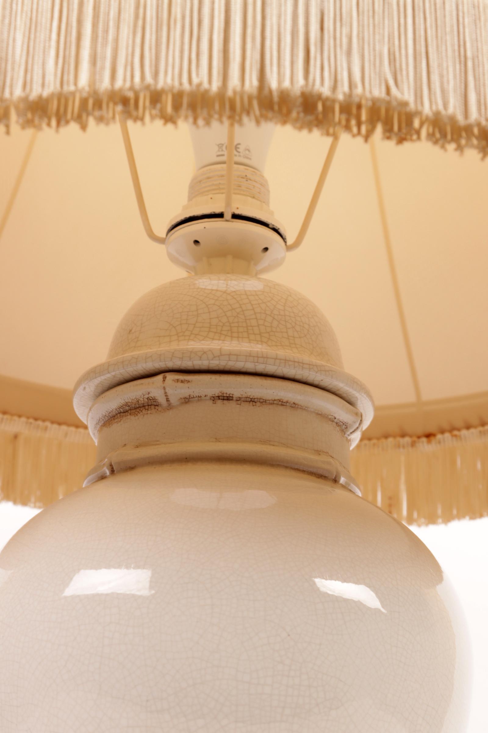 Witte keramiek schemerlampvoet met kap h.75 cm.