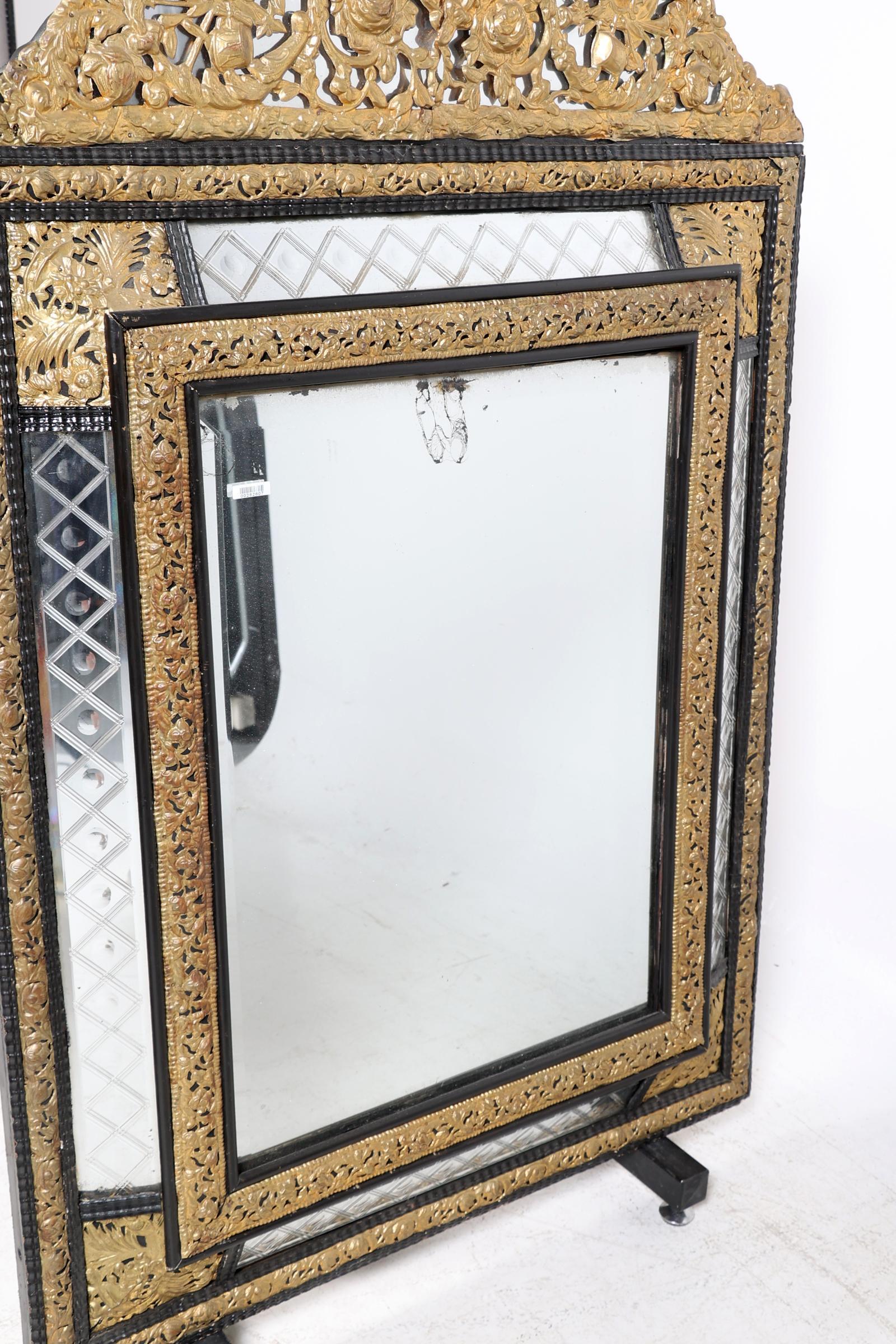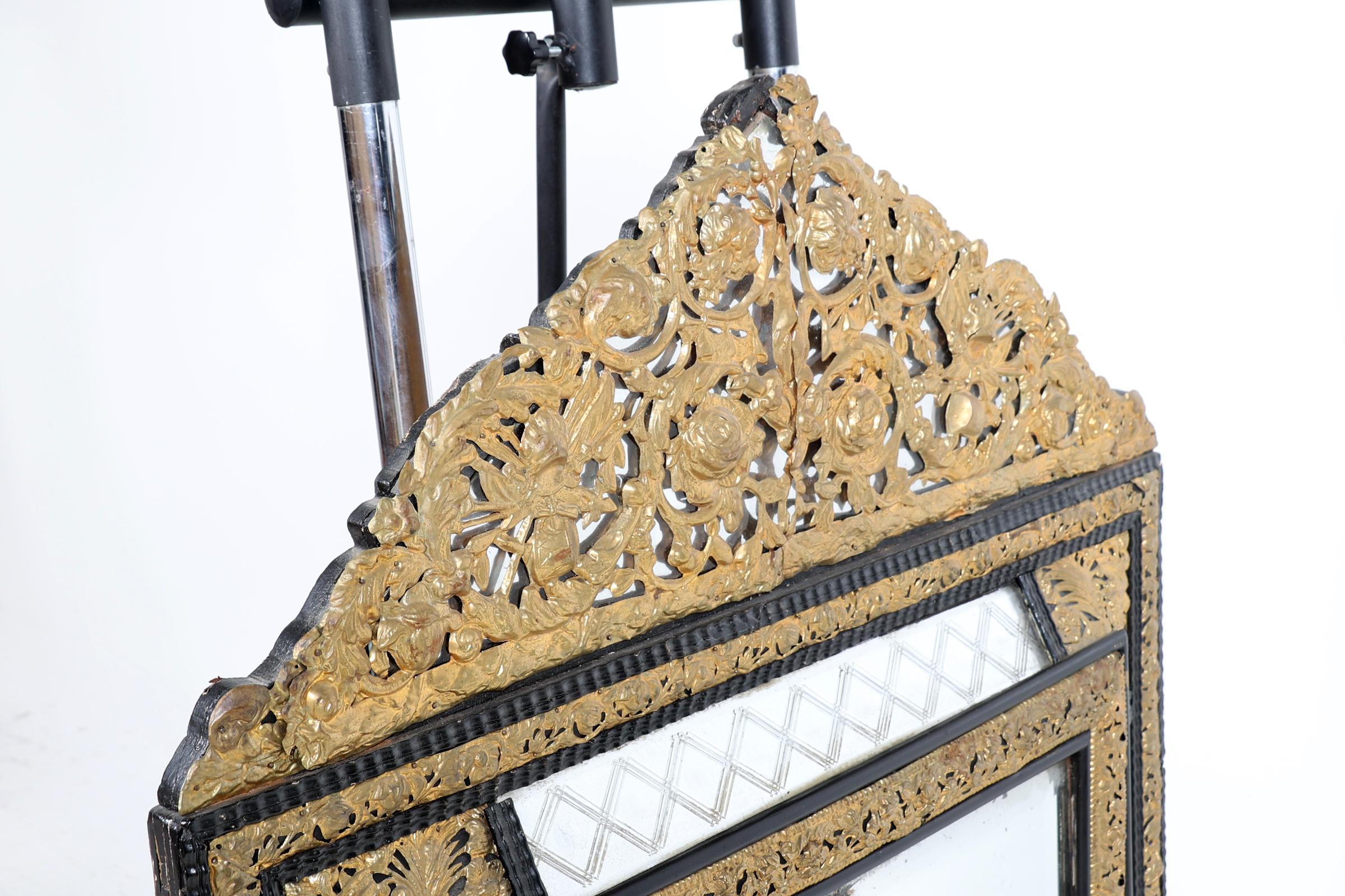 Antieke kuifspiegel met opengewerkt koper belijmd