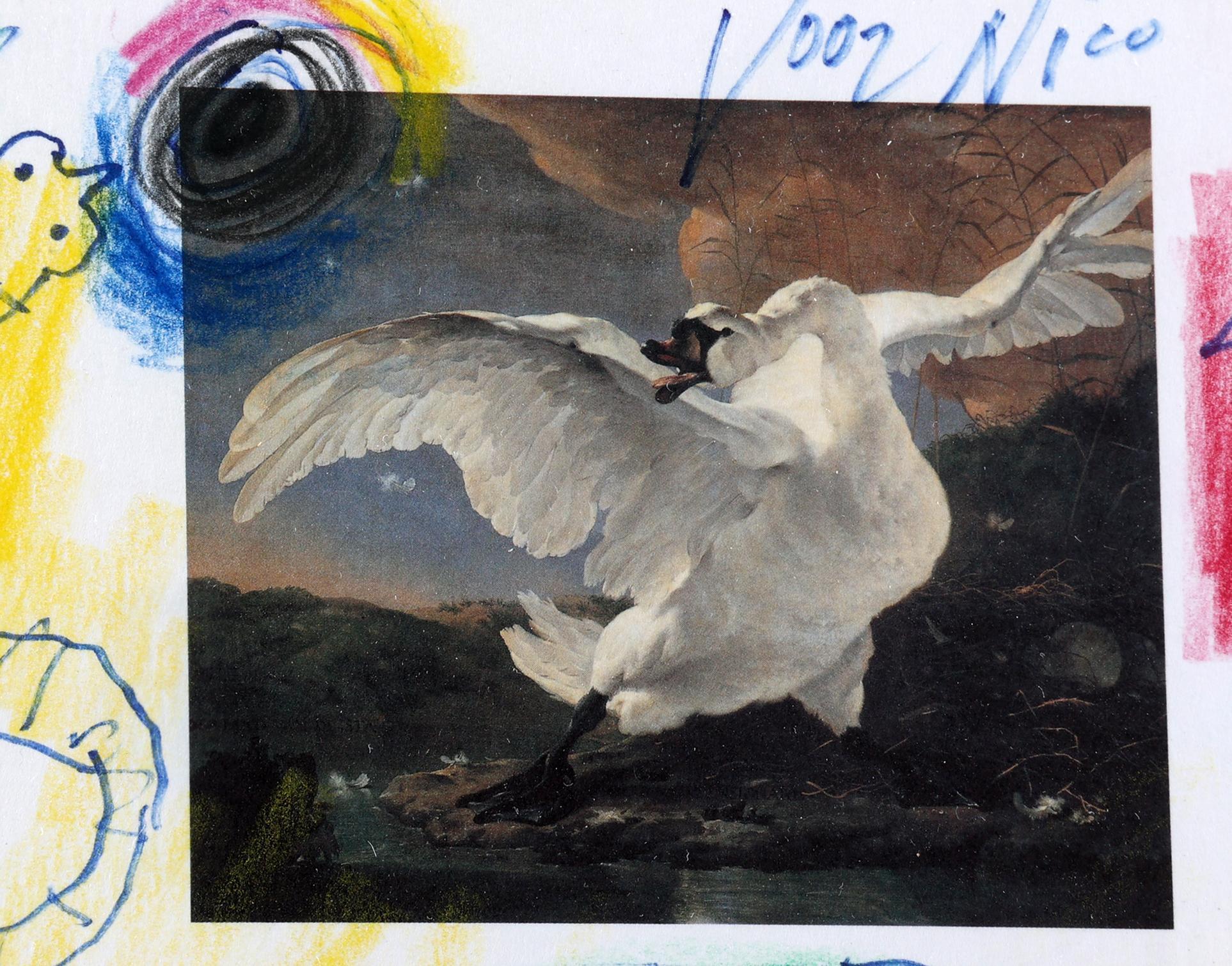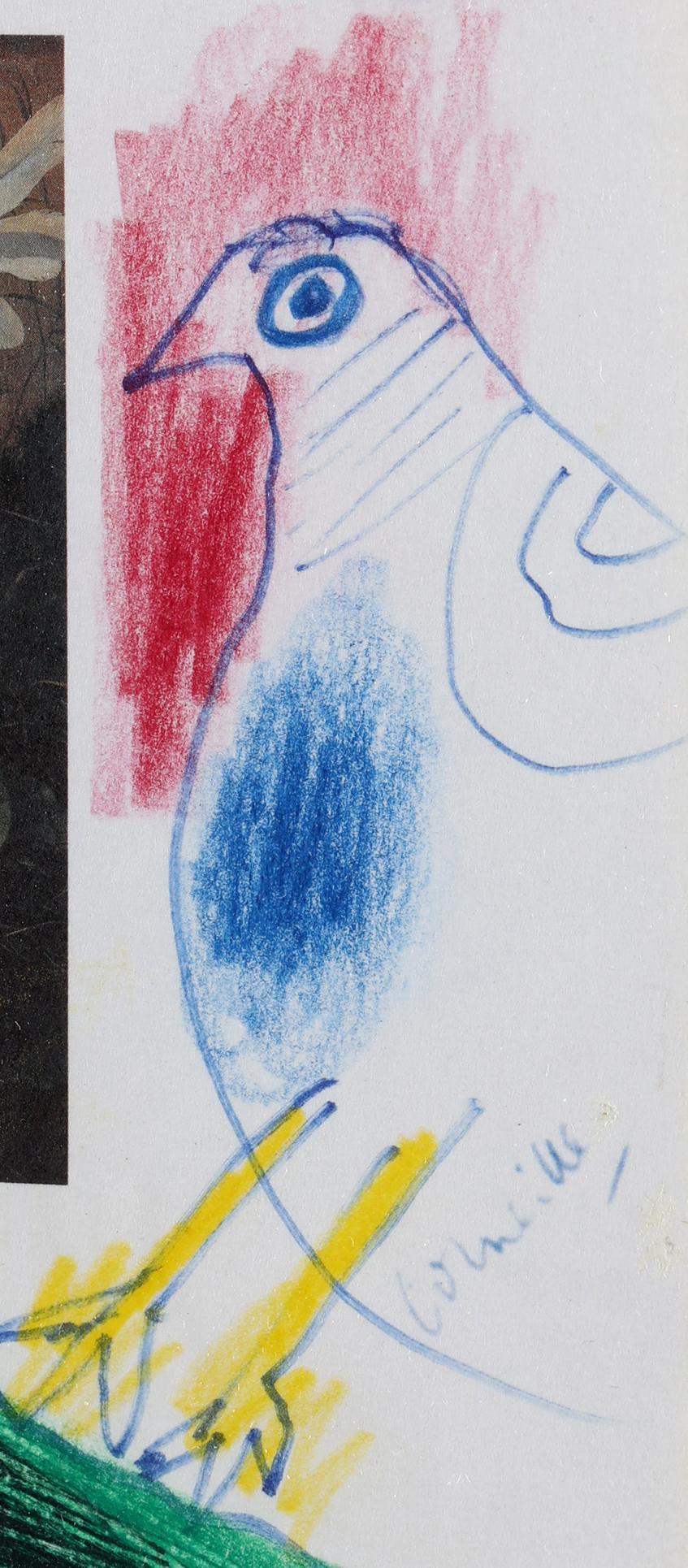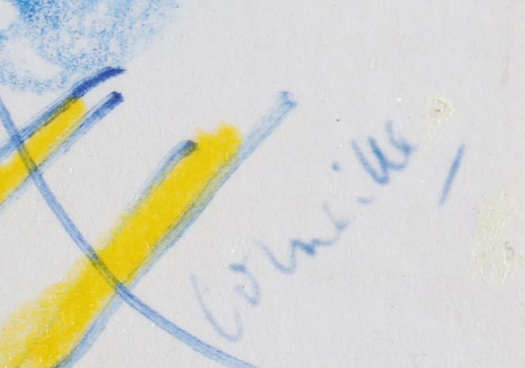 'Corneille', alias van Cornelis Guillaume van Beverloo, (1922- 2010), KLM official Airline of EURO 2000, ter gelegenheid voor het Europees Kampioenschap voetbal, door Corneille met de hand gedecoreerd "Voor Nico", 14,5 x 21 cm.
