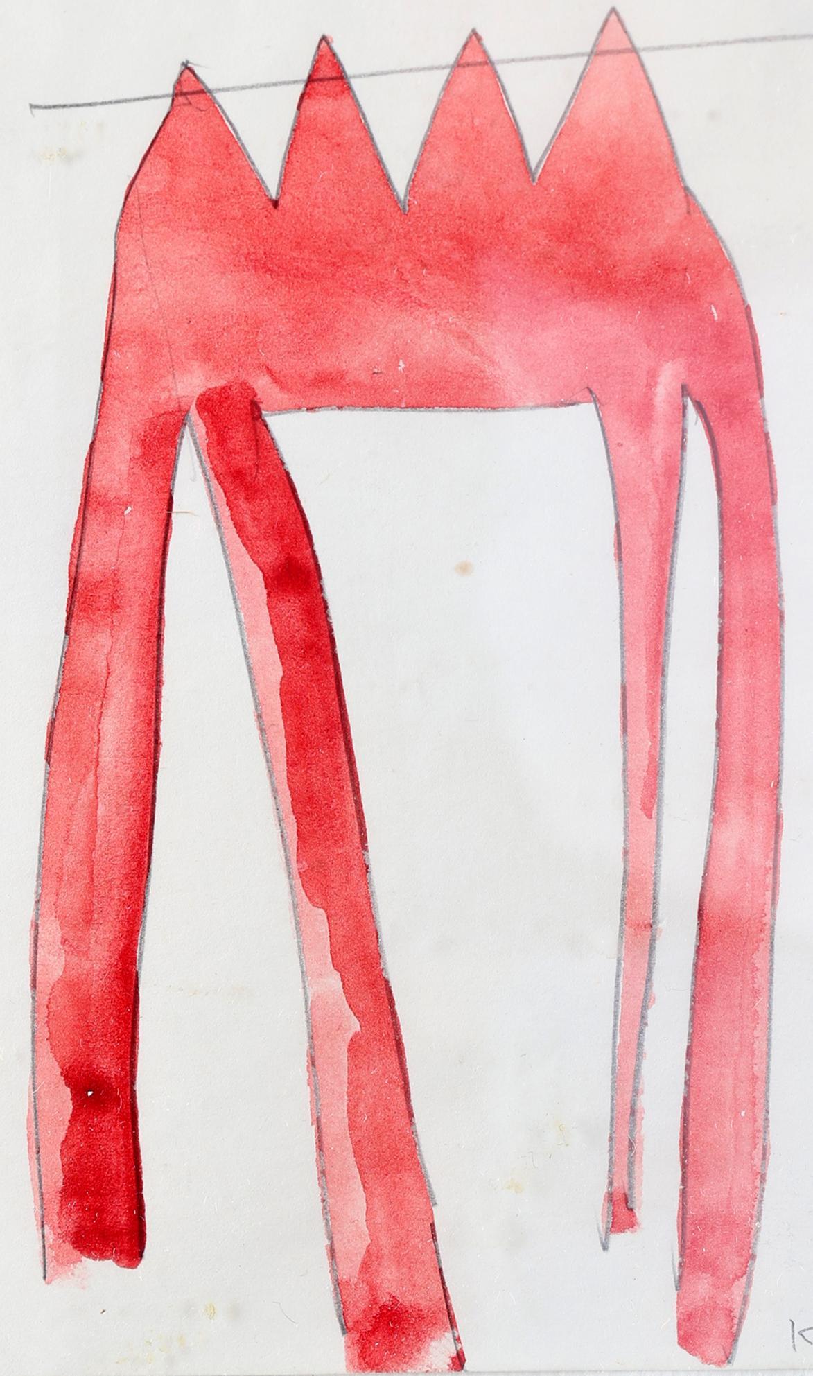 Klaas Gubbels (Rotterdam 1934), Rode tafel, aquarel op papier, gemonogrammeerd KG en gedateerd ´78, 14,5 x 10 cm.