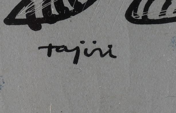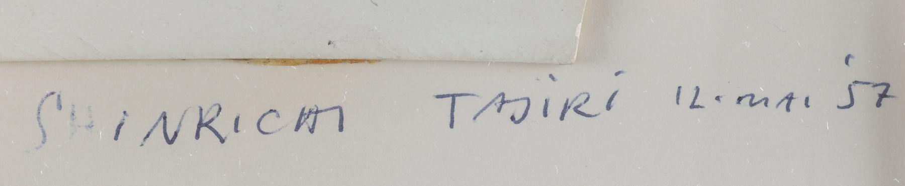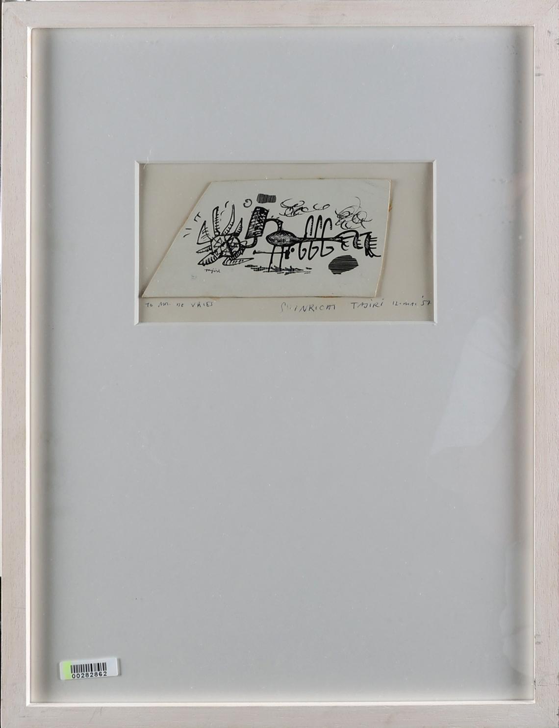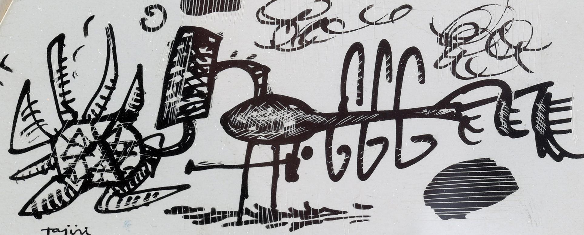 Shinkichi Tajiri (1923 - 2009), inkttekening op scraperboard, gedateerd 12 mei ´57, in opdracht van Mr. de Vries, 16,5 x 9 cm.