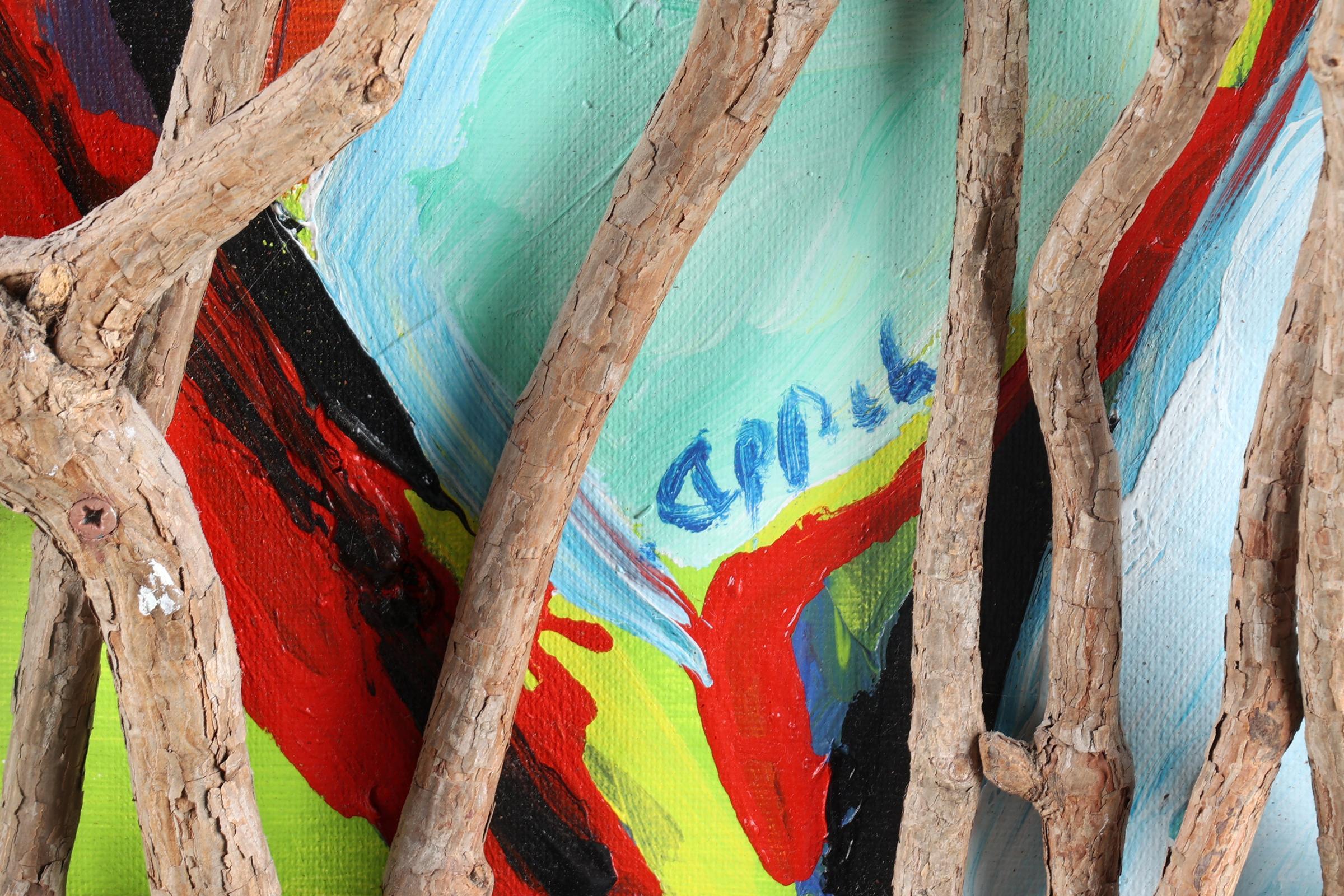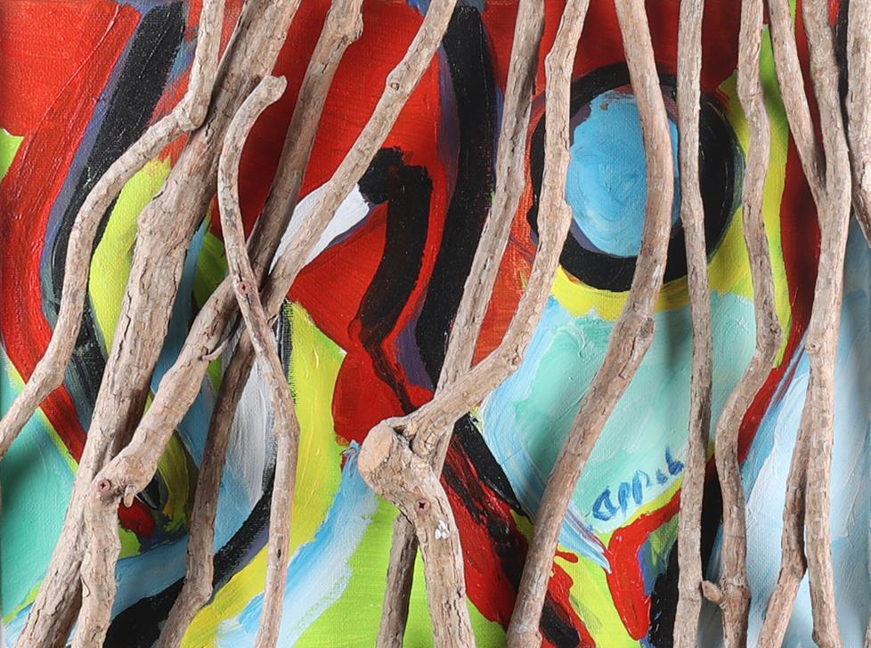 Christiaan (Karel) Appel (1921-2006), Tuinen Amsterdam gezien door het Amsterdamse bos, acryl en hout op doek, gedateerd 2004, 53 x 46 x 7 cm. Provenance: privé collectie / rechtstreeks verworven van de kunstenaar door diens tuinman (nota bene: het kunstwerk is geregistreerd bij de Karel Appel Foundation onder nummer KA.2004.26