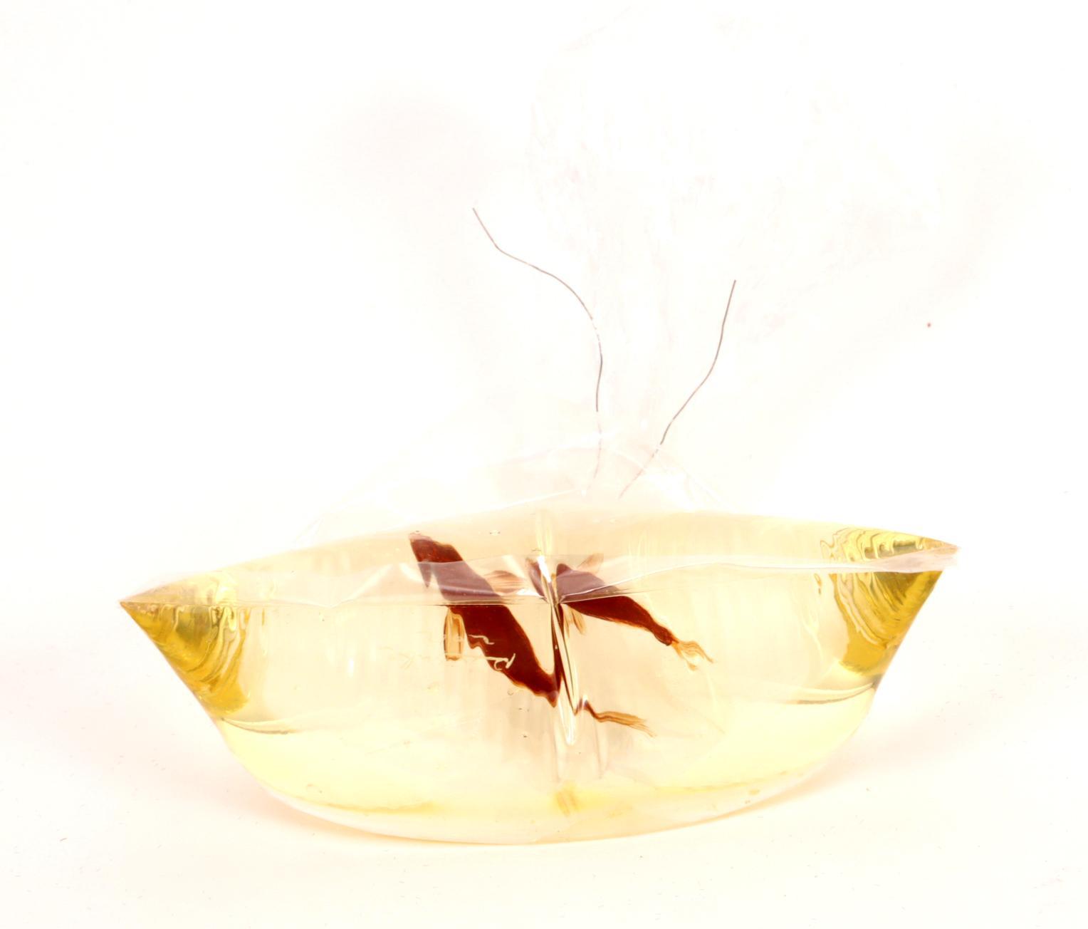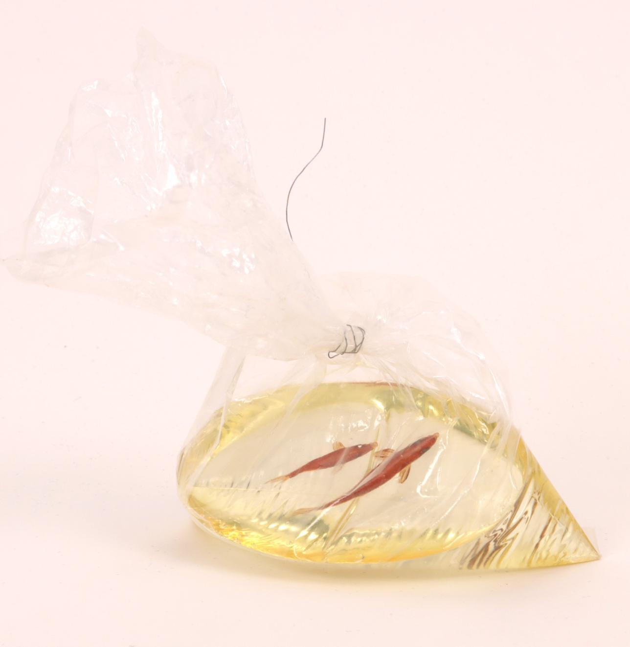 Riusuke Fukahori (1973), Goldfish bag (2012), sculptuur in gemengde techniek (plastic zak, hars en acryl), 20,5 x 12 x 5,5 cm.