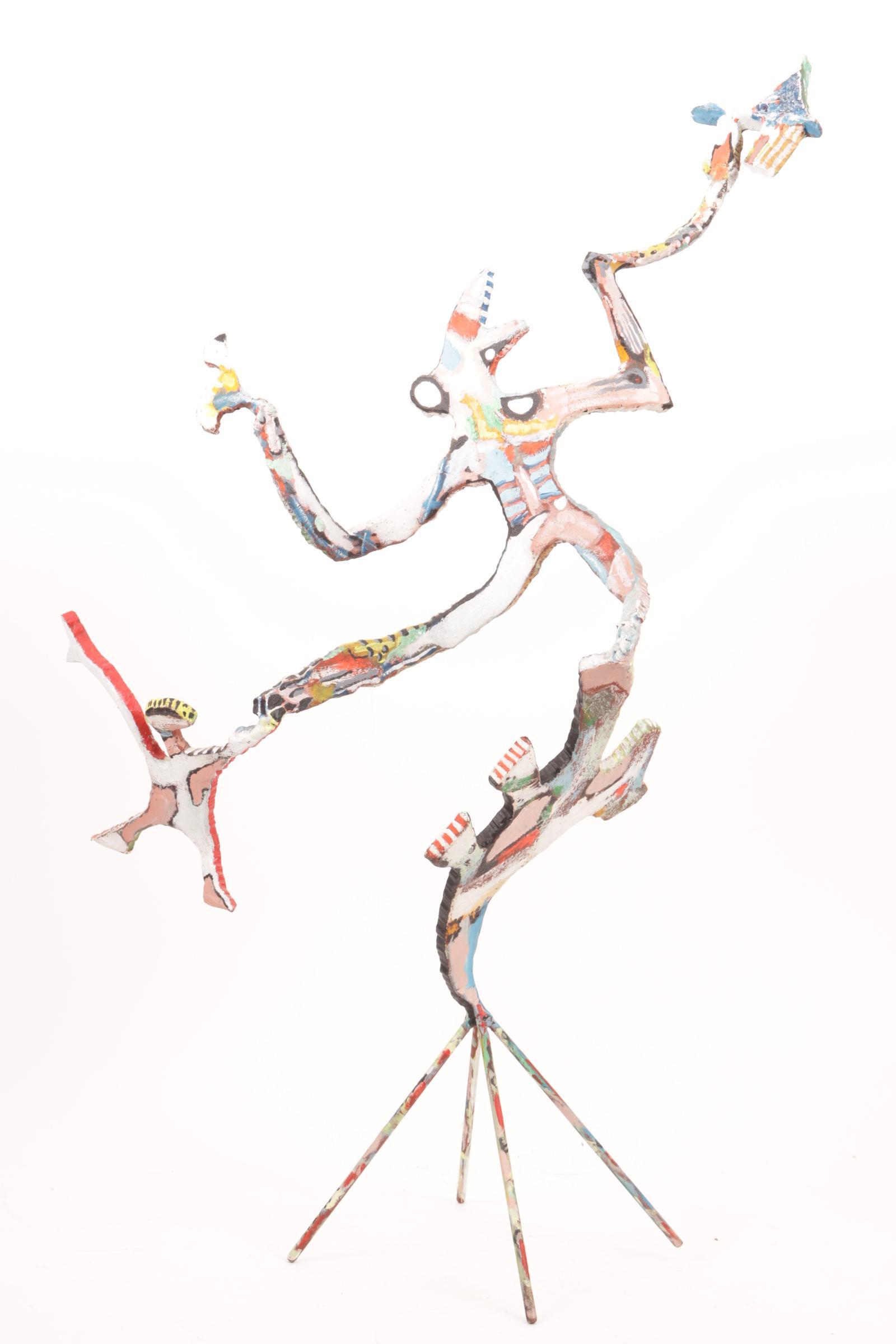 Frans Muhren (1949), polychroom beschilderde metalen abstracte sculptuur, h.74 cm.
