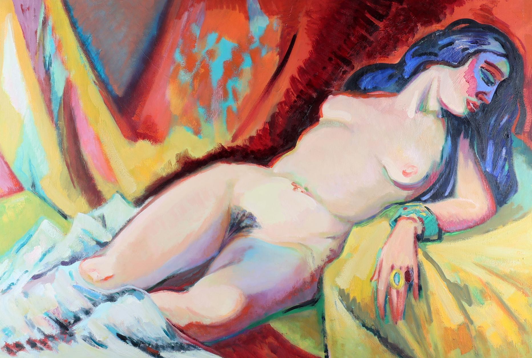 Freek van den Berg (1918 - 2000), Naakte dame, olieverf op doek, met studio stempel op de achterkant, 90 x 130 cm.