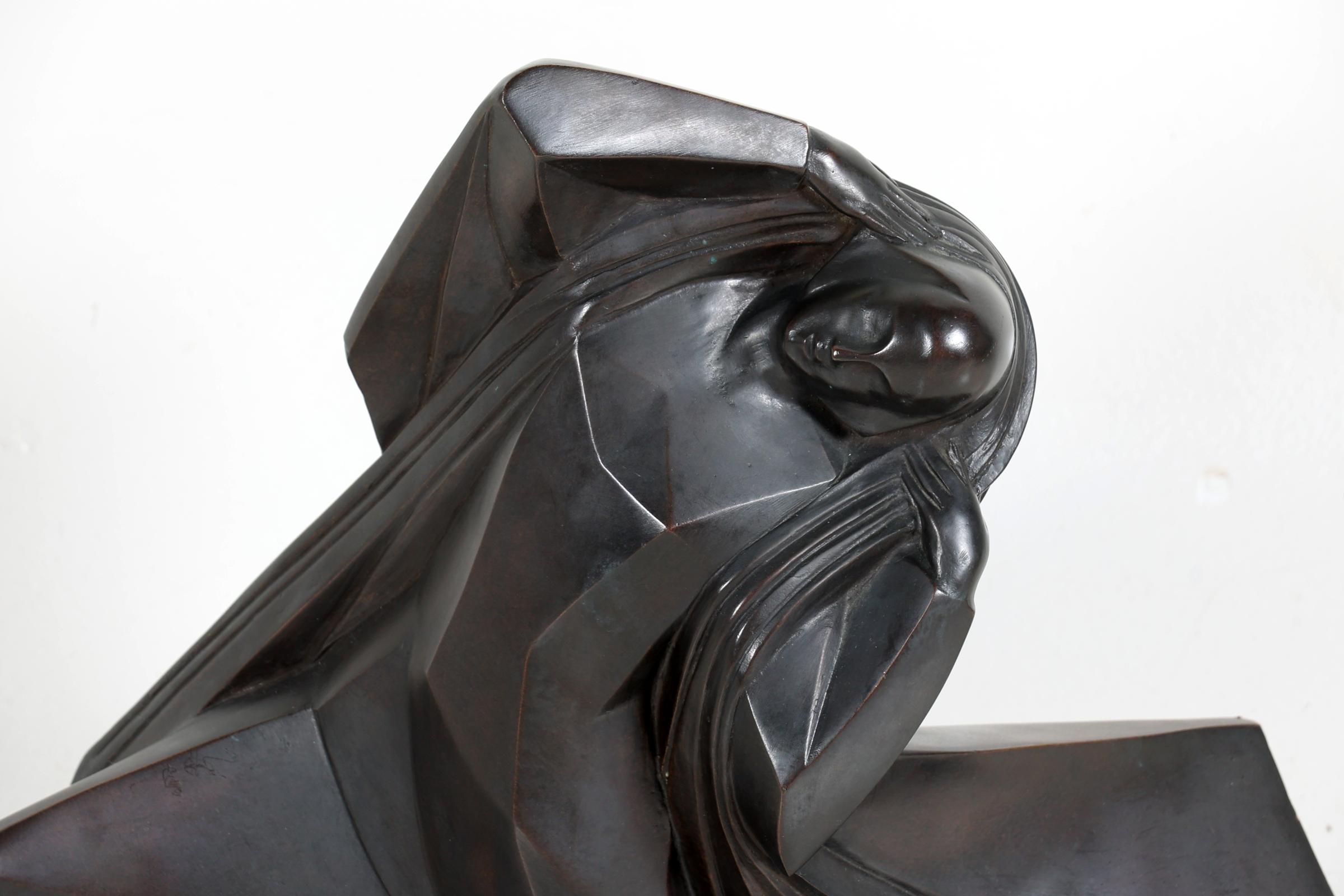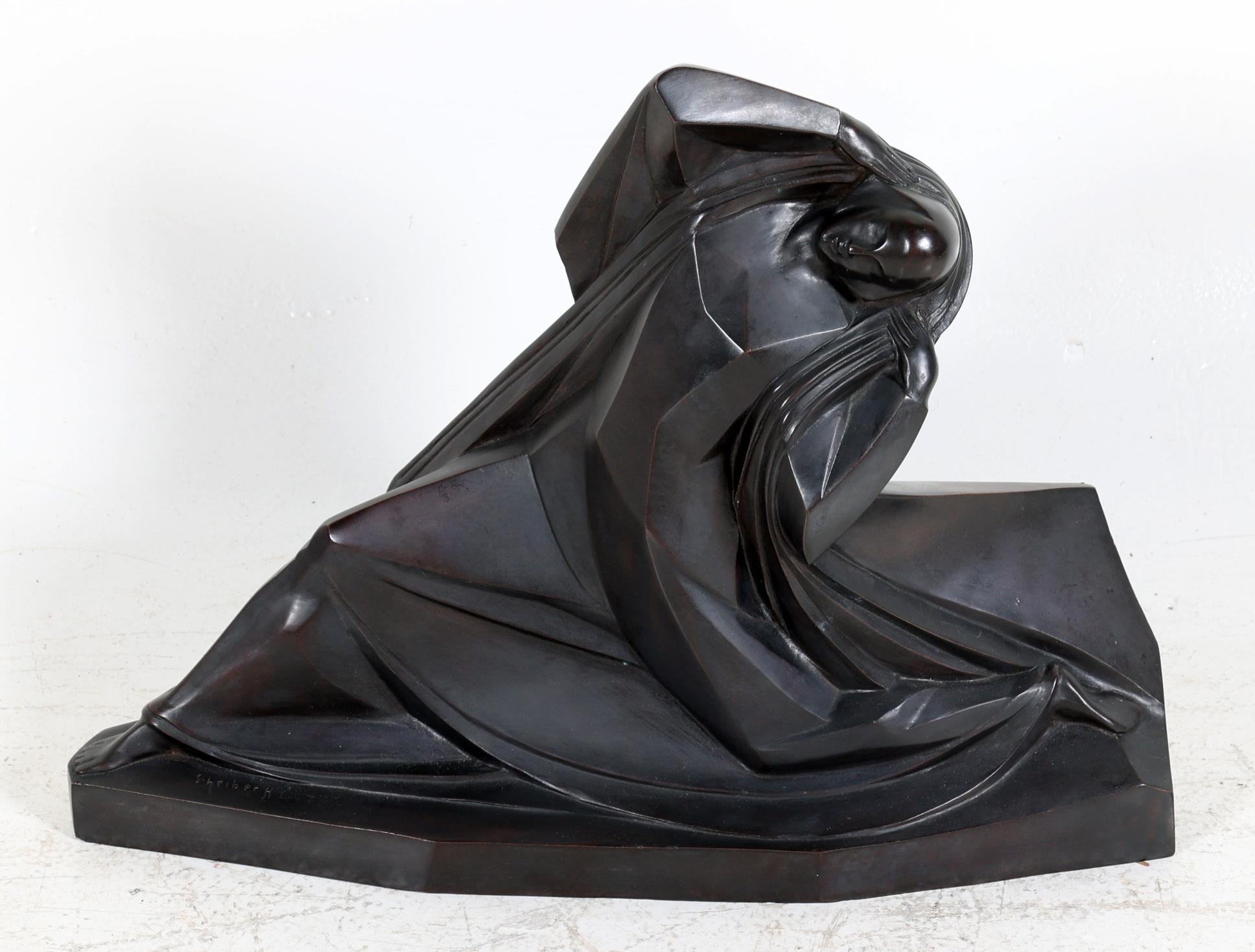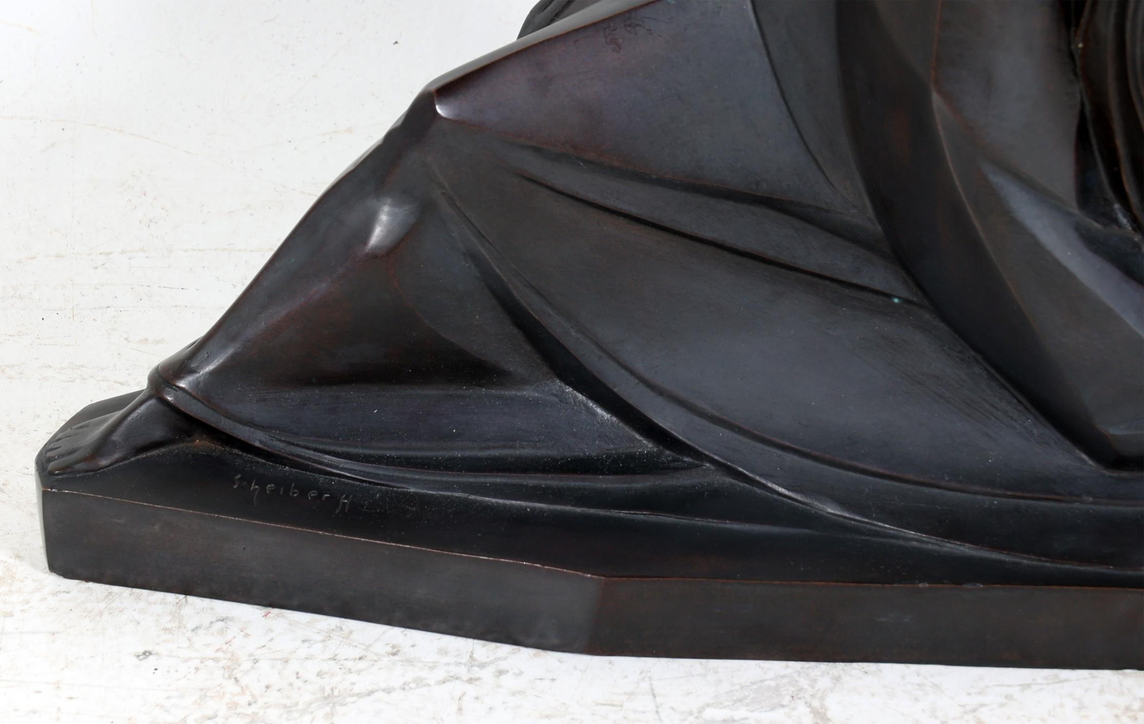 Hugo Scheiber (1873 - 1950), bronzen sculptuur van een gesluierde dame, 40 x 52 x 20 cm.