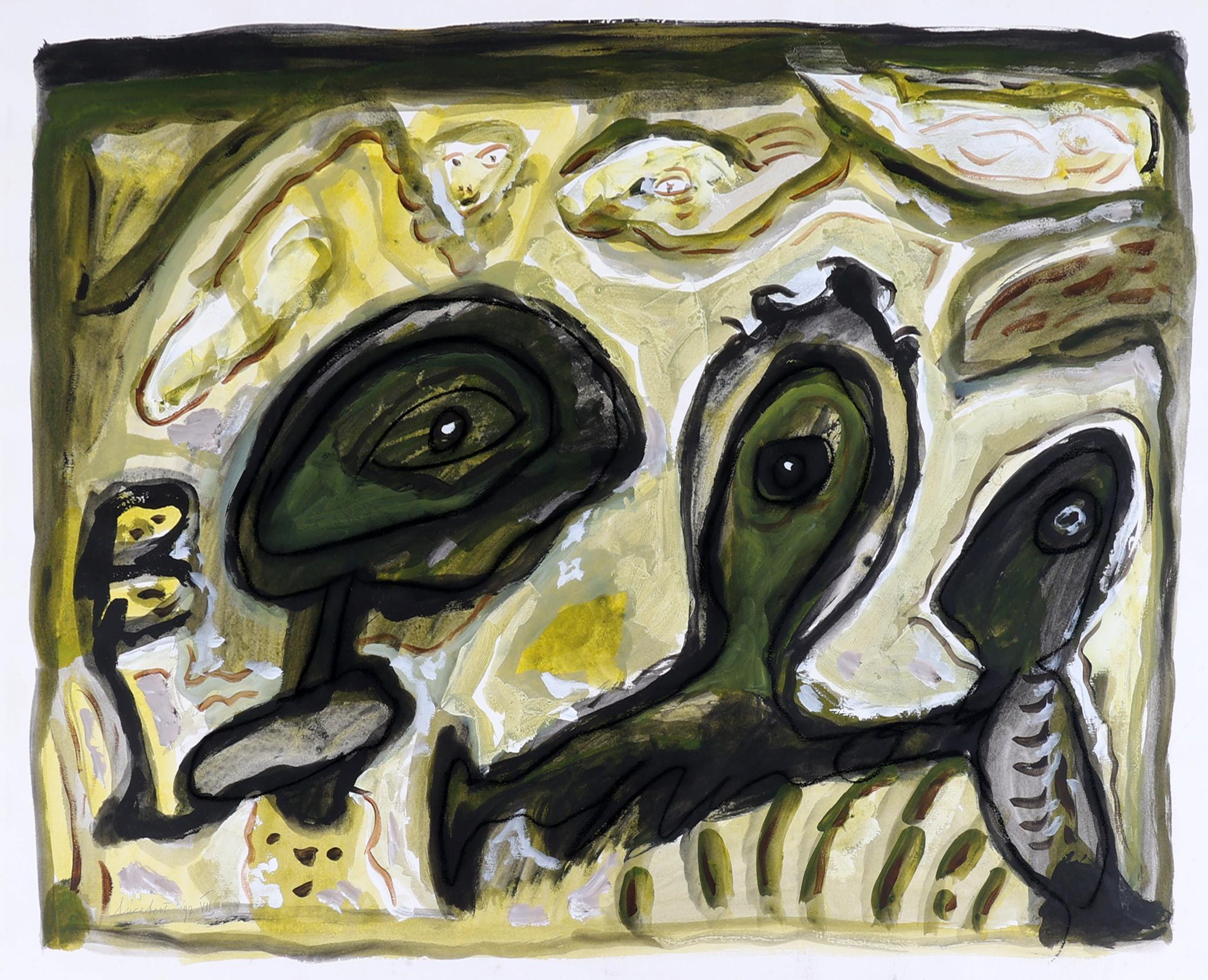 'Lucebert' alias van Lubertus Jacobus Swaanswijk (1924-1994), Zonder titel, gouache op papier, hand gesign., nr. 92VII, 100 x 70 cm.,povenance particuliere collectie/niet ingelijst