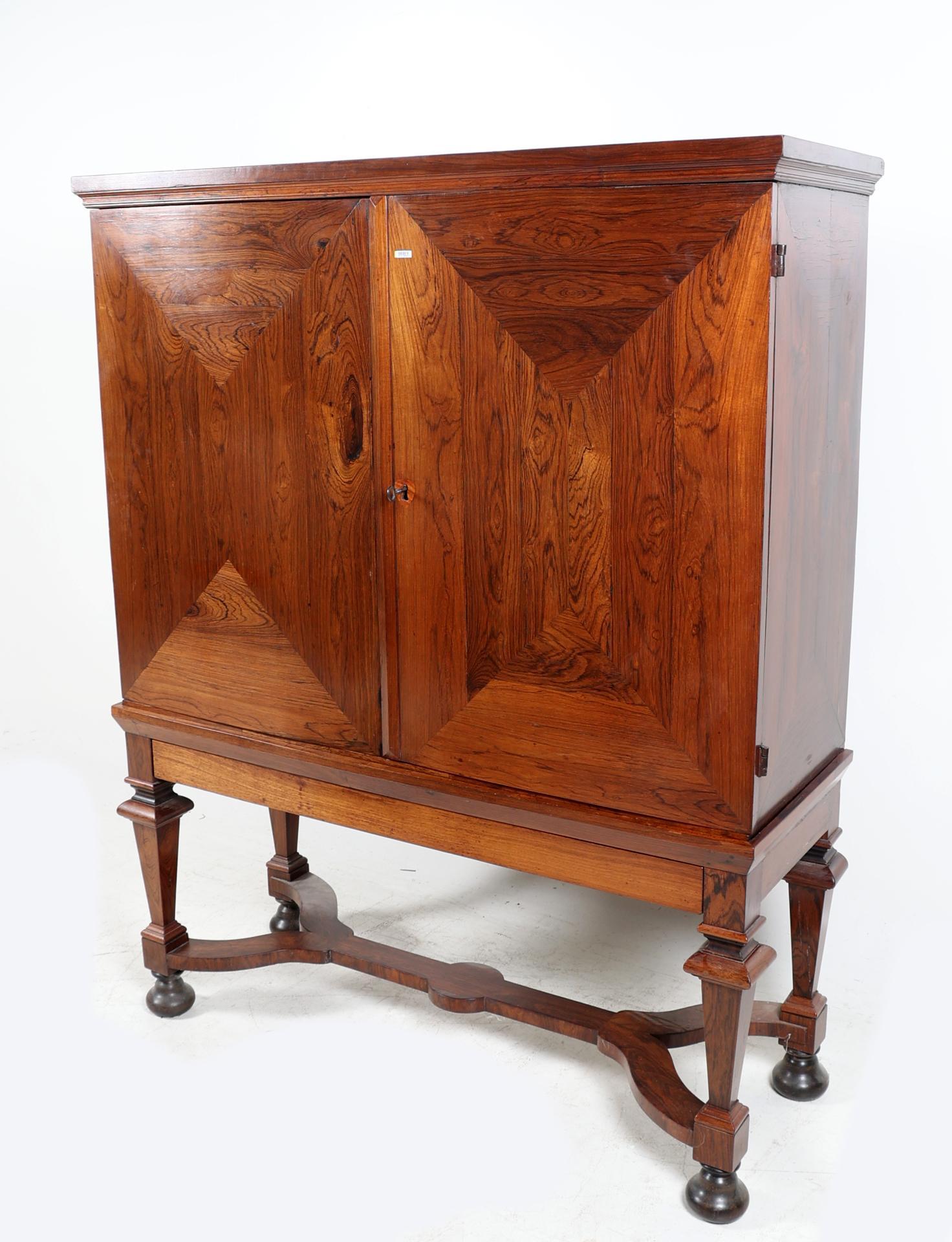 Antiek palissanderhouten kruisvoet kabinet, Holland 18e eeuw, 169 x b.134 x d.49 cm.