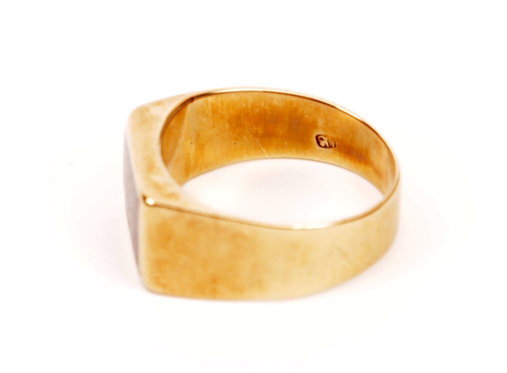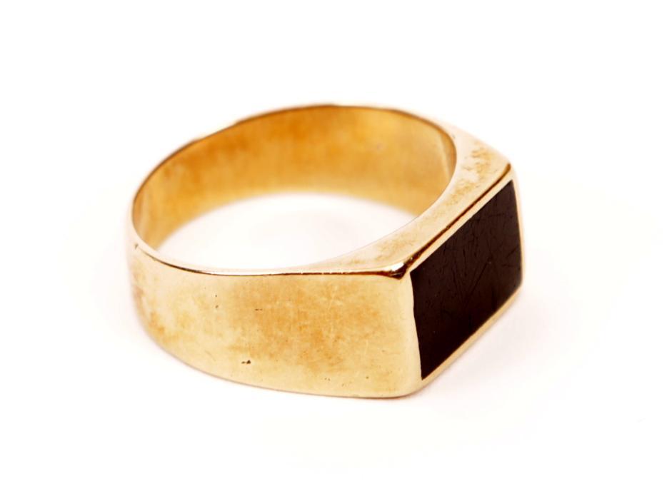 14 Kt. gouden herenzegelring bezet met zwarte onyx, diam.20 mm., 7,2 gram