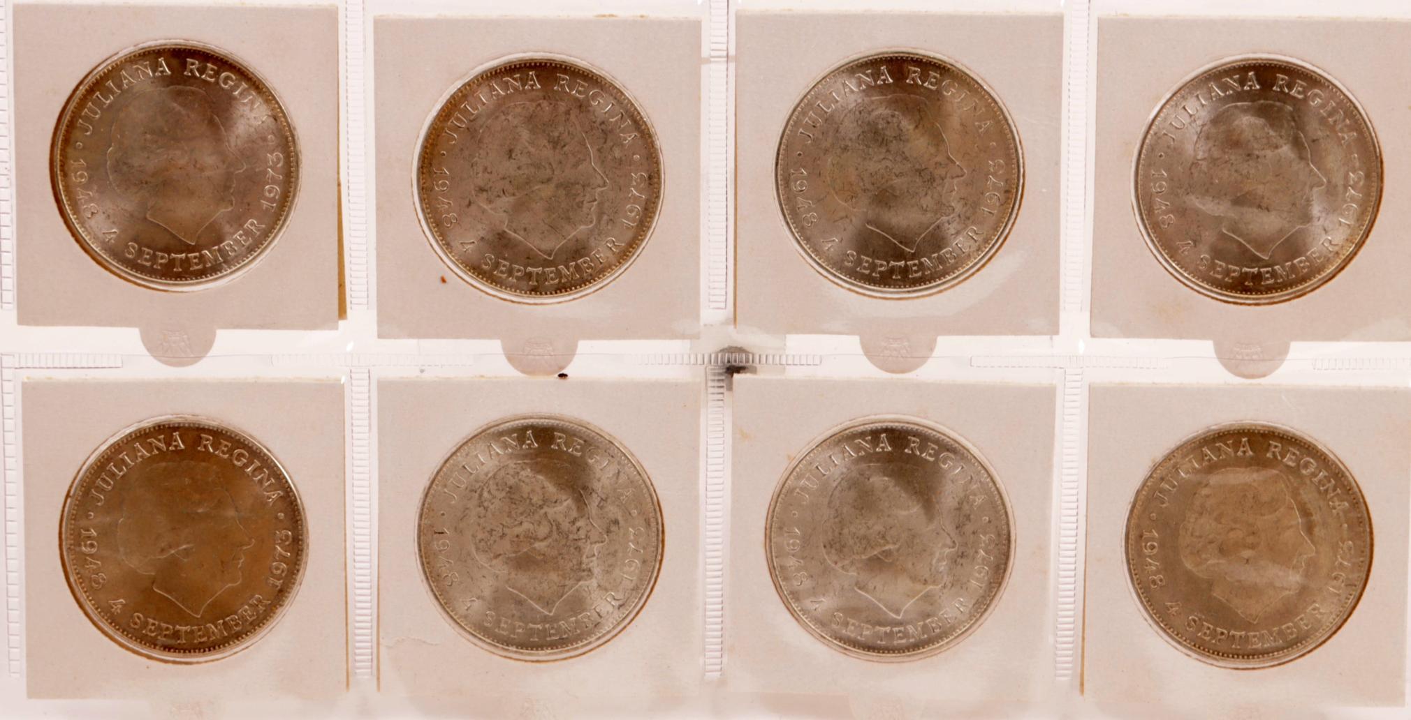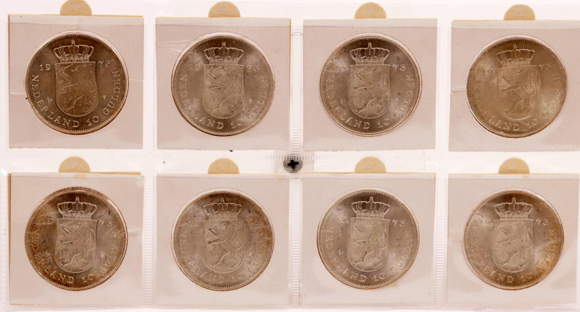 8 Zilveren 10 gulden muntstukken, Juliana, 1948, 1973