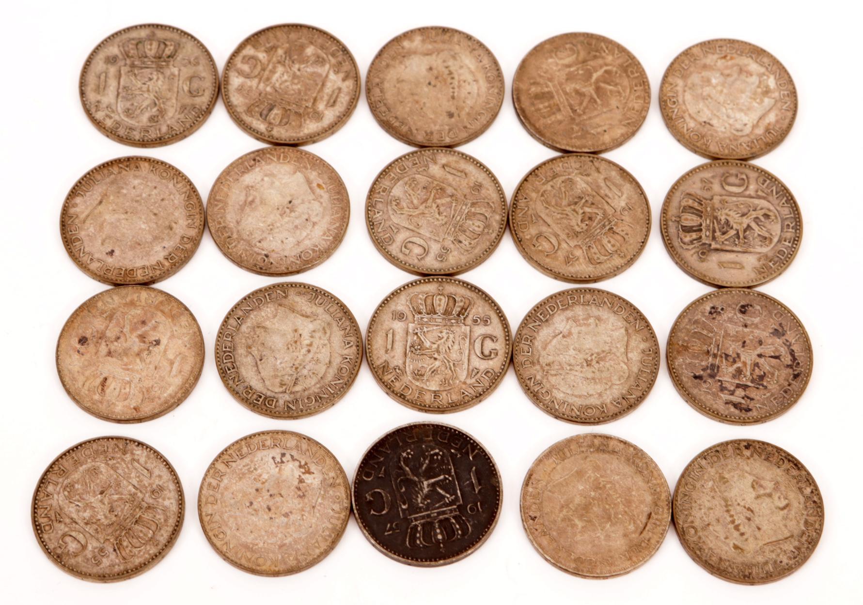 20 Zilveren guldenmuntstukken, Koningin Juliana, diverse jaren