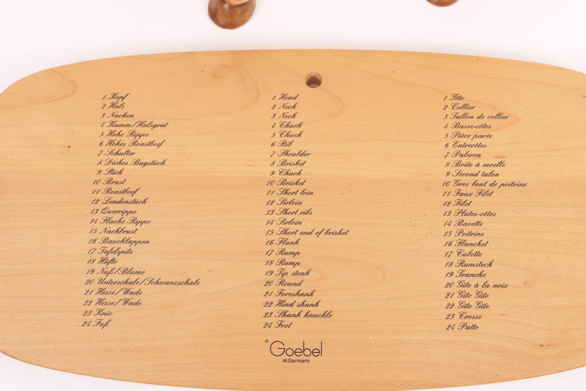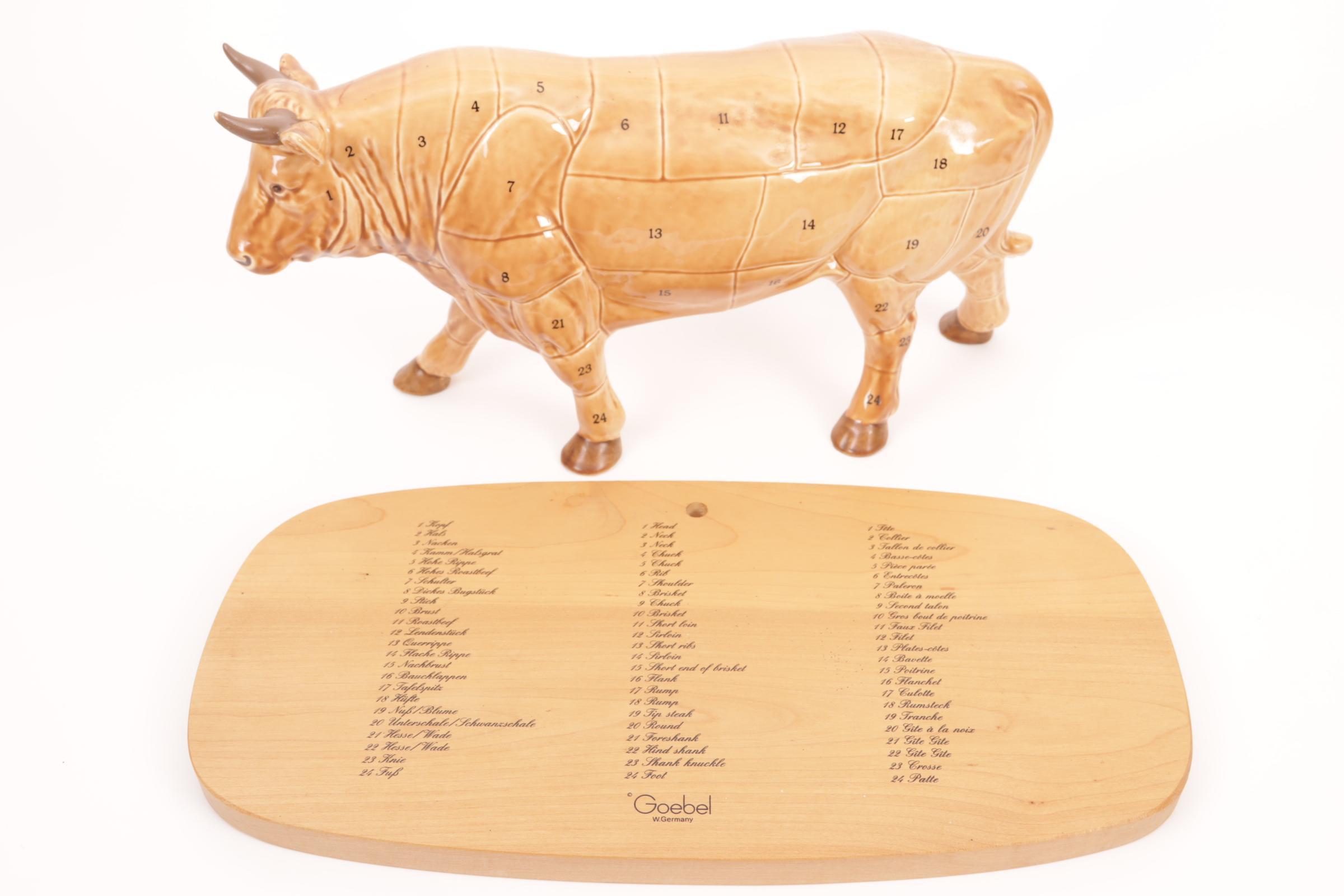 Porseleinen beeld van een koe, Goebel met originele vleesplank, h.20 x L.39 cm.