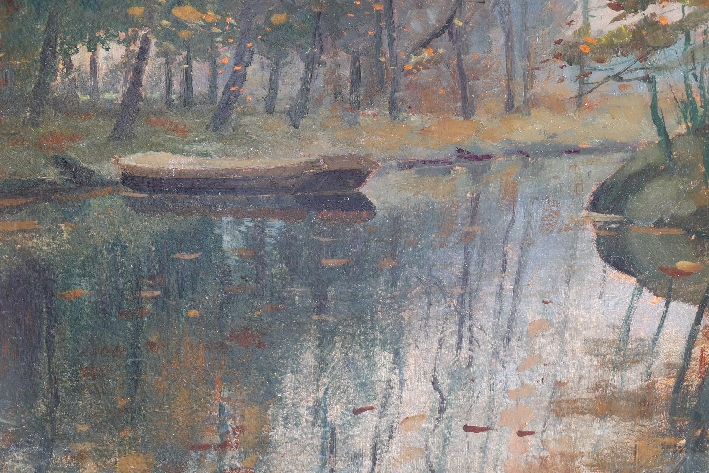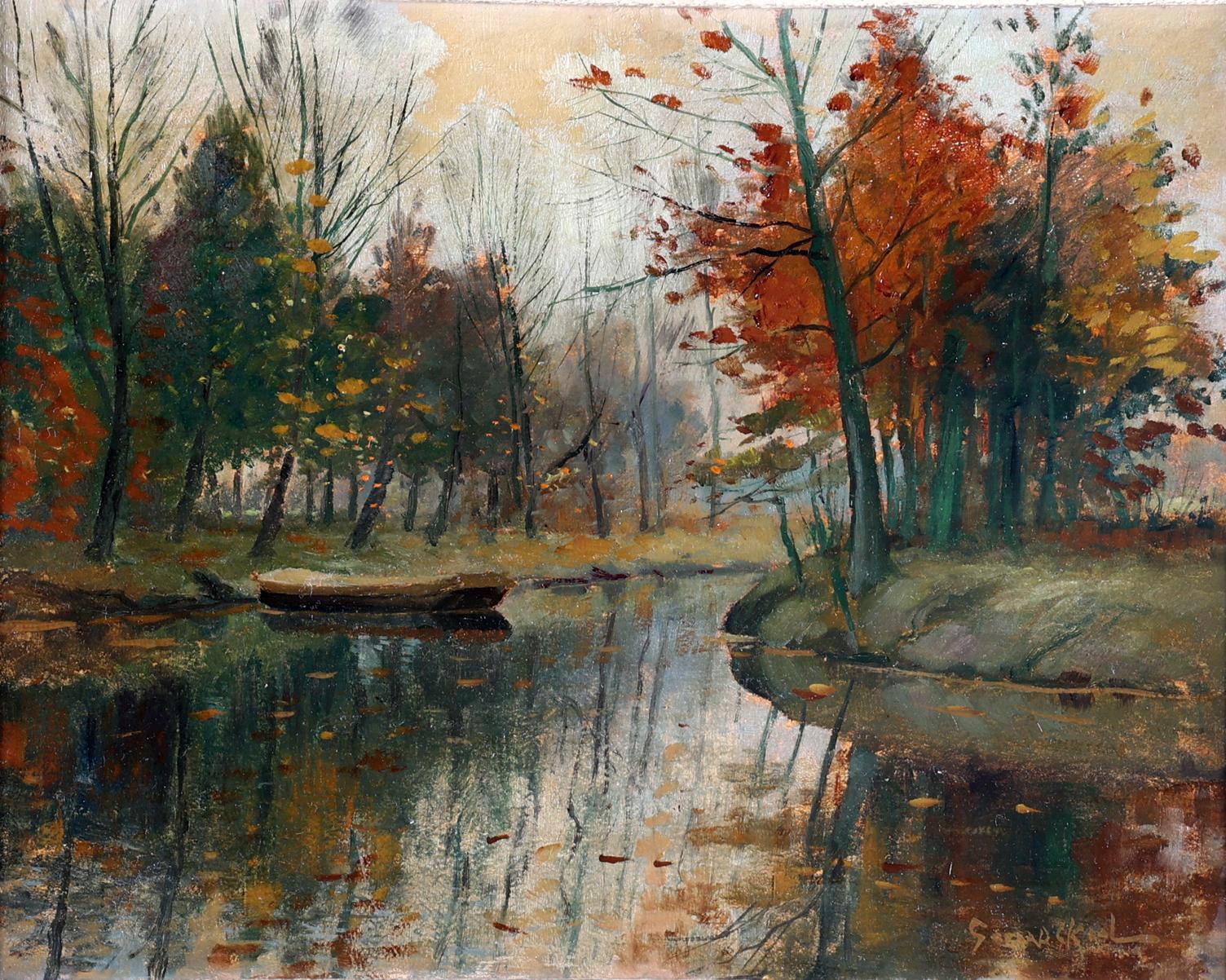 Gerard C. Krol(1882-1950), Rivierlandschap met bootje, Dinkel Denekamp, olieverf op board, 1944, 39 x 49 cm.