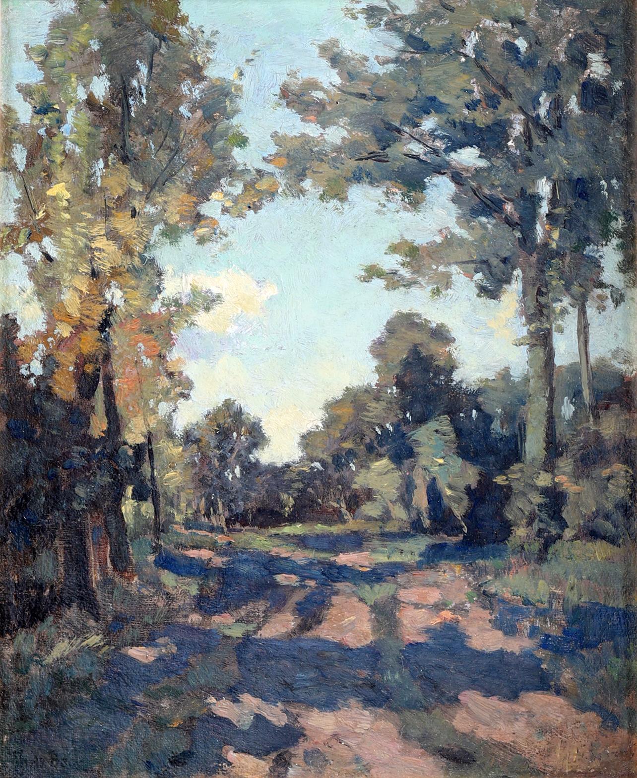 Theophile Emile de Bock (1851-1904), Laan met bomen, olieverf op,paneel, 24 x 31 cm.