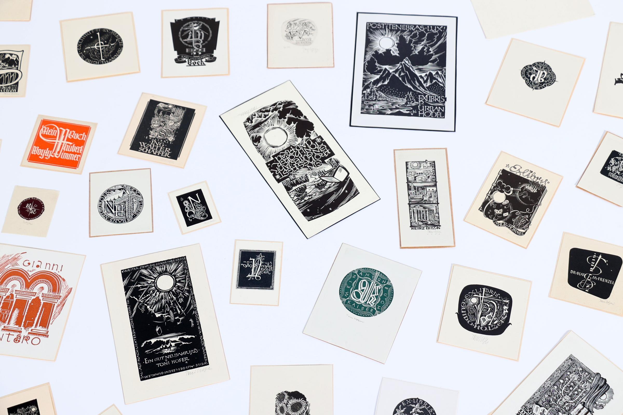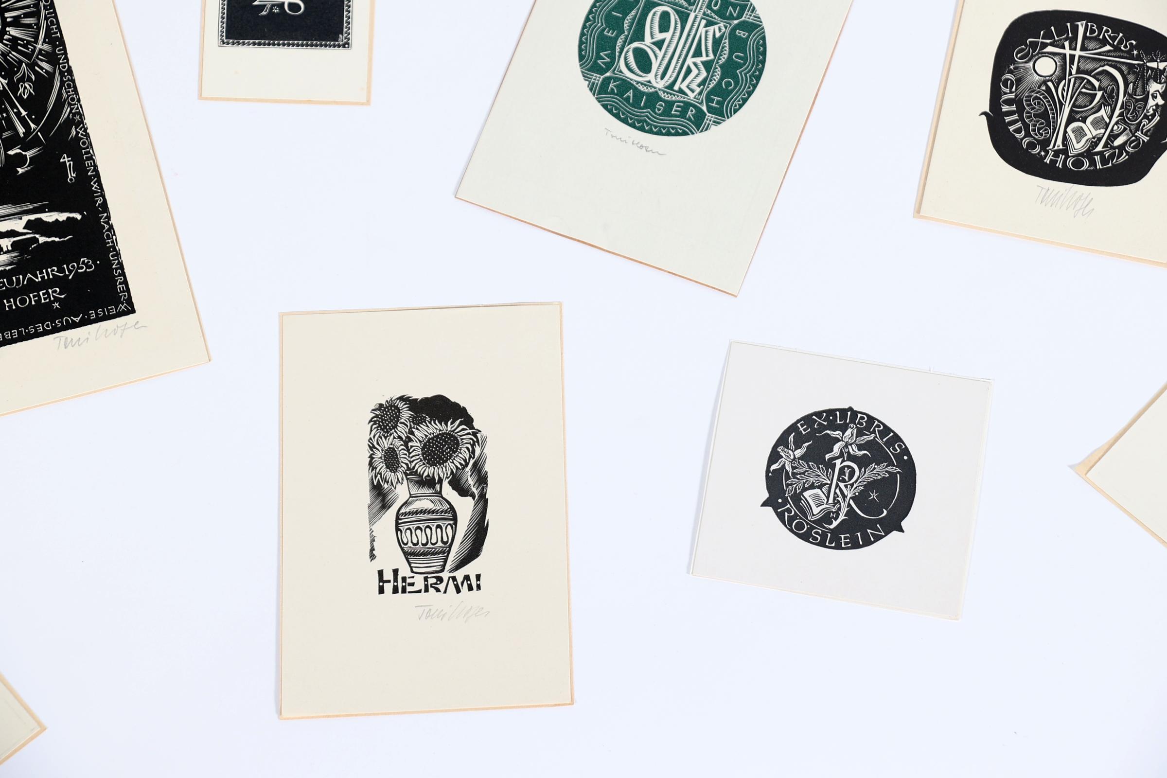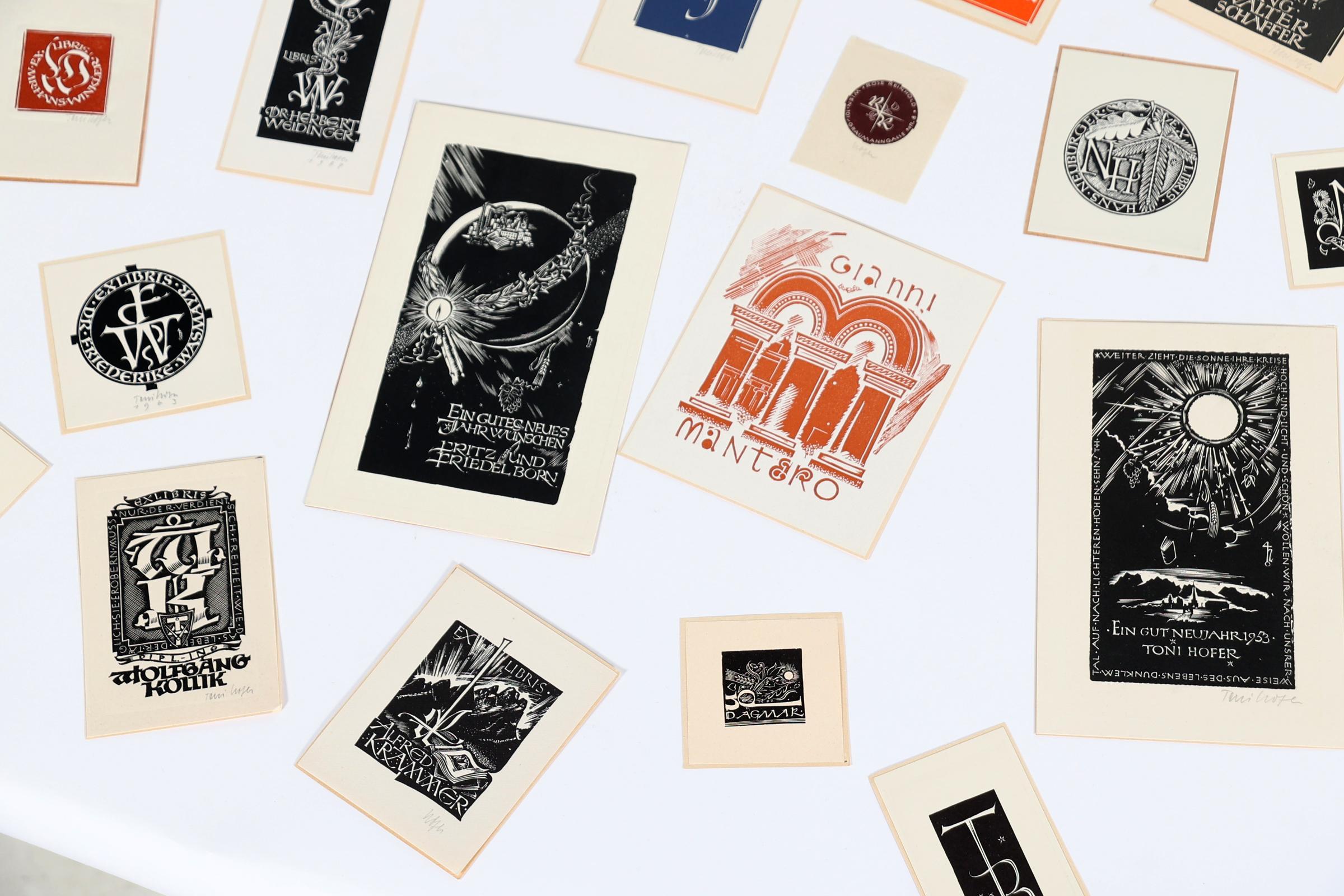 Hofer, T., 65 exlibris /kleingrafiek, X2, deels gesigneerd, deels opgeplakt