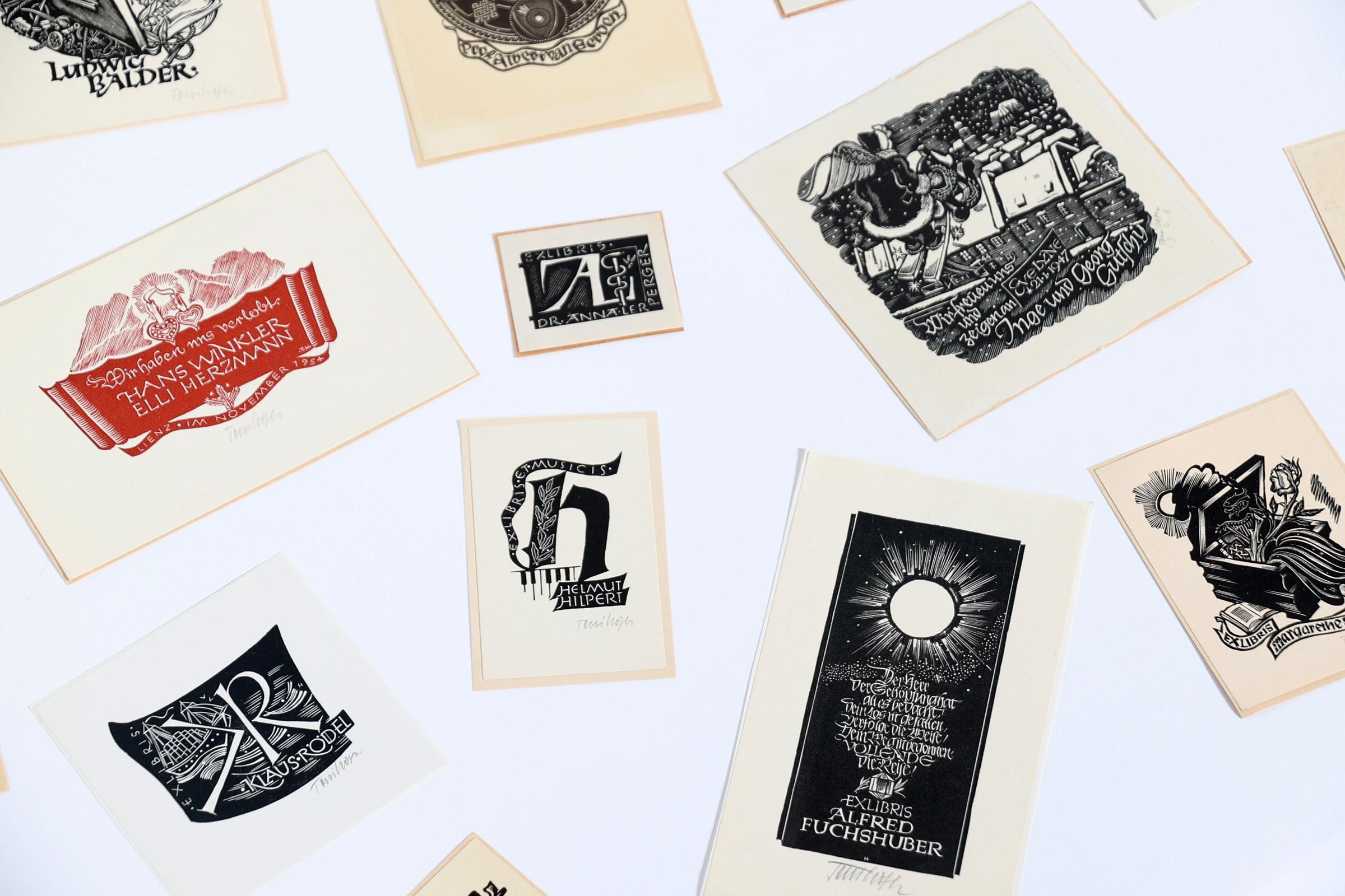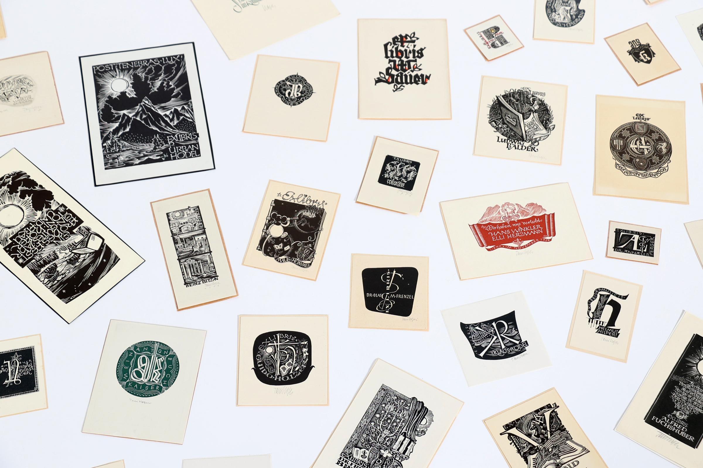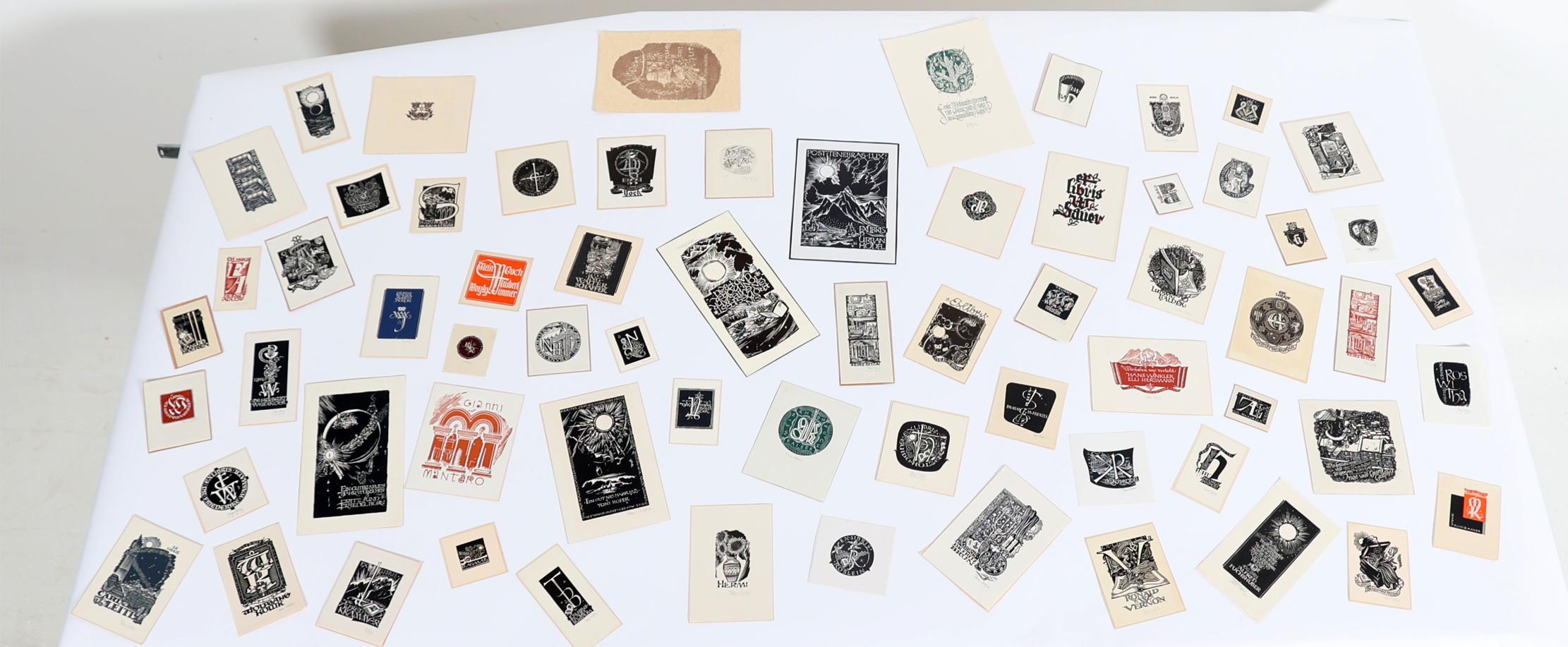 Hofer, T., 65 exlibris /kleingrafiek, X2, deels gesigneerd, deels opgeplakt