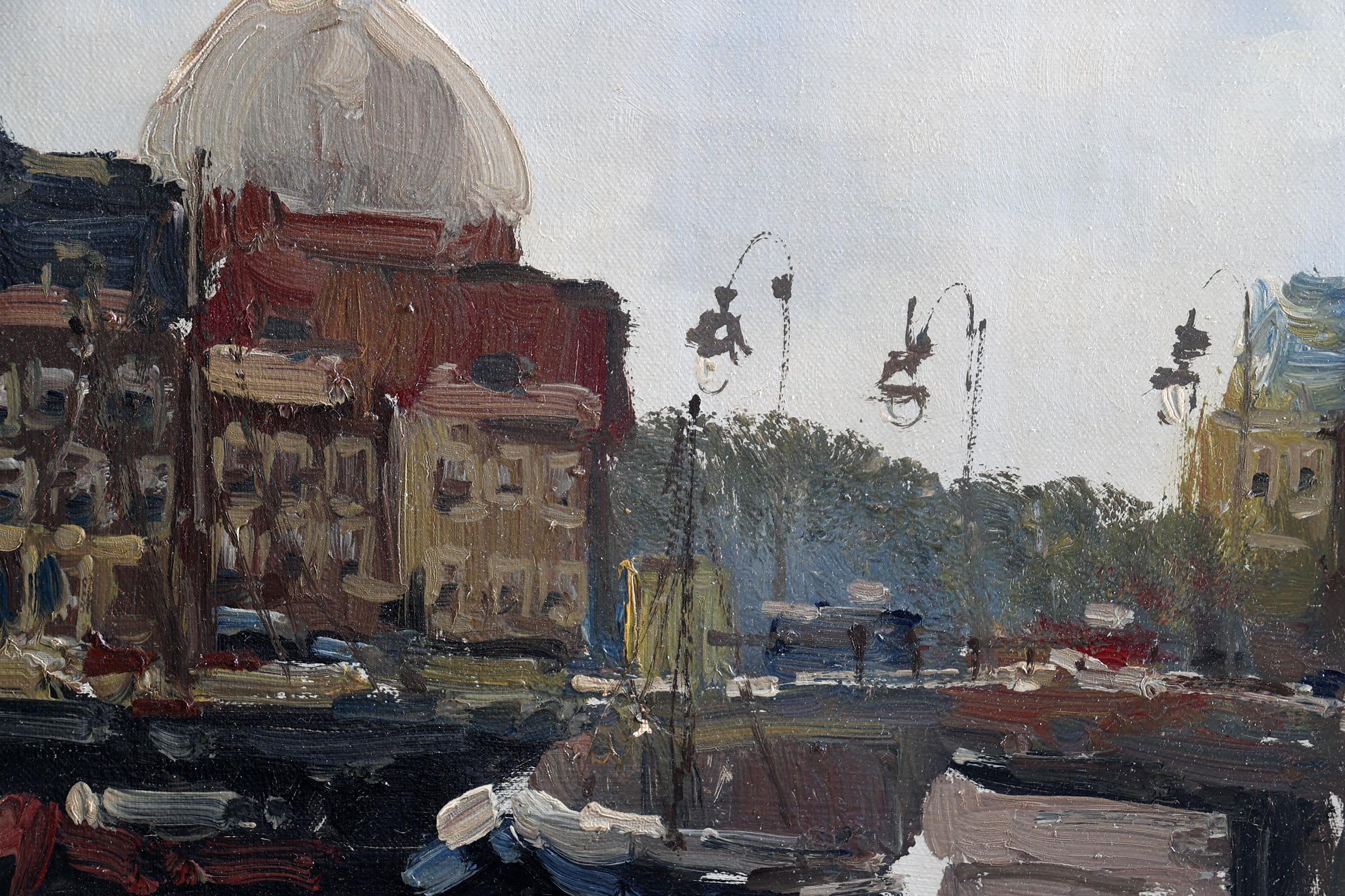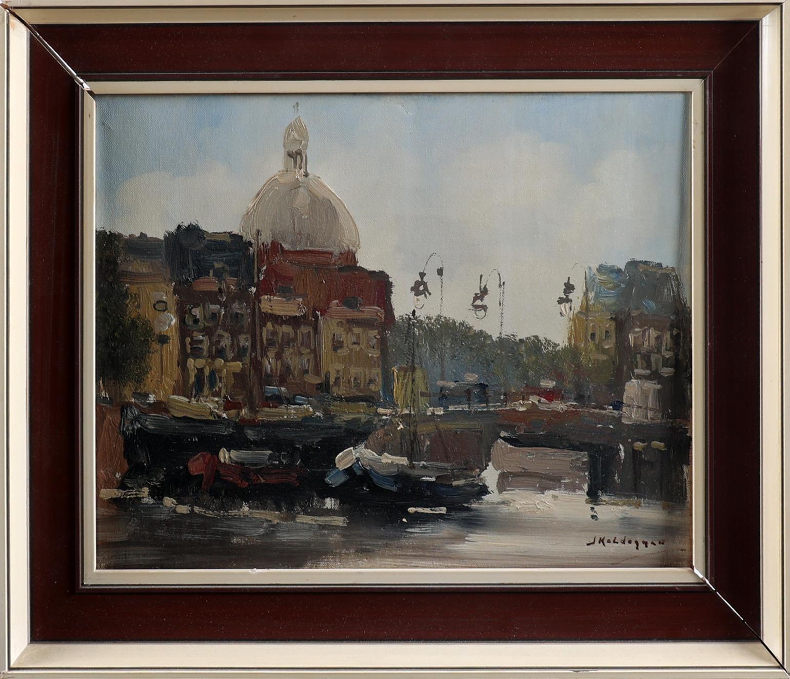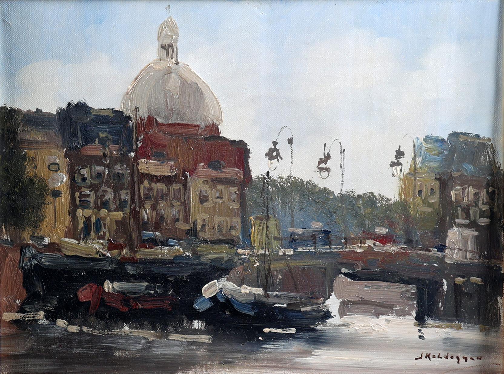 Jan Kelderman (1914-1990), Zicht op de Lutherse kerk te Amsterdam, olieverf op doek, 30 x 40 cm.