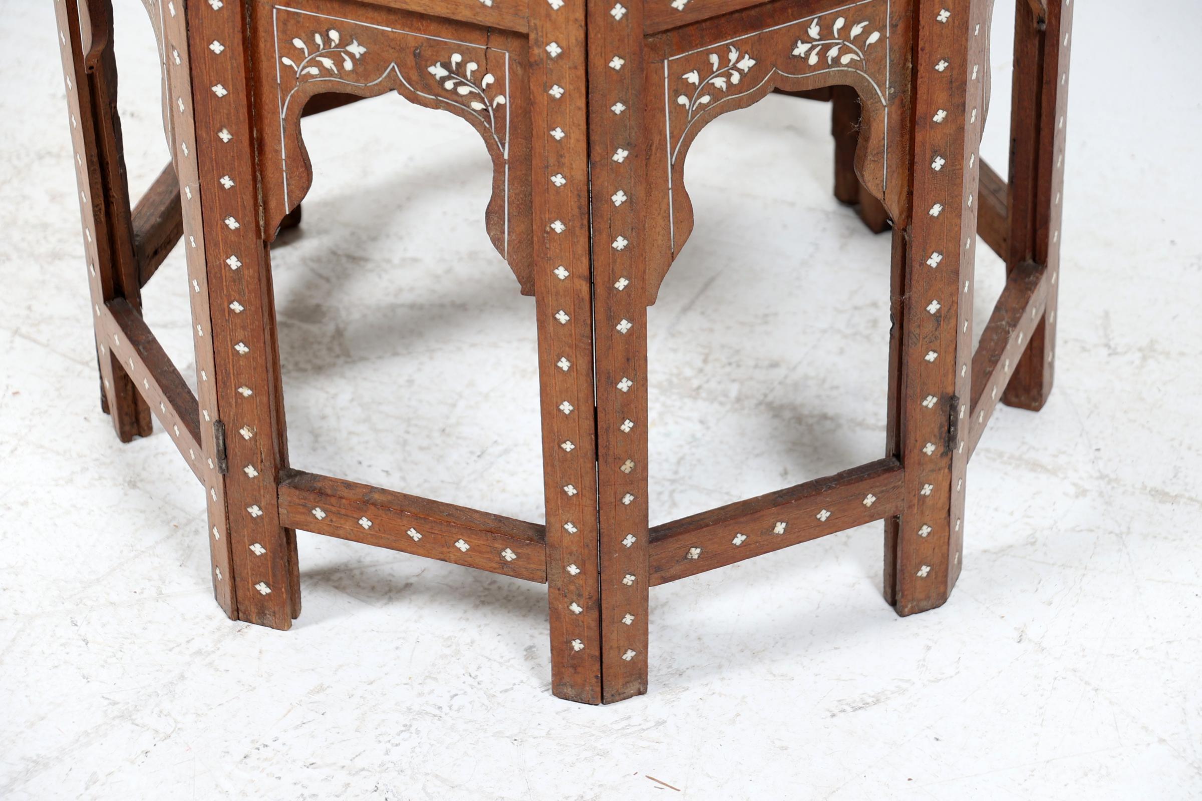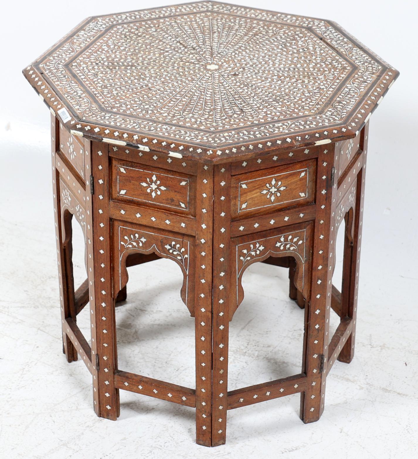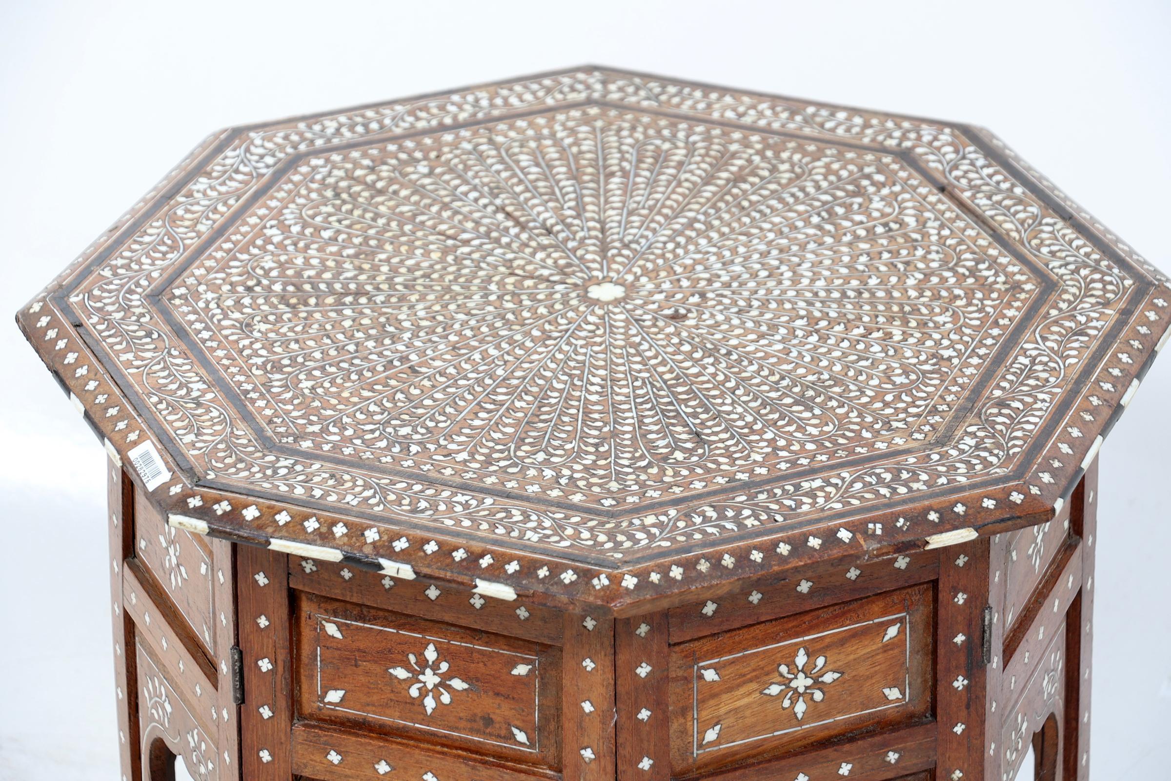 Met been ingelegde Oosterse houten bijzettafel, h.47 x b.47 x d.47 cm.