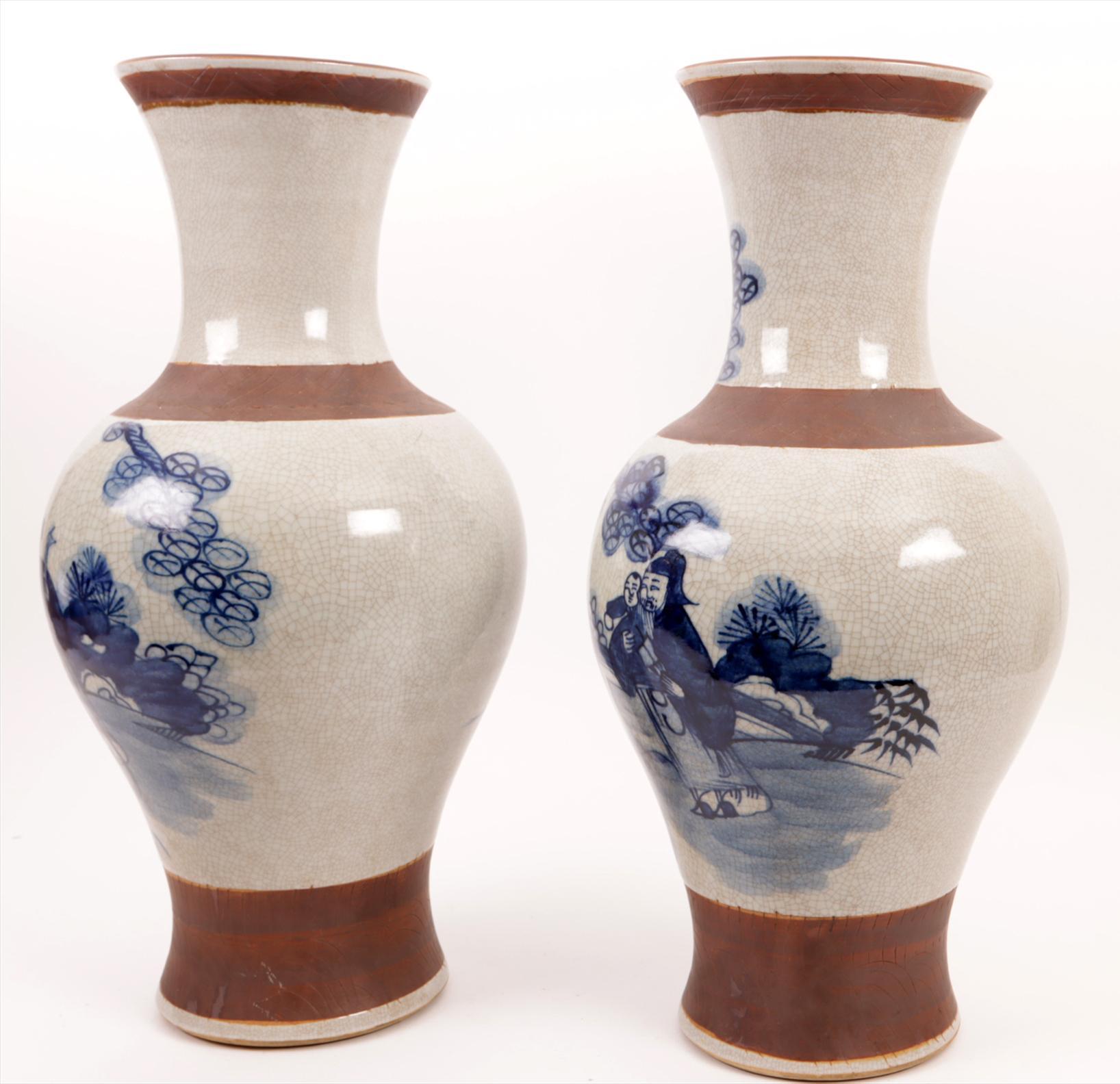 Stel Chinees porseleinen vazen met decor van personen, h.47 cm.