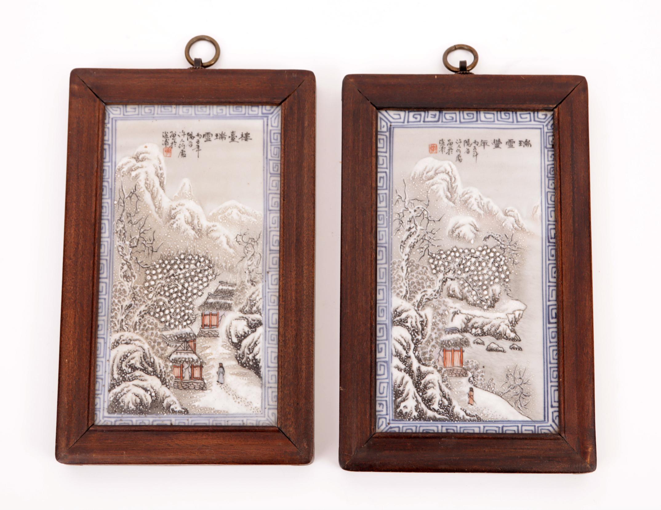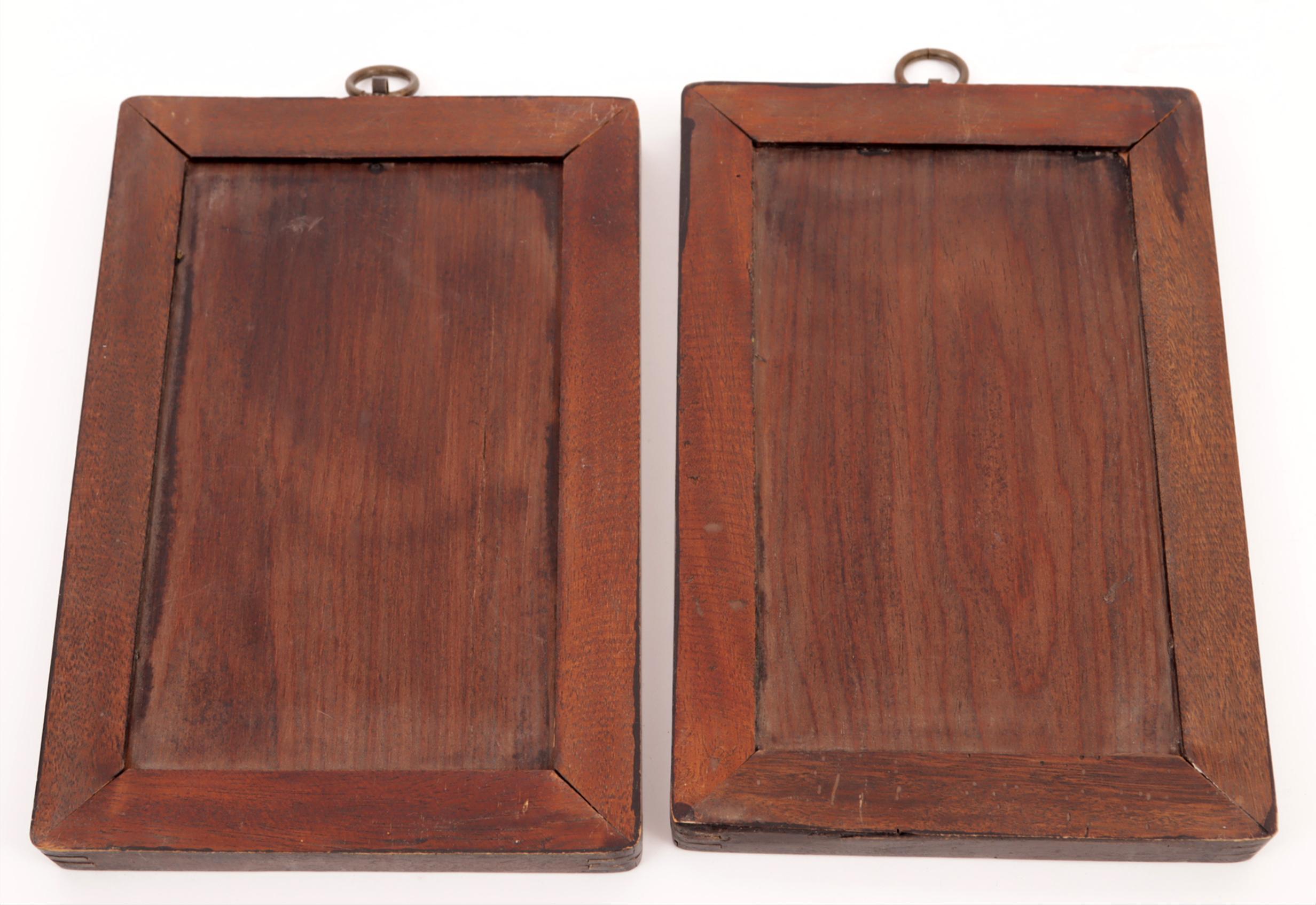 2 Chinese tegel in houten lijst, 25 x 17 cm. per stuk