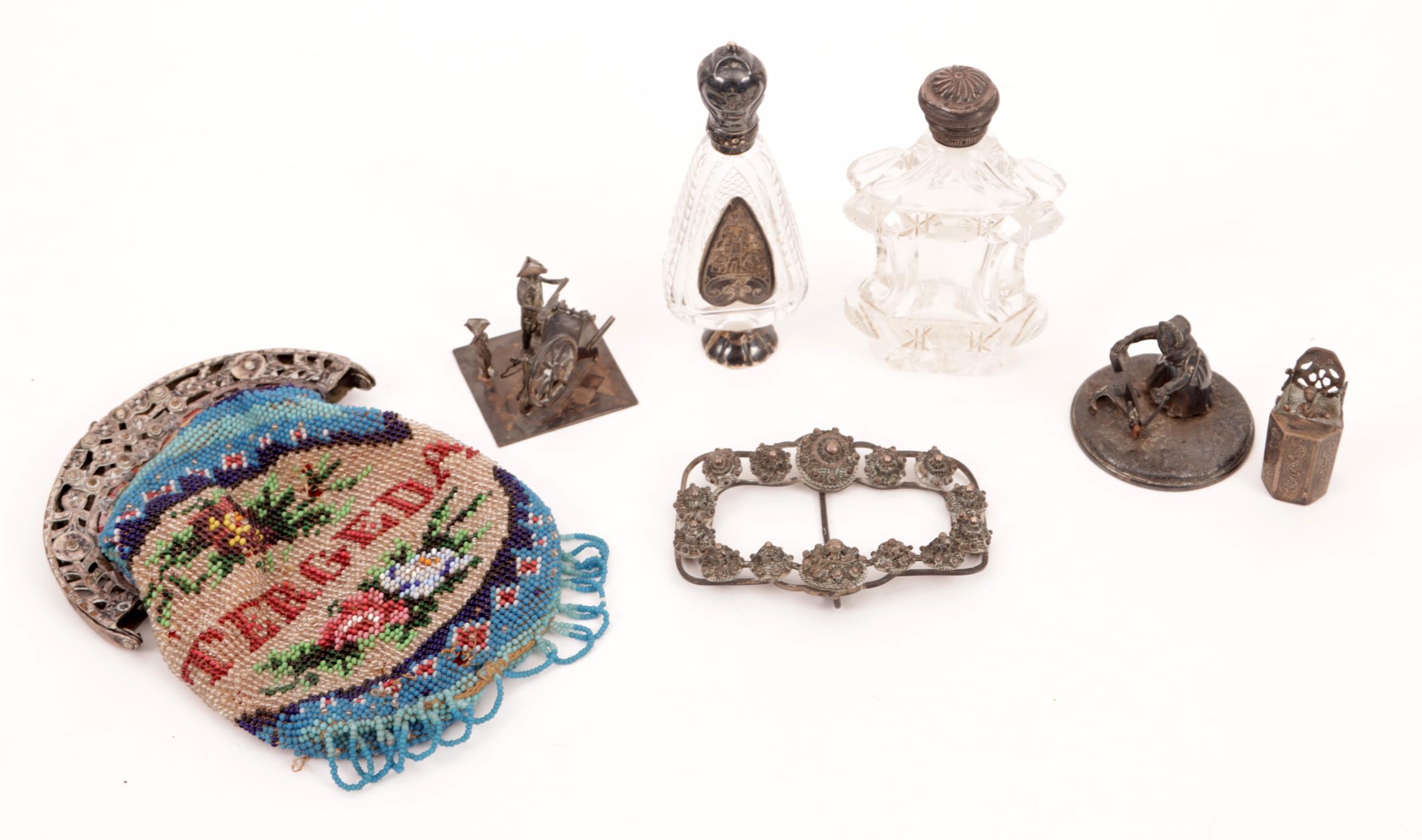 Koop divers klein zilver: Beugeltasje, 2 parfumflacons, 3 miniaturen en een gesp