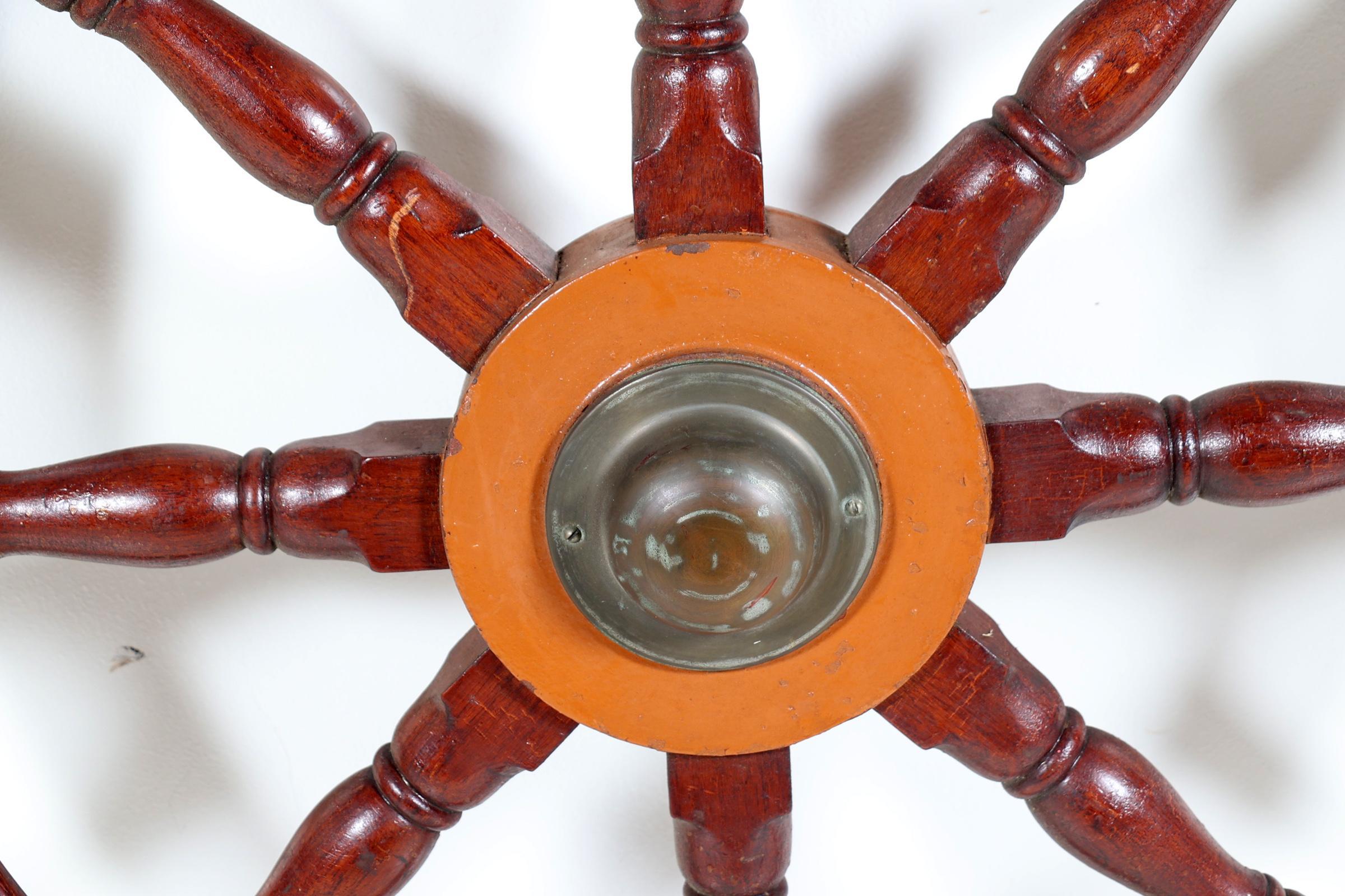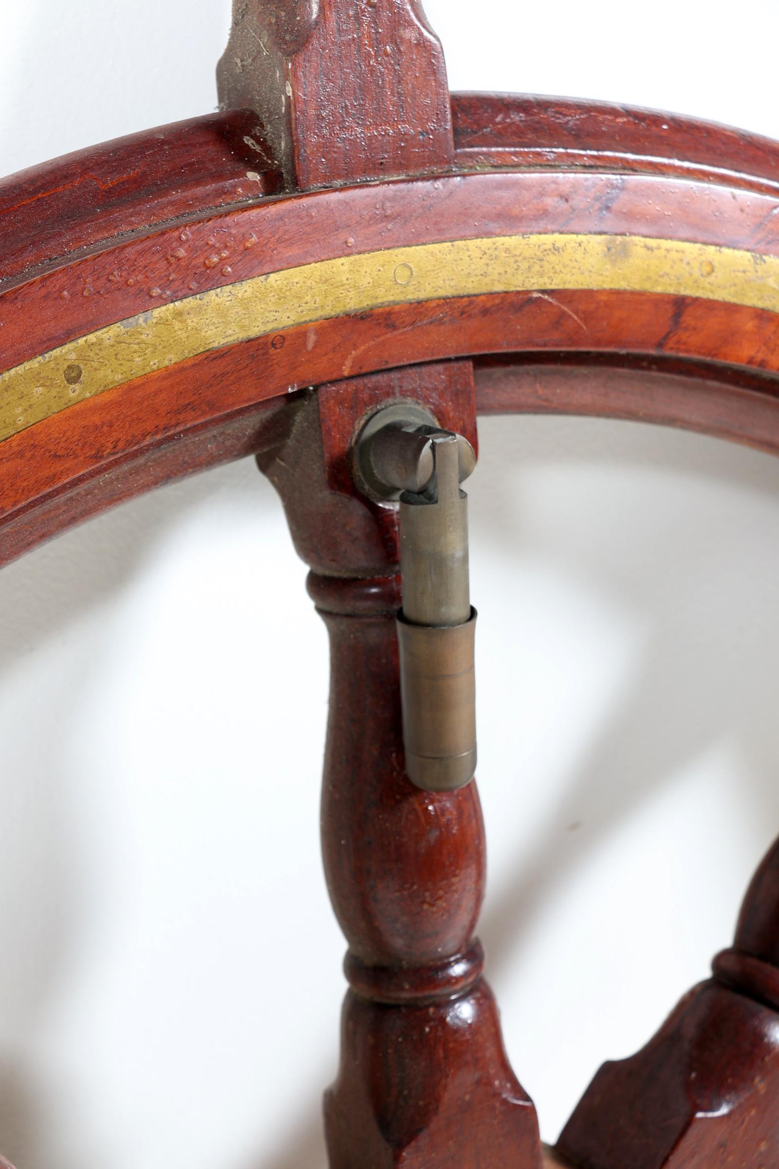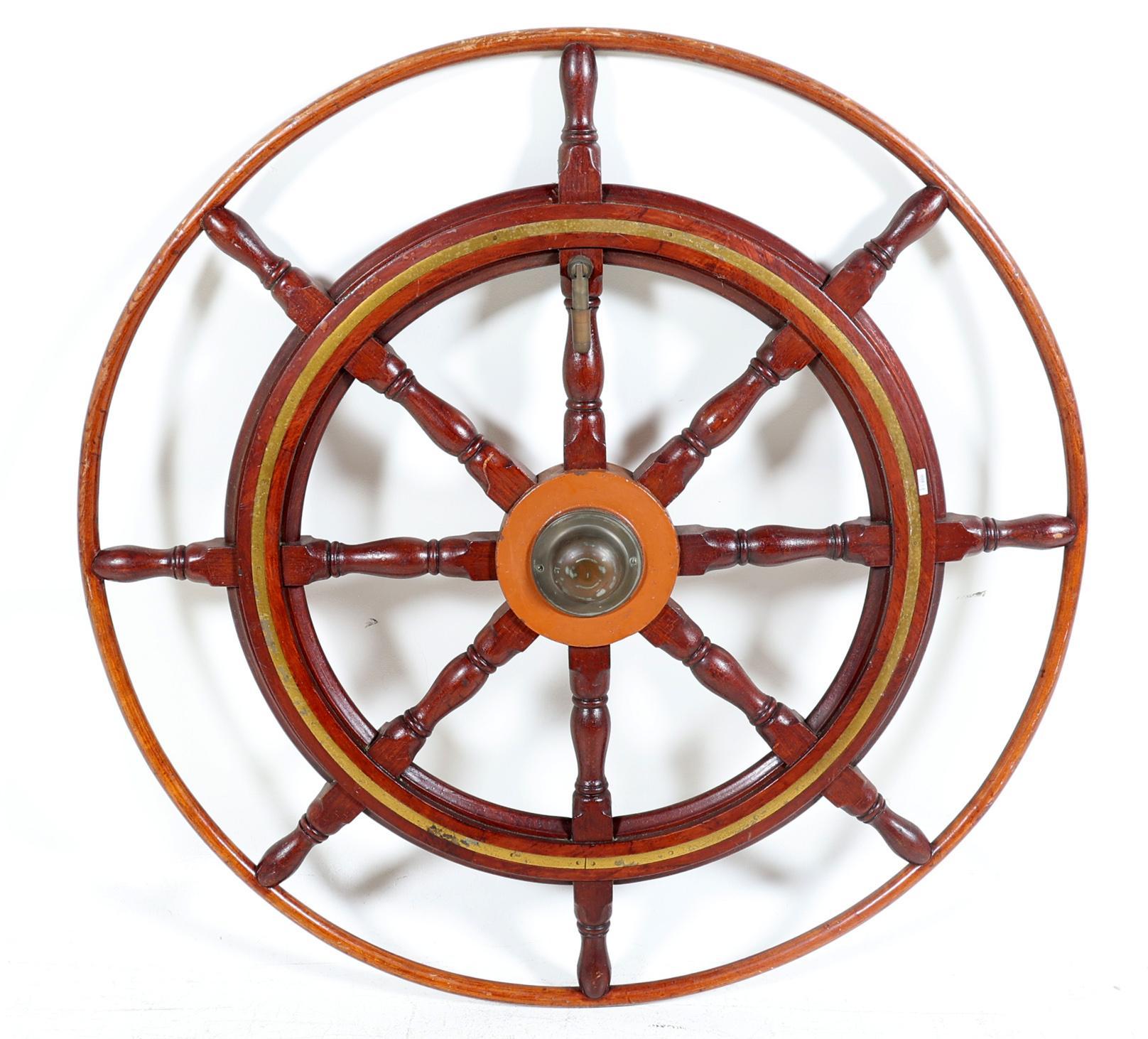 Oud houten scheepsstuurwiel, diam.130 cm.