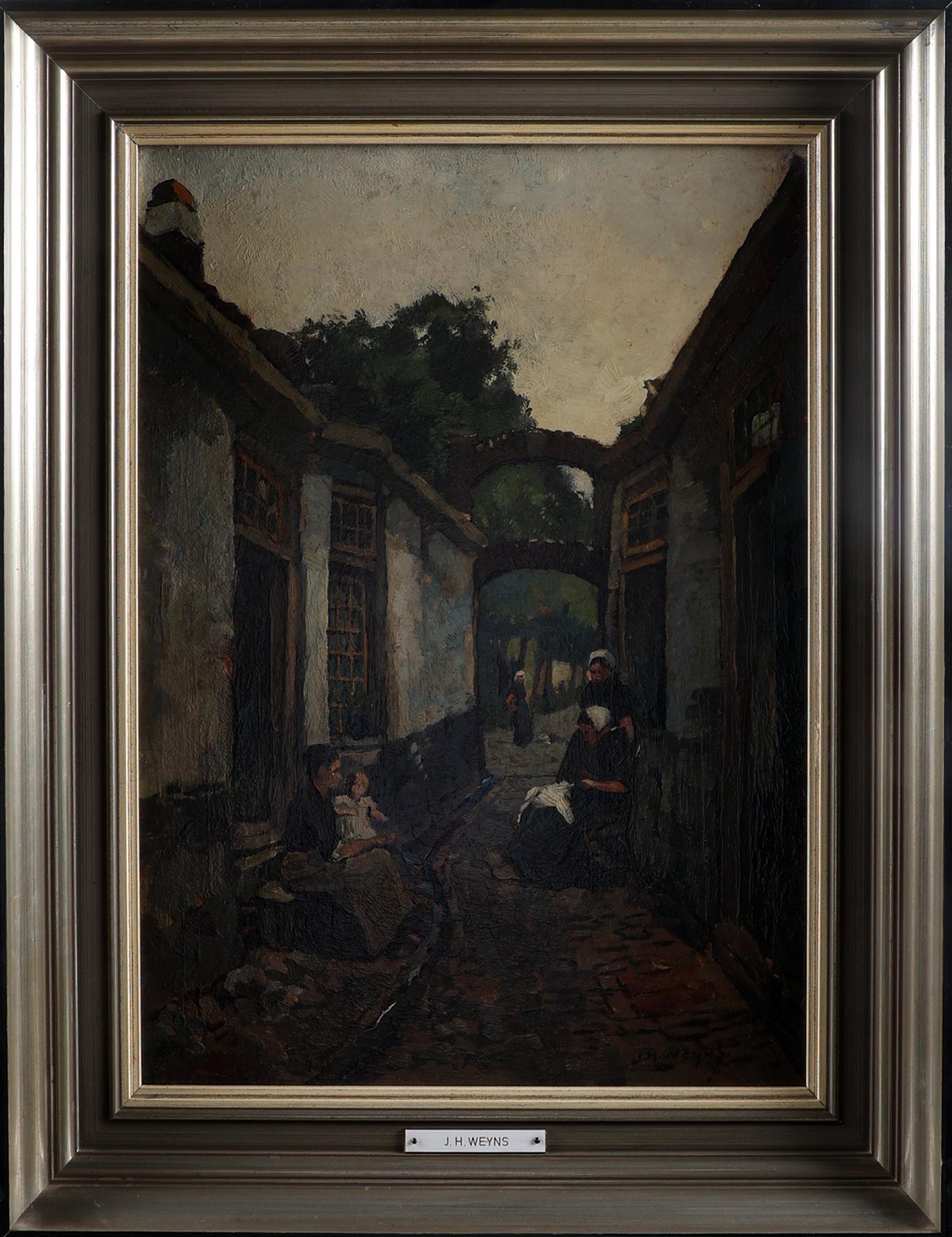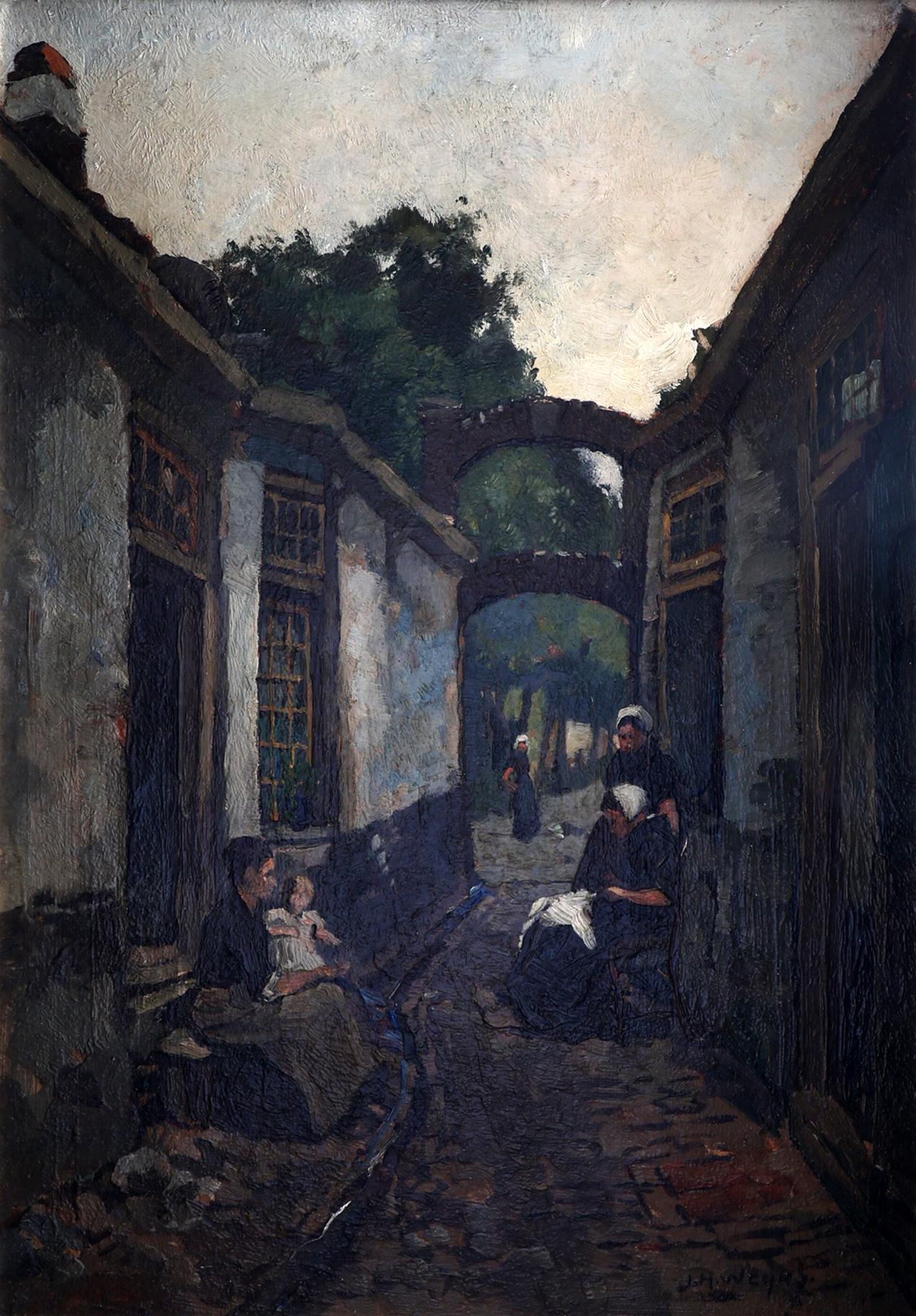 Jan Harms Weyns (1864-1945), Straatje met personen, olieverf op board, 45 x 33 cm.