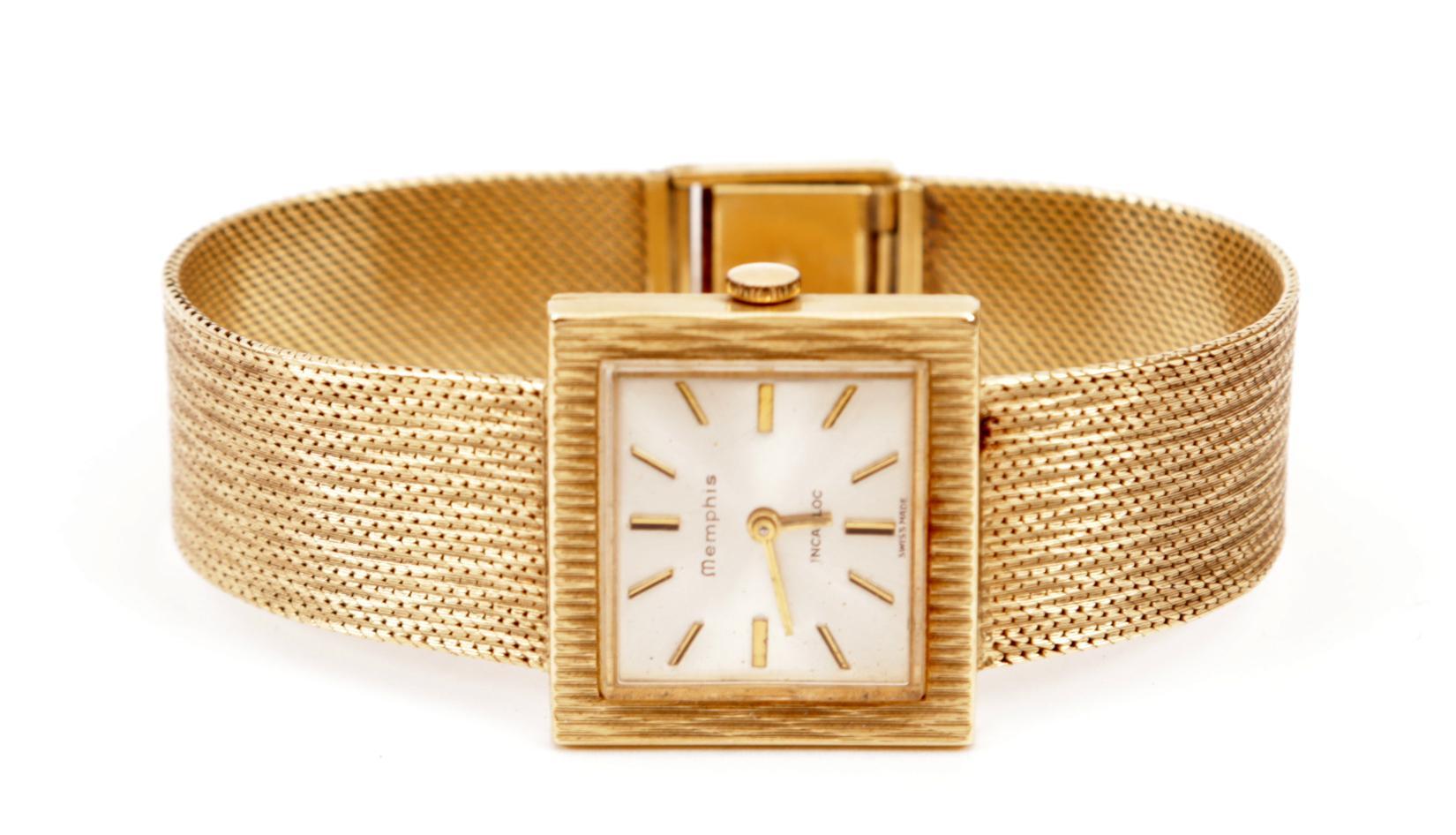 Memphis, Vintage polshorloge in 14 kt. gouden kast met 14 kt. gouden band, 46 gram