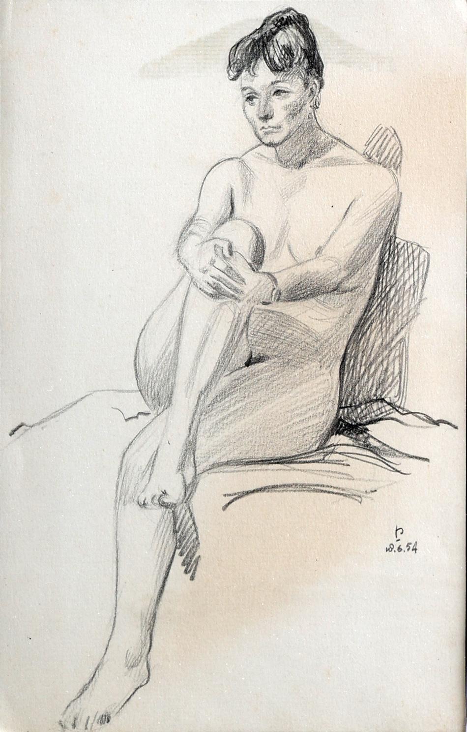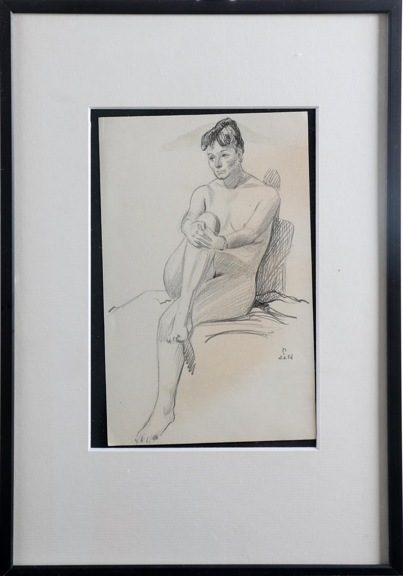 Monogram P, Vrouwelijk naakt, potloodtekening, 14 x 21 cm.