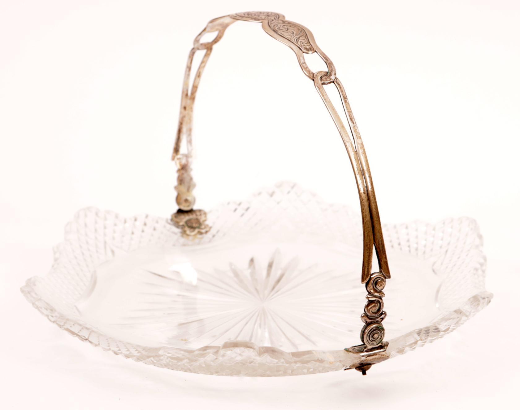 Kristallen schaal met 2e gehalte zilveren beugel, diam.26 cm.