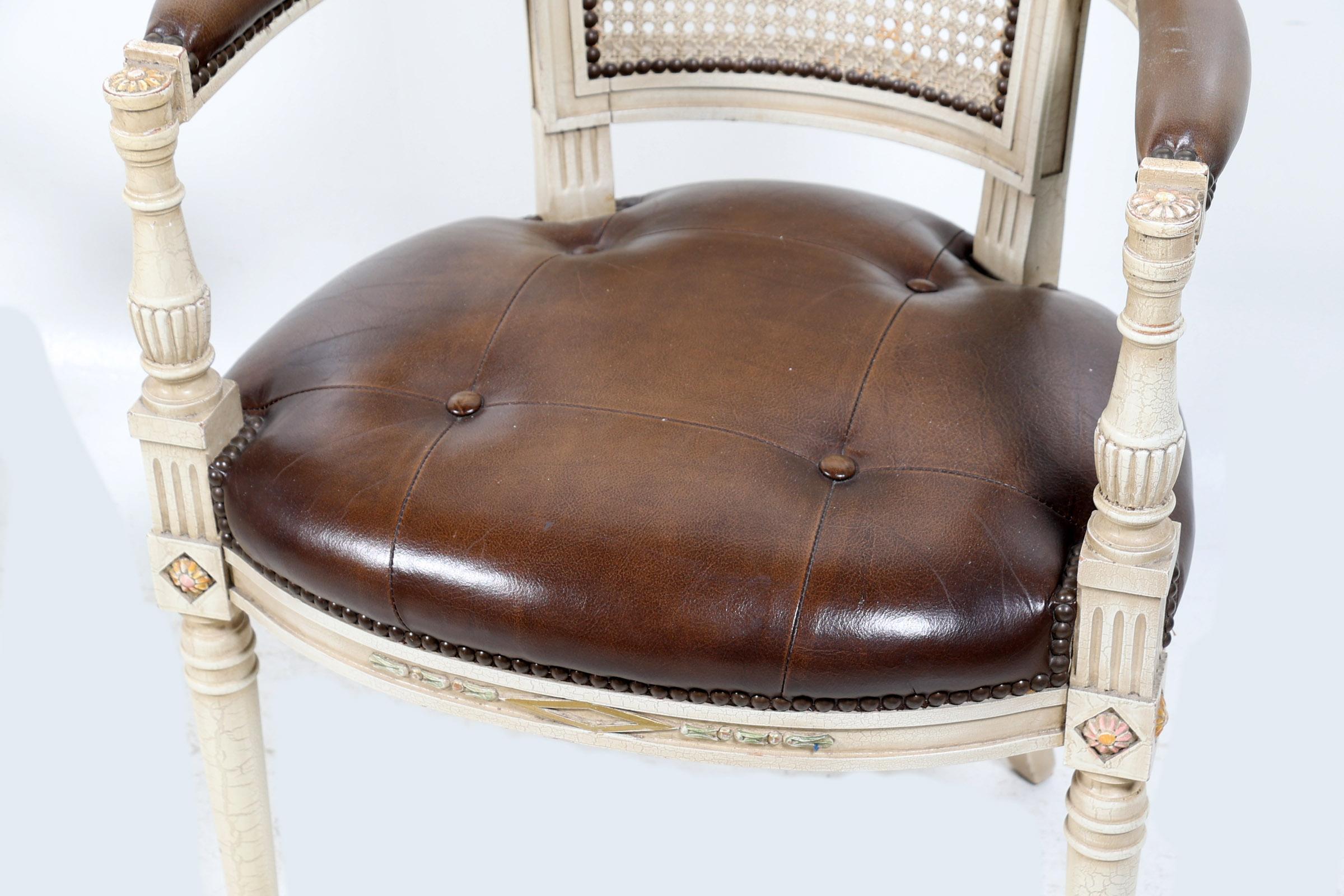 2 Met bruin leder beklede laké louis Quinze-stijl armstoelen