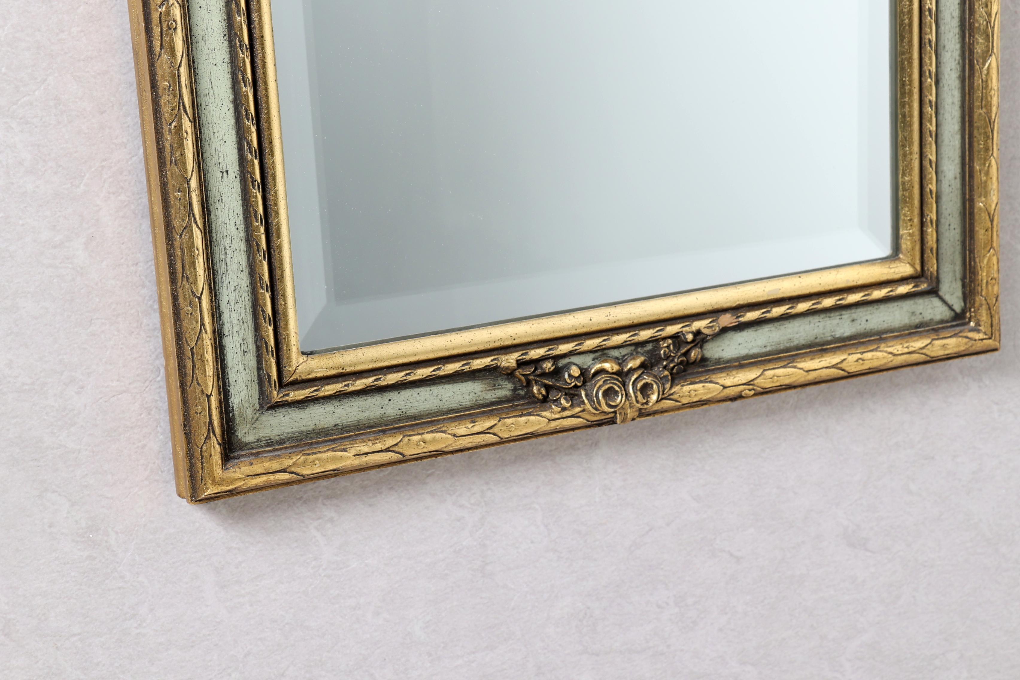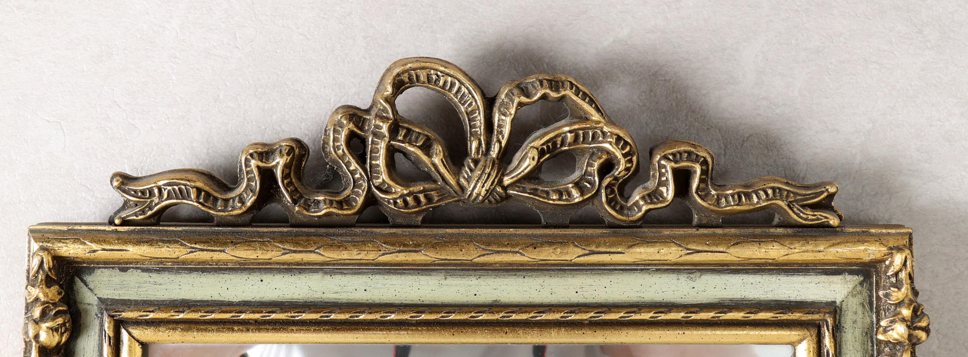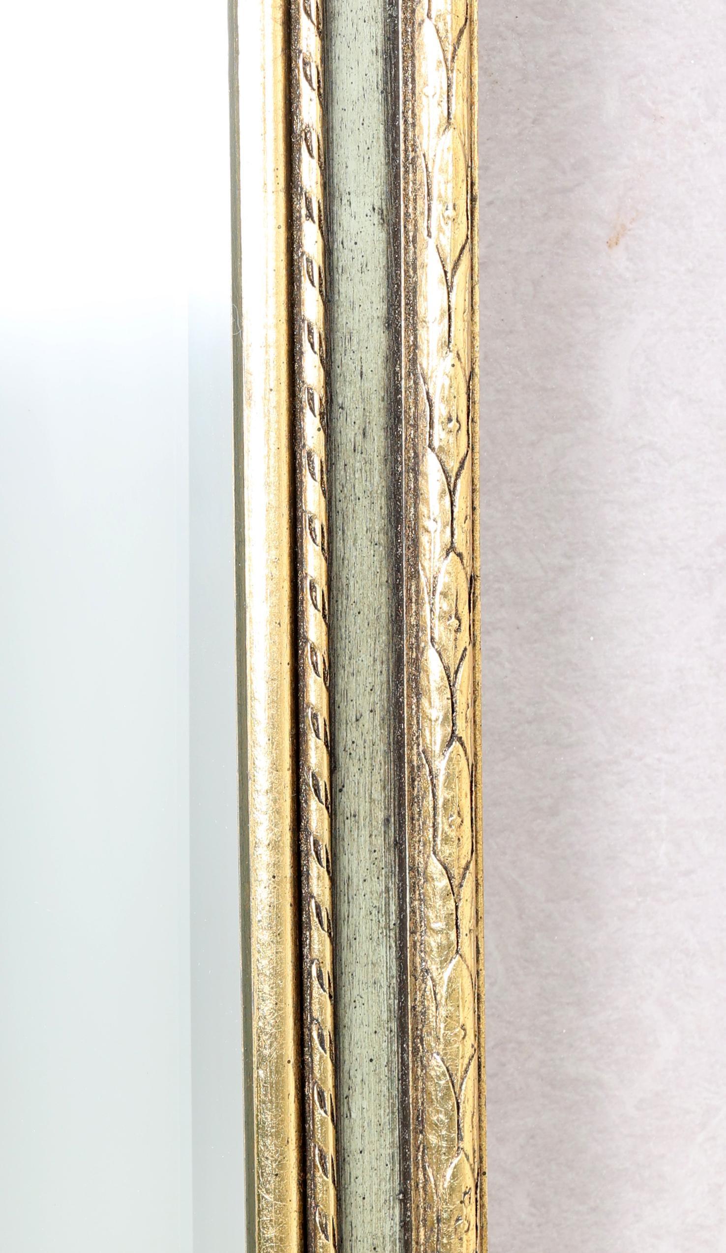 Geslepen spiegel in opengewerkte kuif/striklijst, h.136 x b.36 cm.