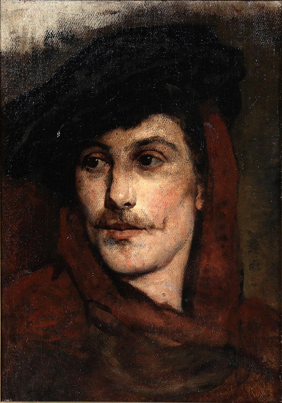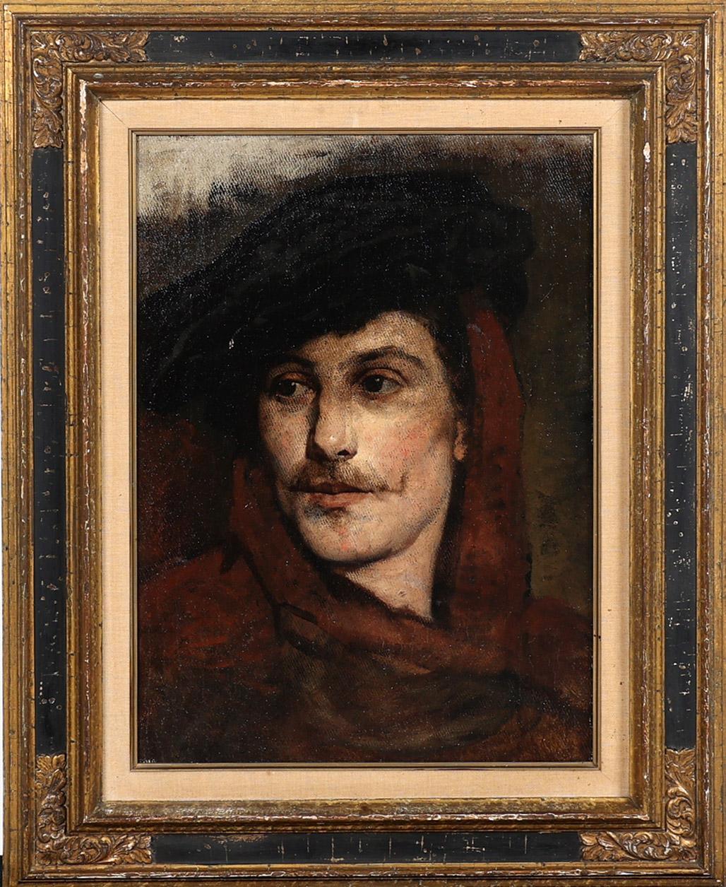 Toegeschreven aan Anselm Feuerbach (1829-1880), Portret van een man, olieverf op board, 46 x 33 cm.