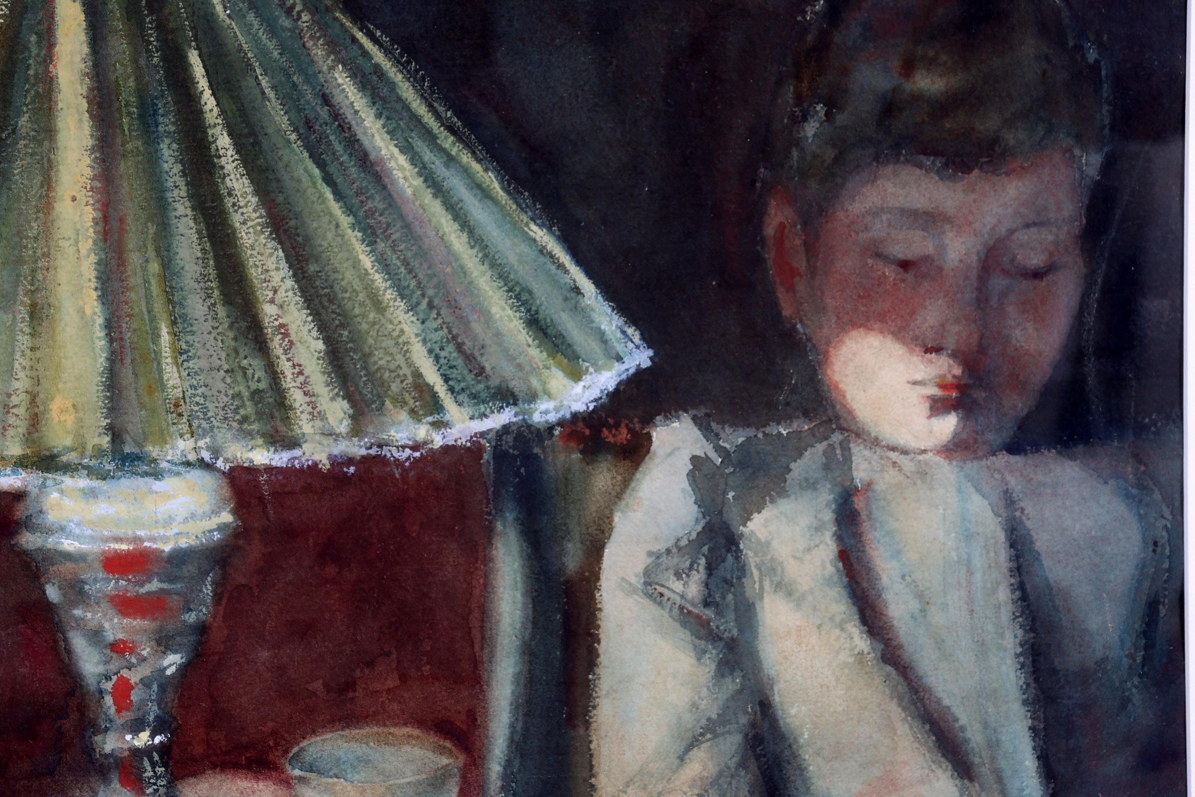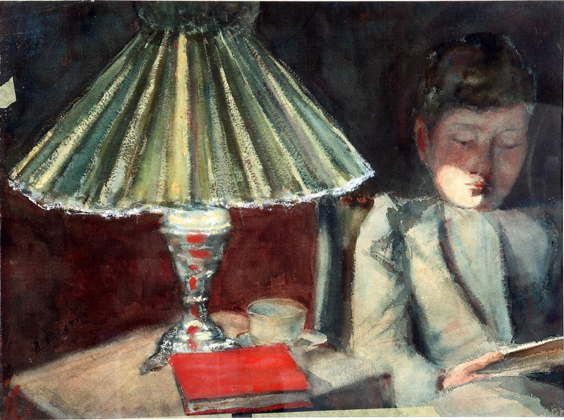 Else Carla (Els) Boone (1943), Lezende vrouw met lamp, aquarel, 60 x 41 cm.