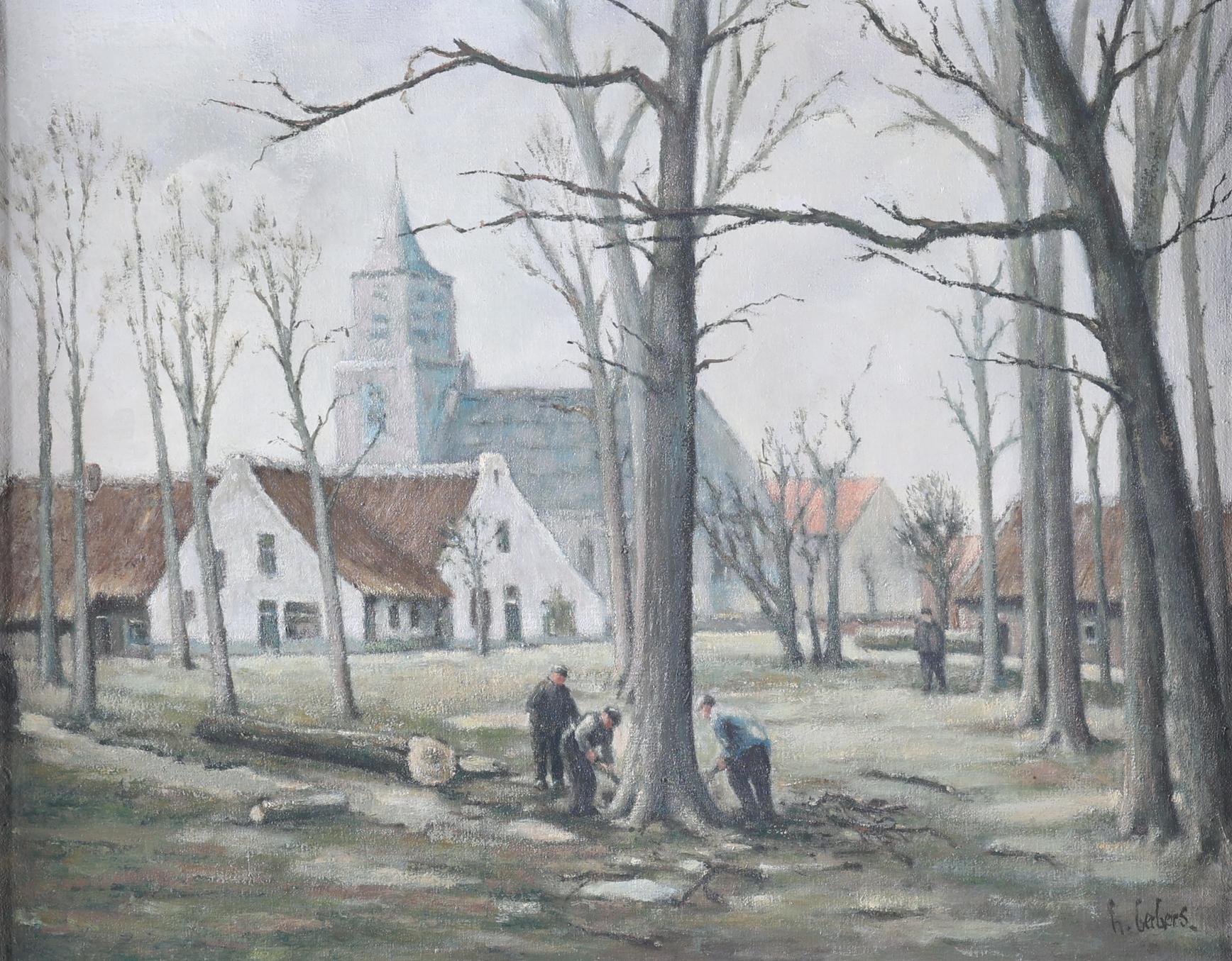 H. Berbers, Zicht op de Brink te Laren, olieverf op doek, 40 x 50 cm.