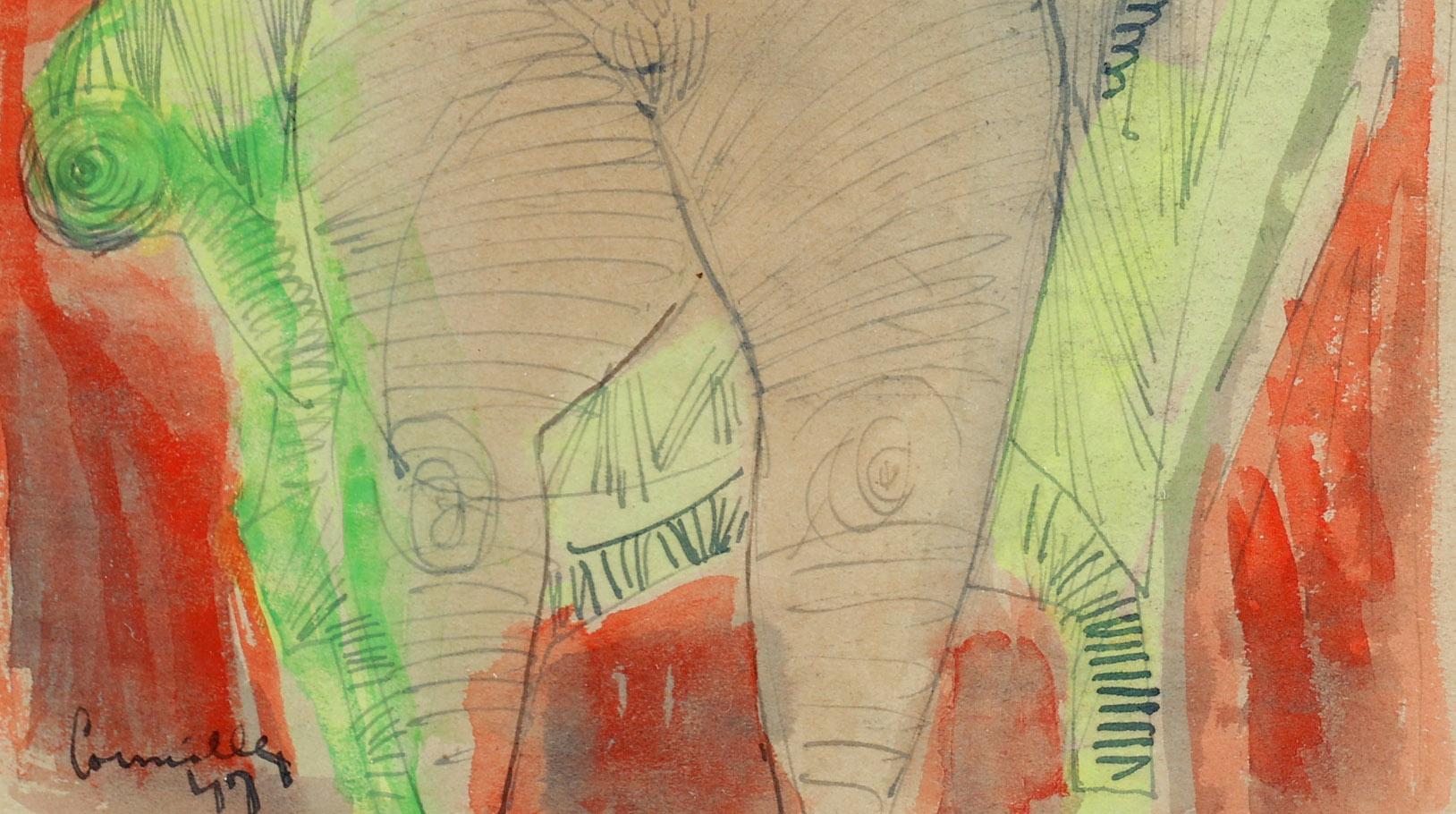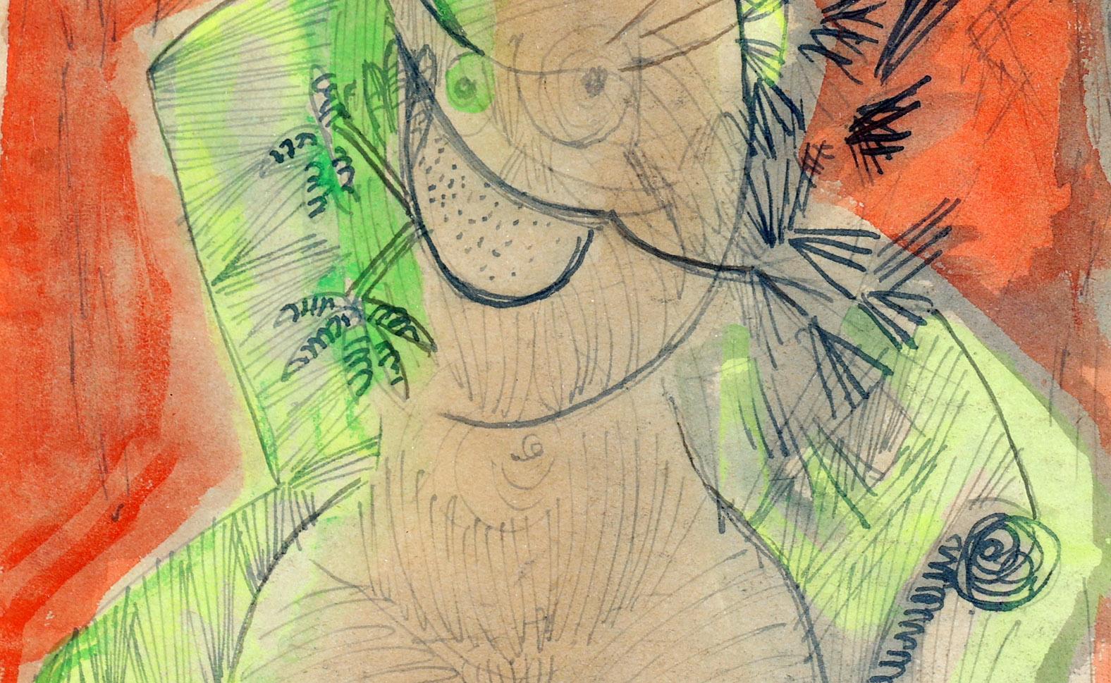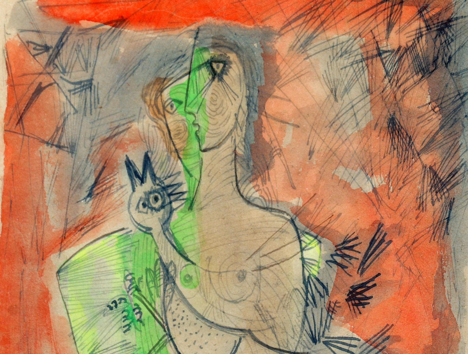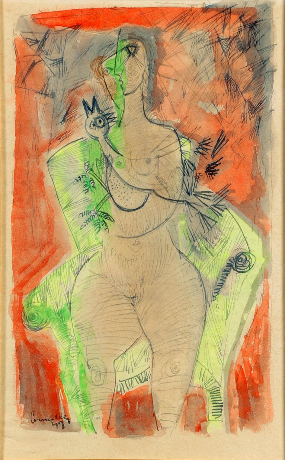 Guillaume Cornelis 'Corneille' van Beverloo (1922-2010), Vrouwelijk naakt met haan, gouache, 30 x 18 cm. of 80 x 65 cm. Provenance: collectie Elisabeth den Bieman de Haas, Amsterdam