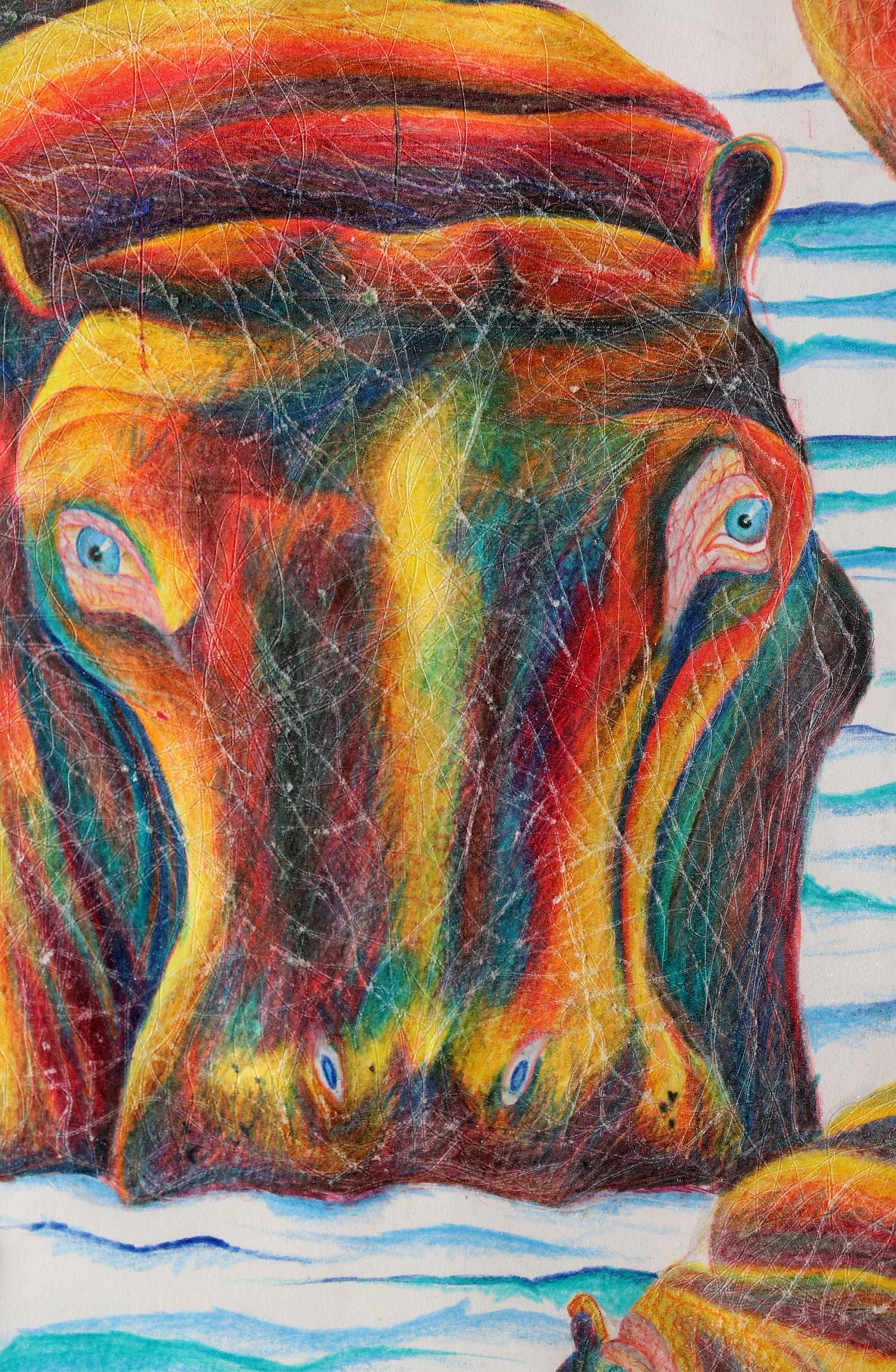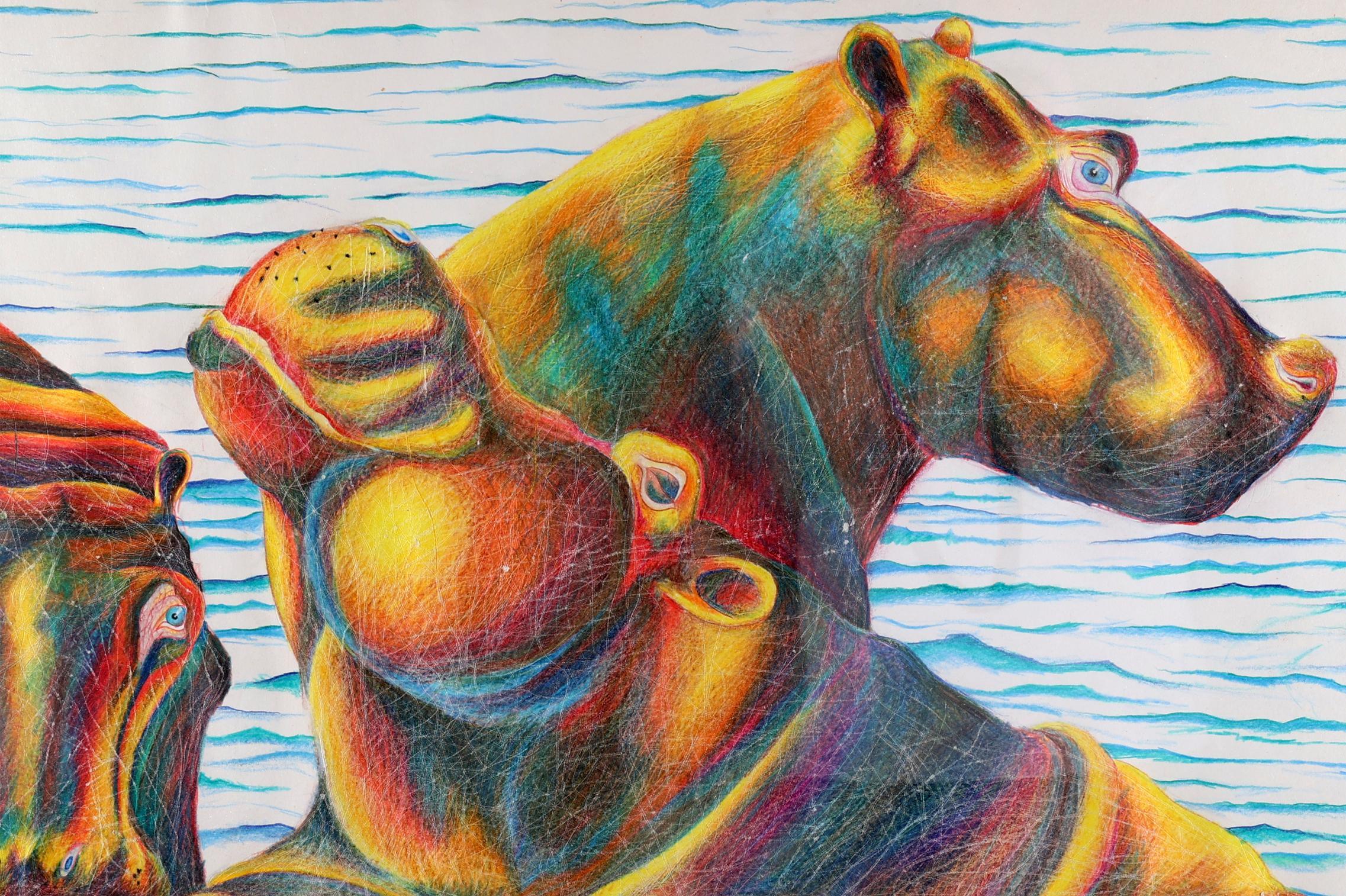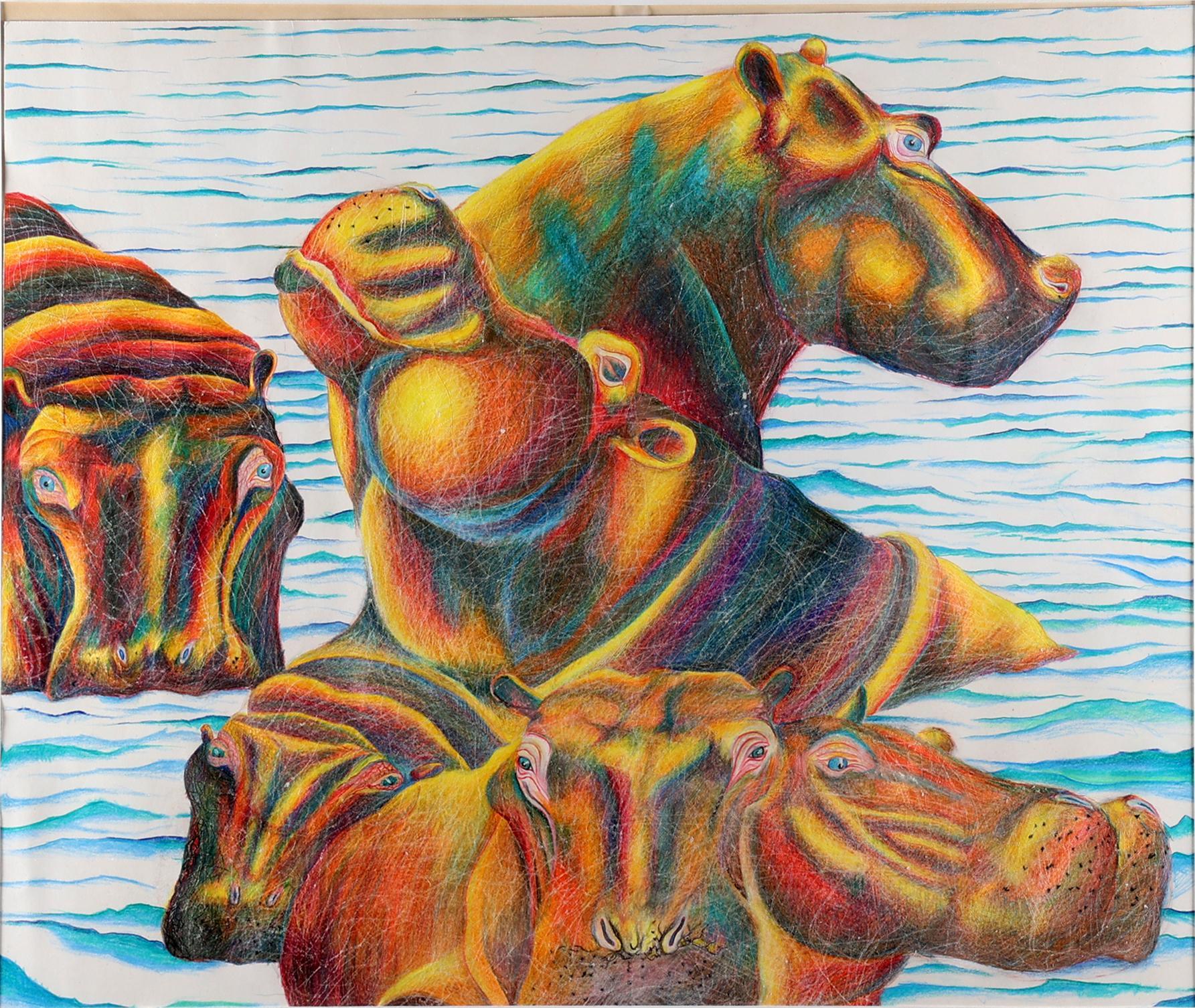 Onb. meester, Nijlpaarden. krijttekening, 59 x 70 cm.