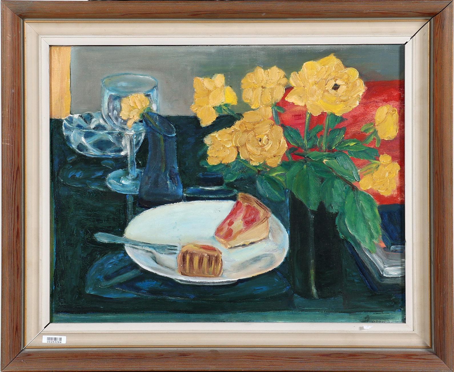 Toegeschreven aan André Schaller (1920 - 1981), Stilleven met gele rozen, olieverf op doek, 39 x 49 cm.
