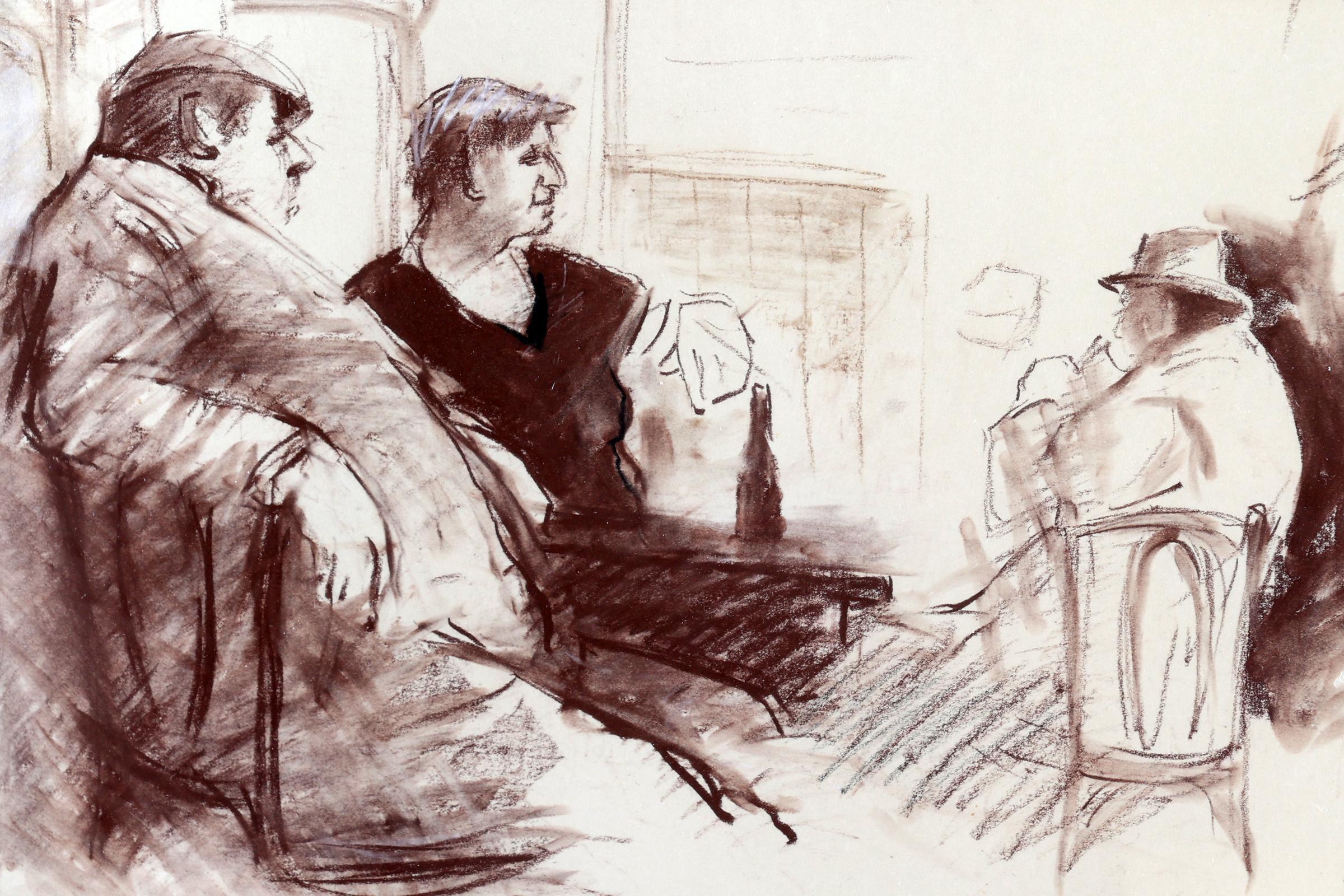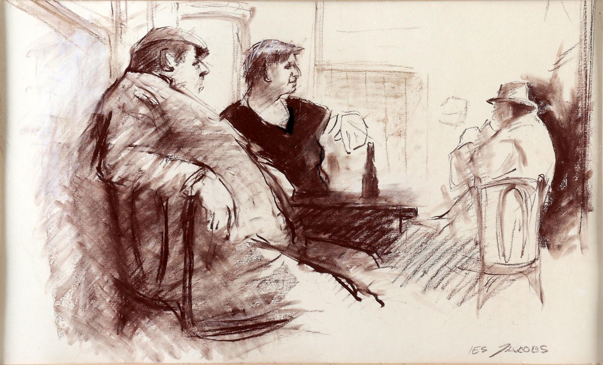 Isaac 'Ies' Jacobs (1918-2011), Personen in de kroeg, aquarel/krijttekening, 25 x 41,5 cm.