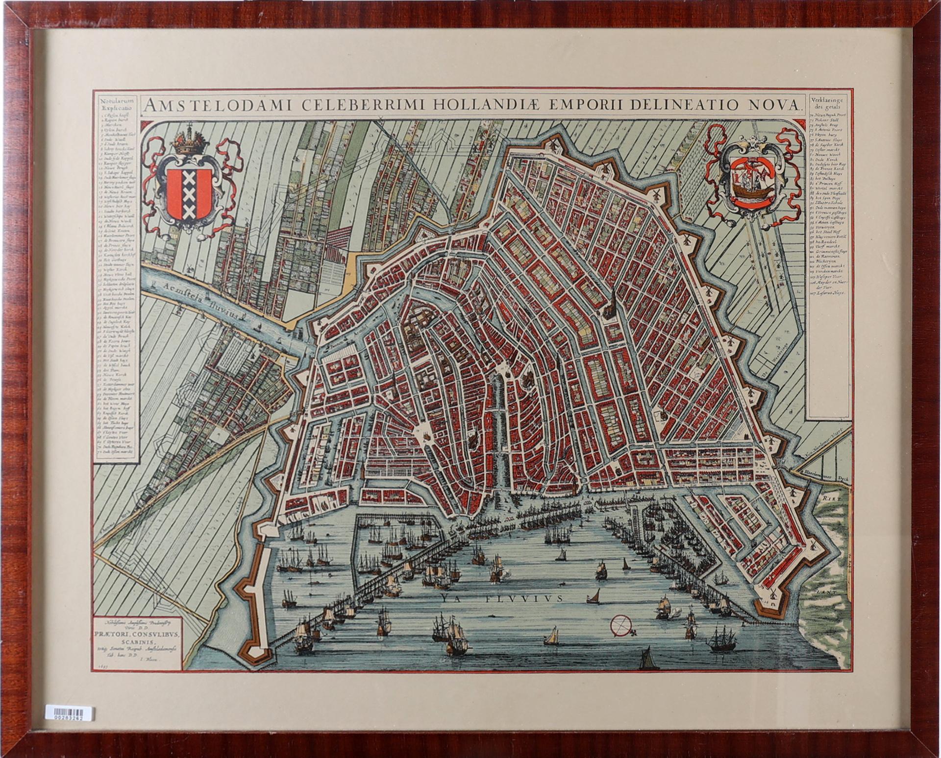 Lithografie van de stad Amsterdam, 49,5 x 61,5 cm.