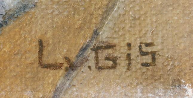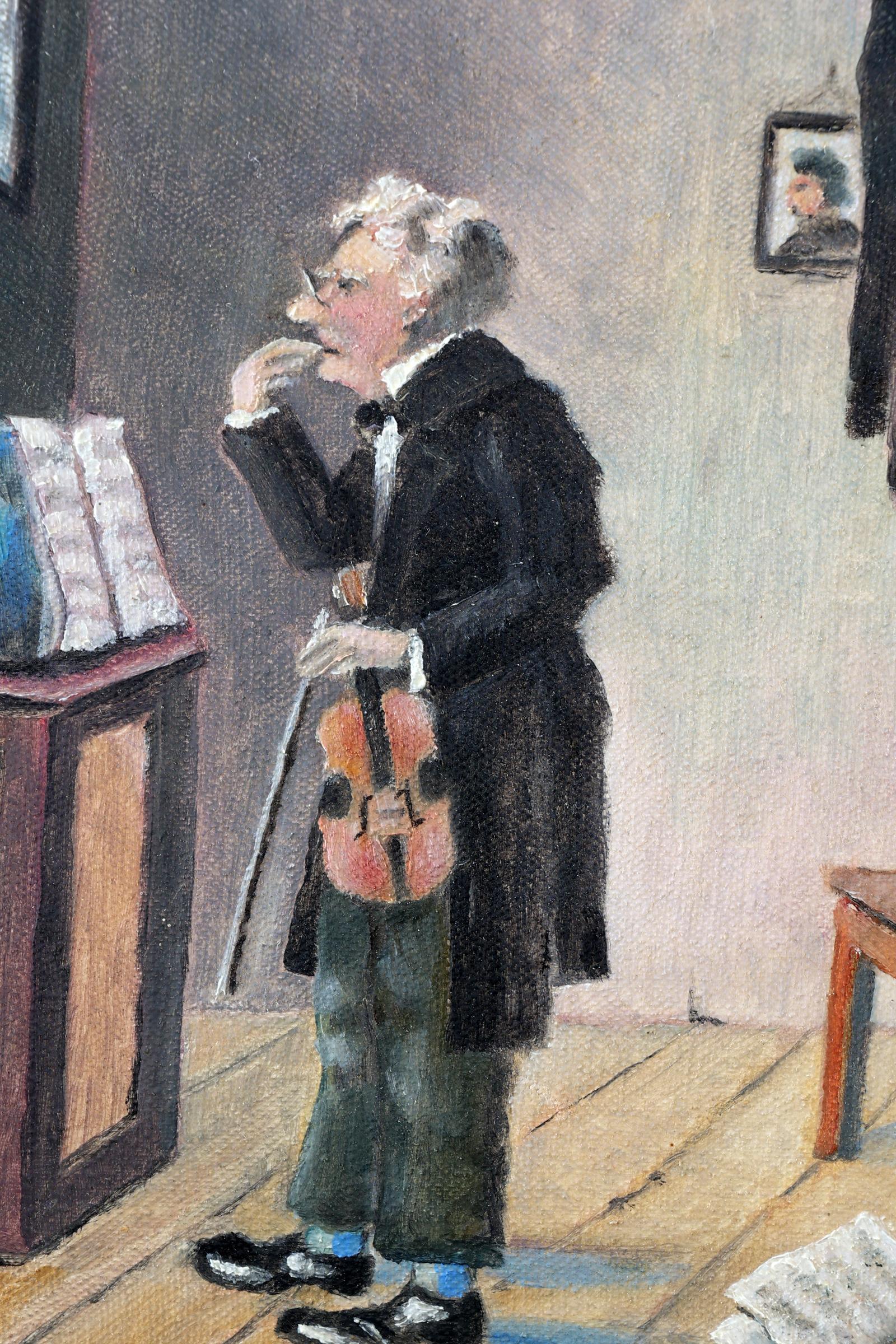 L. van Gis, Vioolspeler in interieur, olieverf op doek, 24,5 x 18 cm.