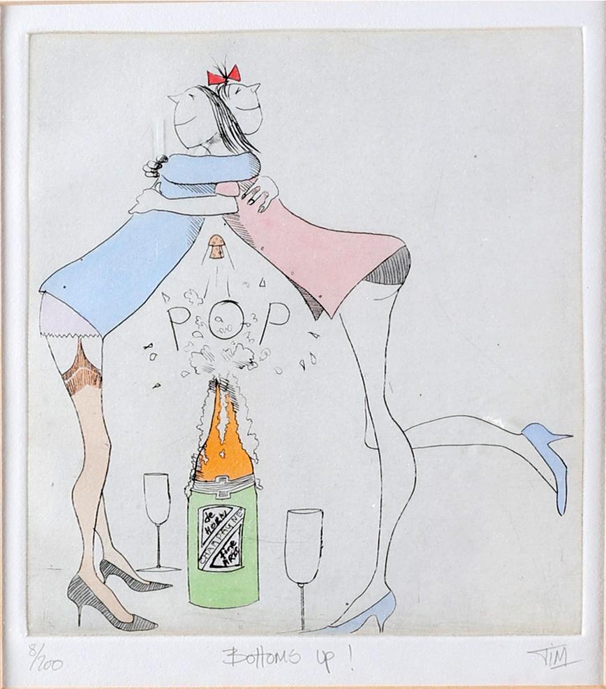 Tim Bulmer (1958), Bottoms up!, handgesigneerde kleurenets, genummerd 8/200, 22,5 x 20 cm.