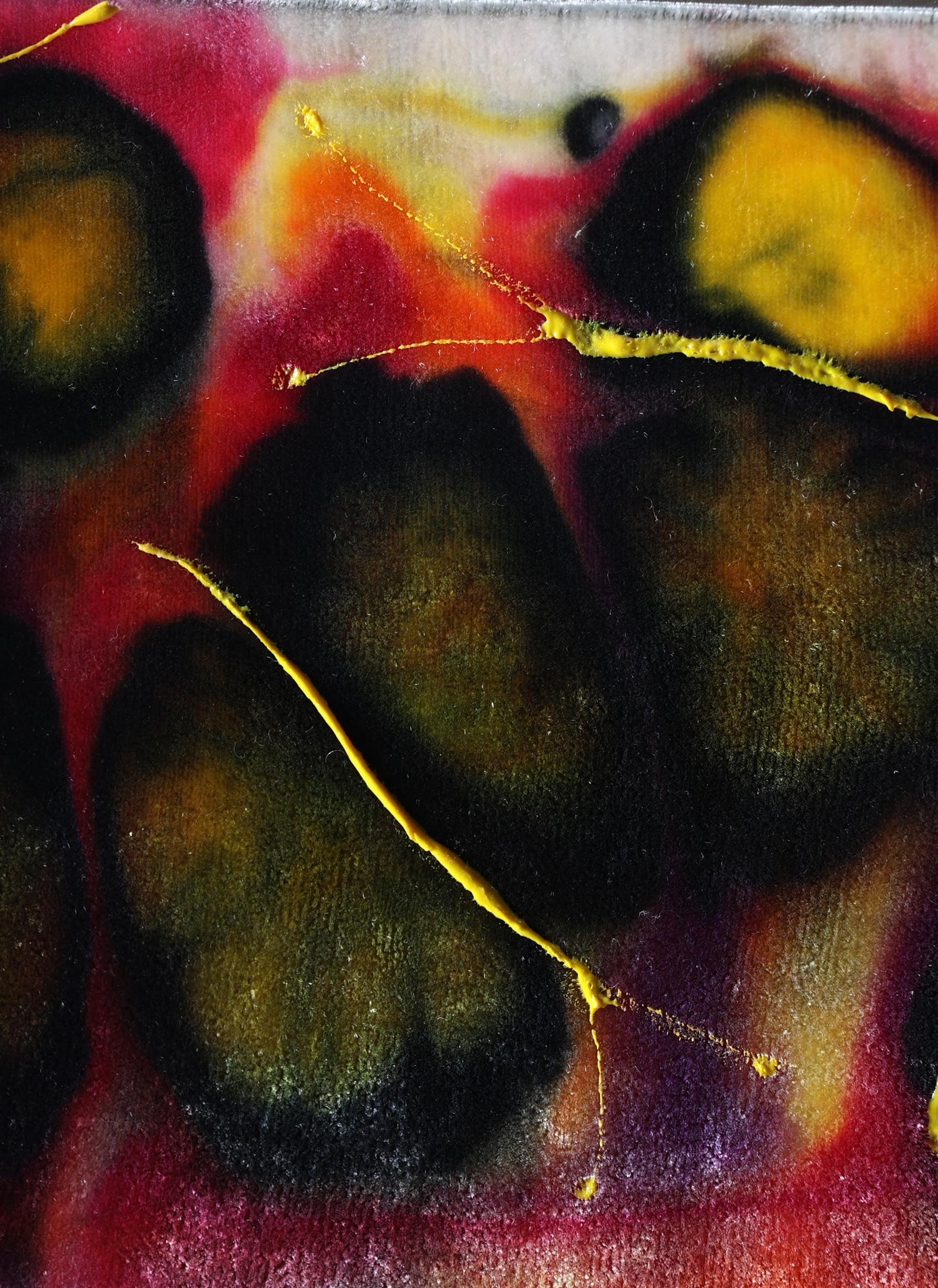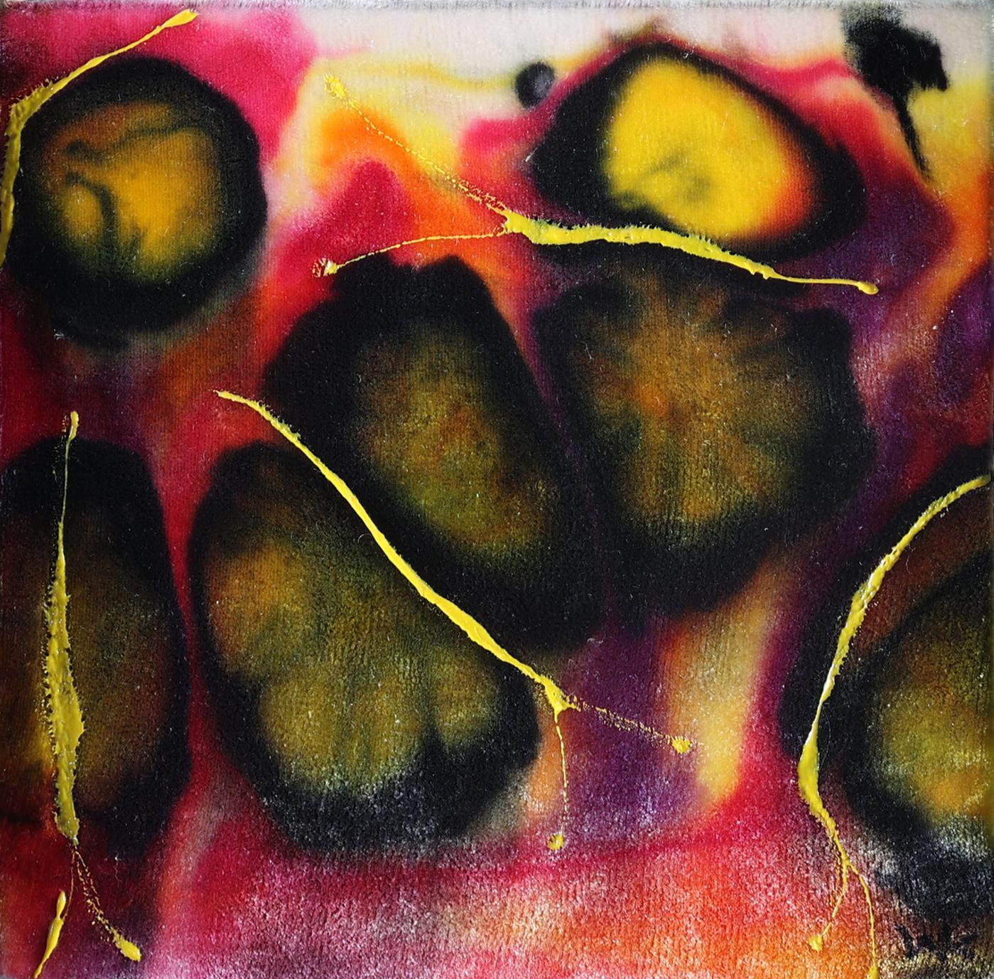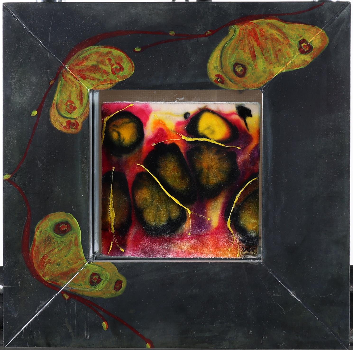 Will Kellerman (1945), Abstract met vlinders, gemengde techniek, 40 x 40 cm. (inclusief lijst)