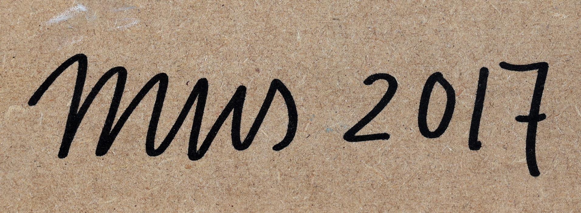 Mus Richter, Abstract met persoon, acryl op paneel, gedateerd 2017, 30 x 30 cm.